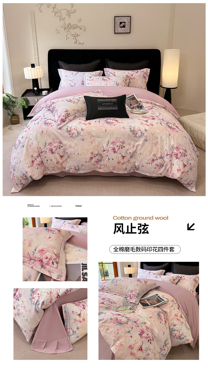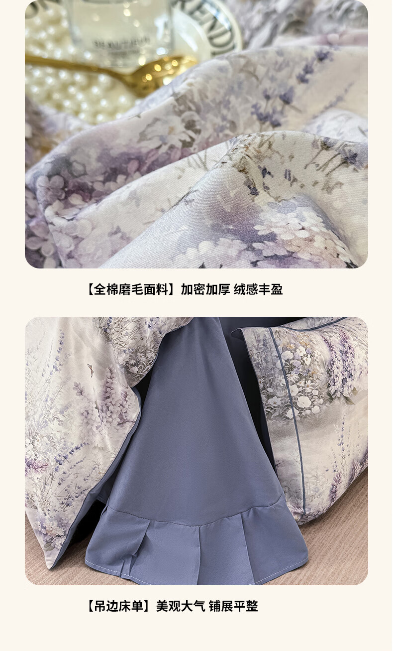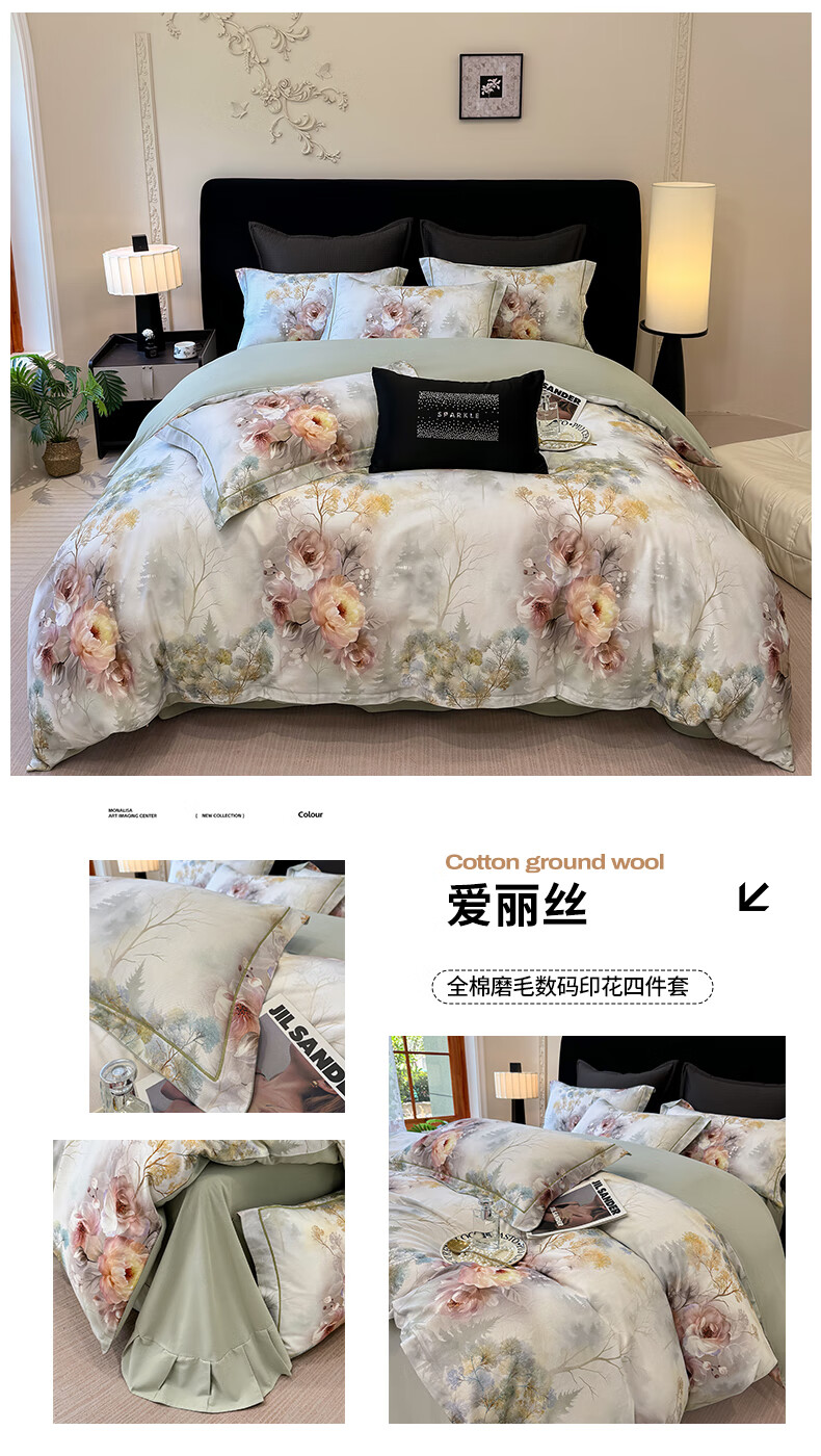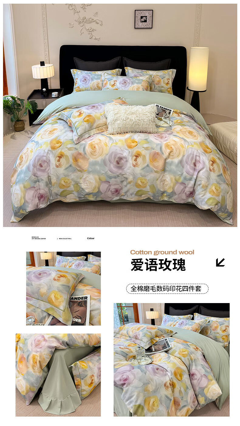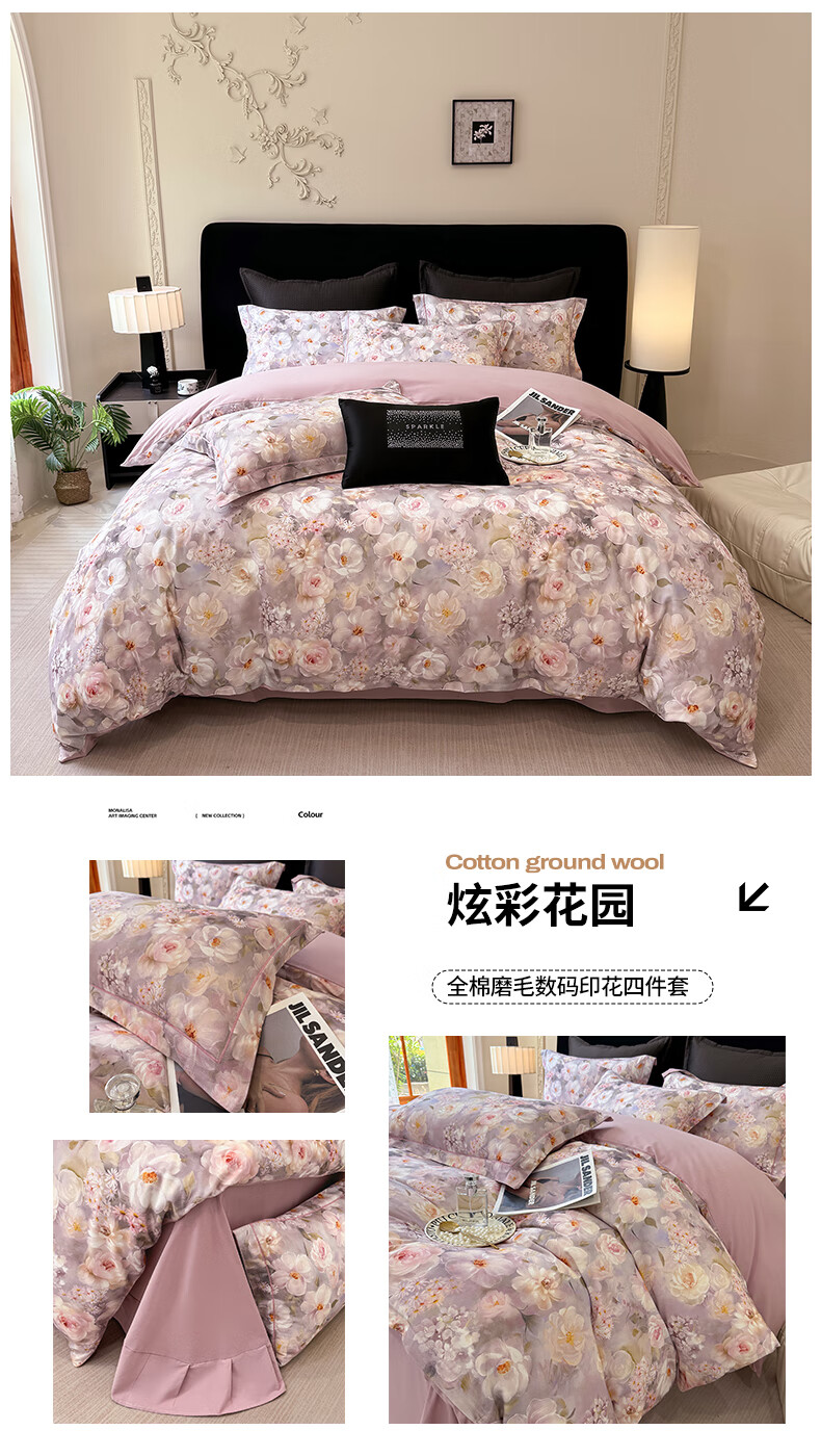 Mercury series home textiles 180 count Xinjiang pure cotton brushed four-piece set winter thickened warm cotton sheet quilt cover autumn and winter bedding Colorful Garden 1.8m bed sheet four-piece set