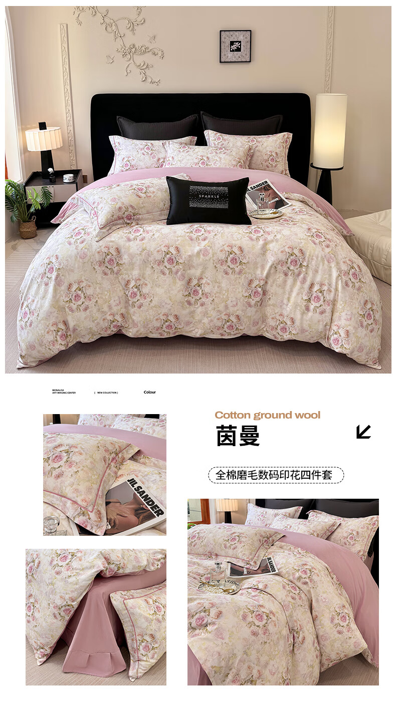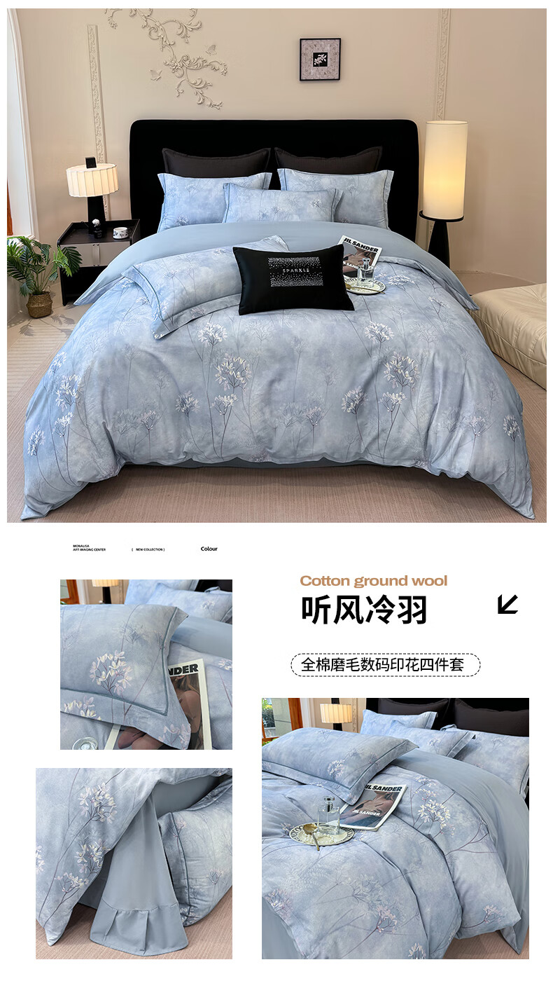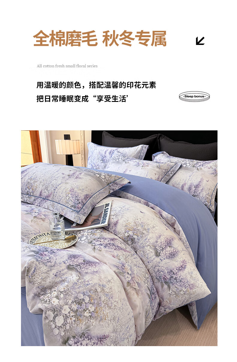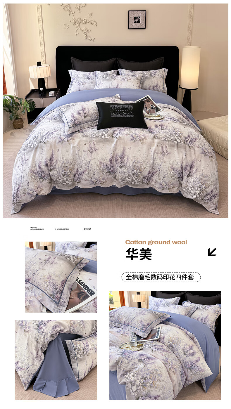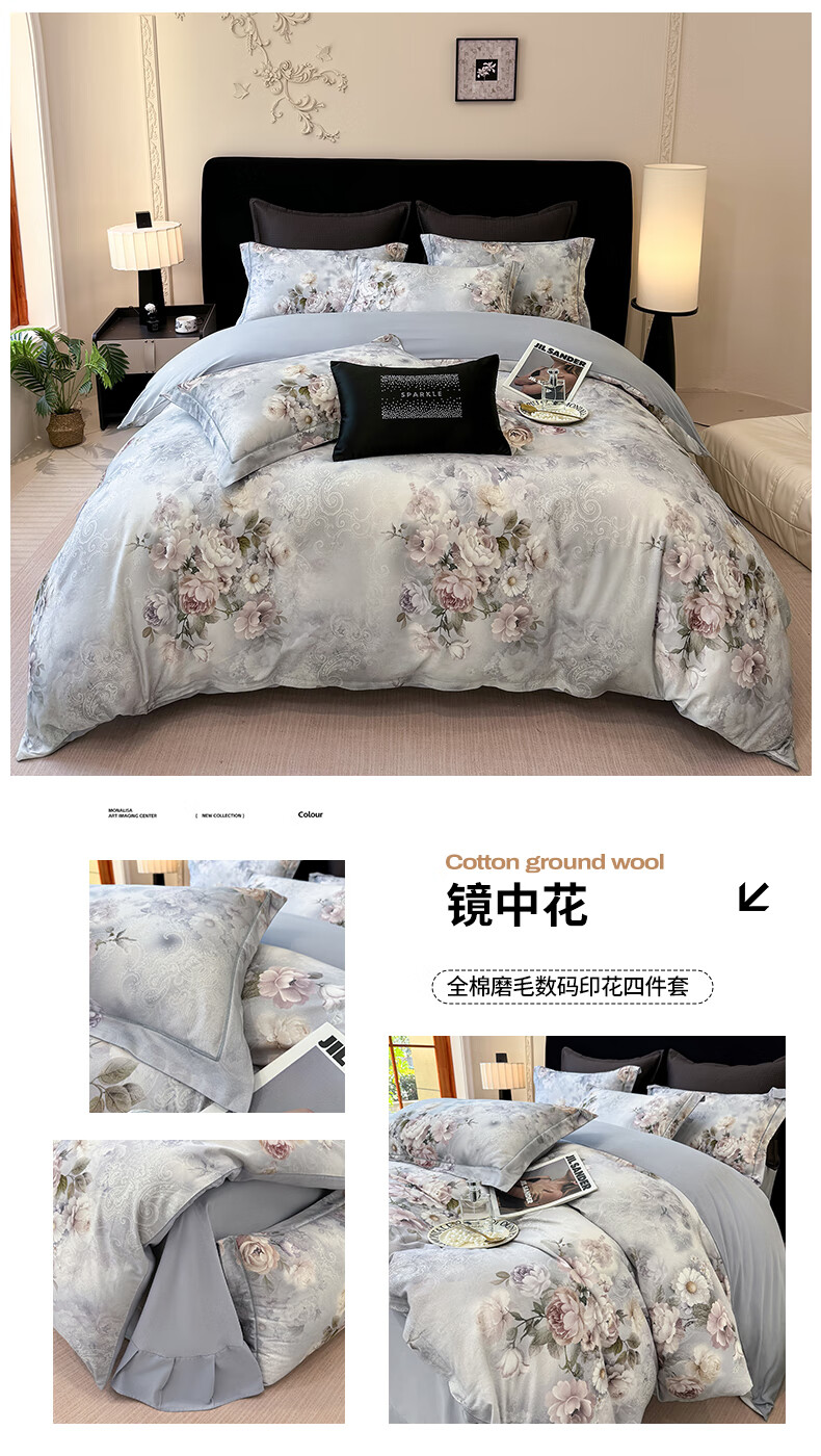 Mercury series home textiles 180 count Xinjiang pure cotton brushed four-piece set winter thickened warm cotton sheet quilt cover autumn and winter bedding Colorful Garden 1.8m bed sheet four-piece set