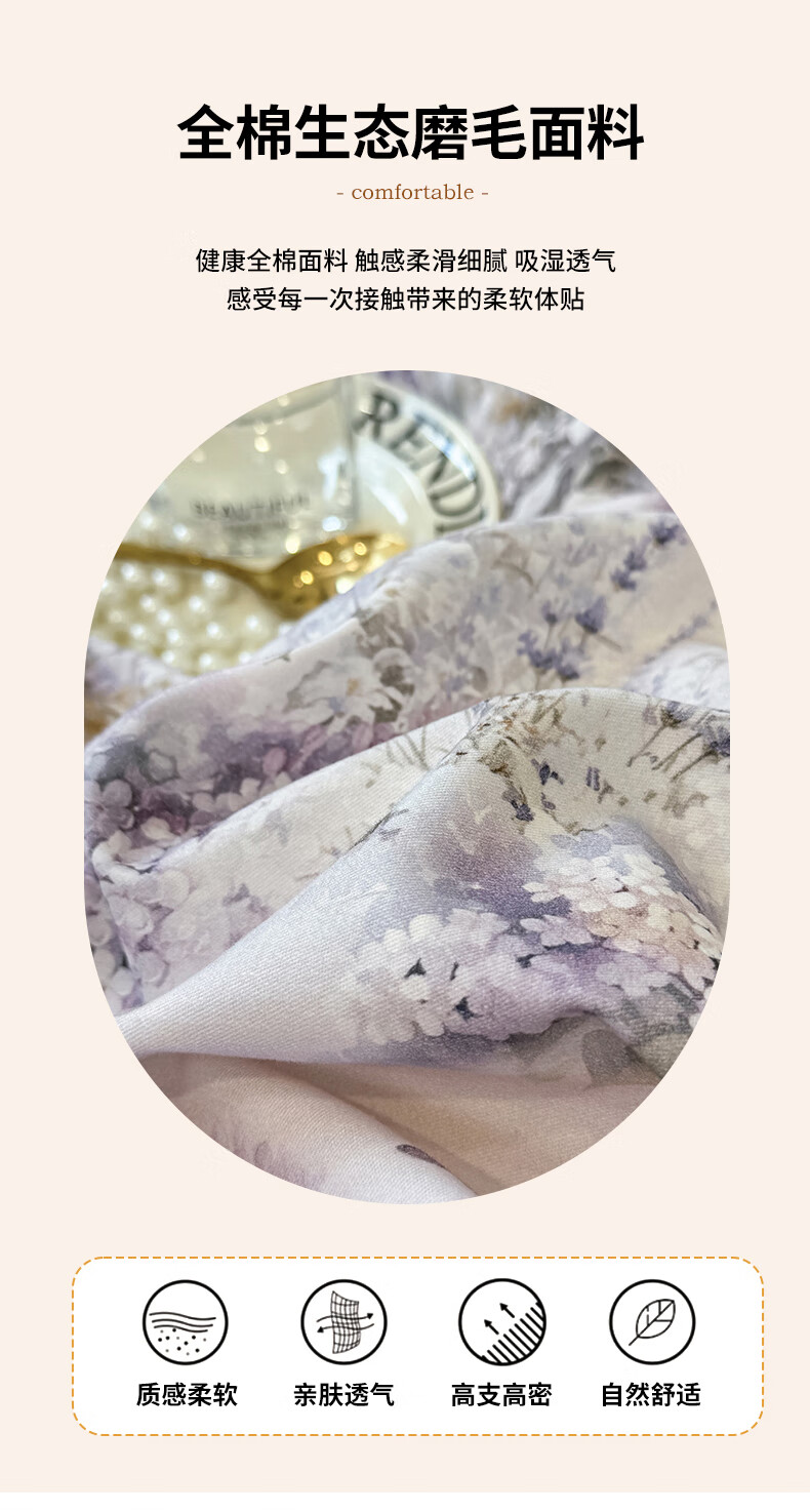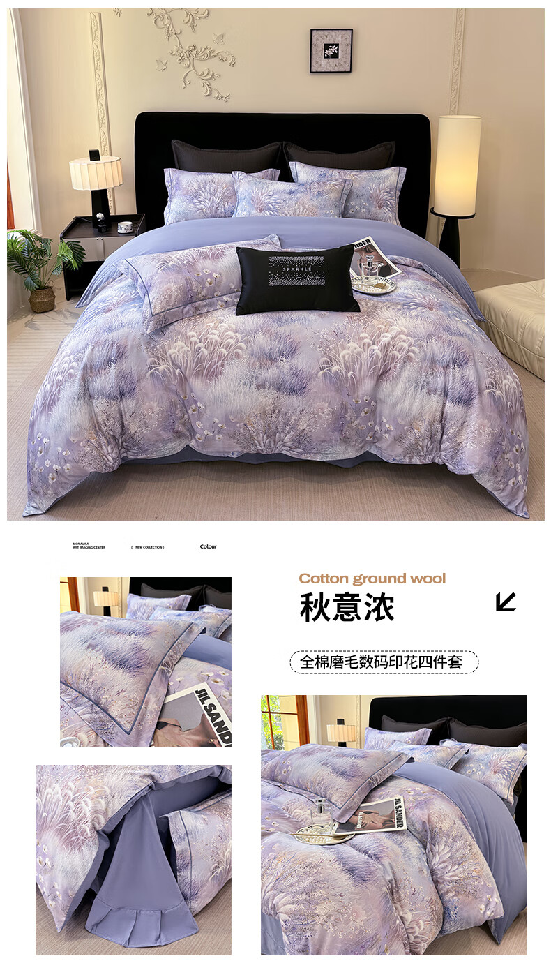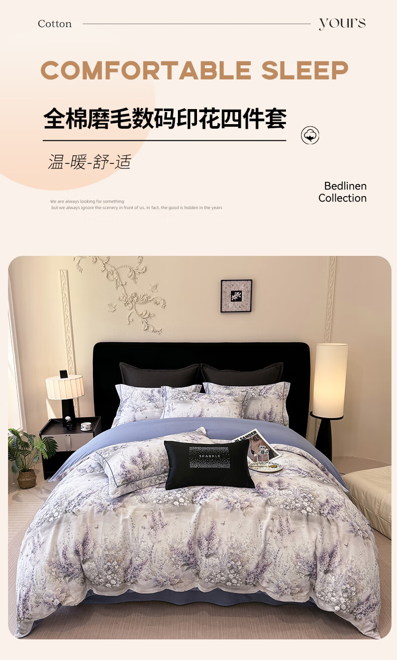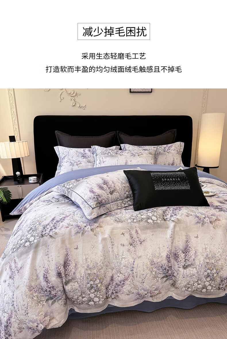 Mercury series home textiles 180 count Xinjiang pure cotton brushed four-piece set winter thickened warm cotton sheet quilt cover autumn and winter bedding Colorful Garden 1.8m bed sheet four-piece set