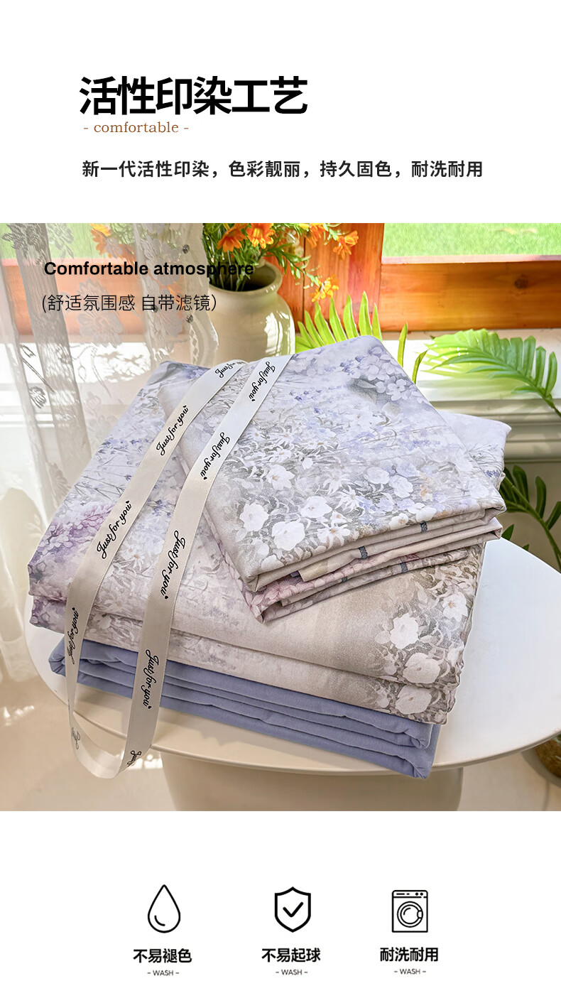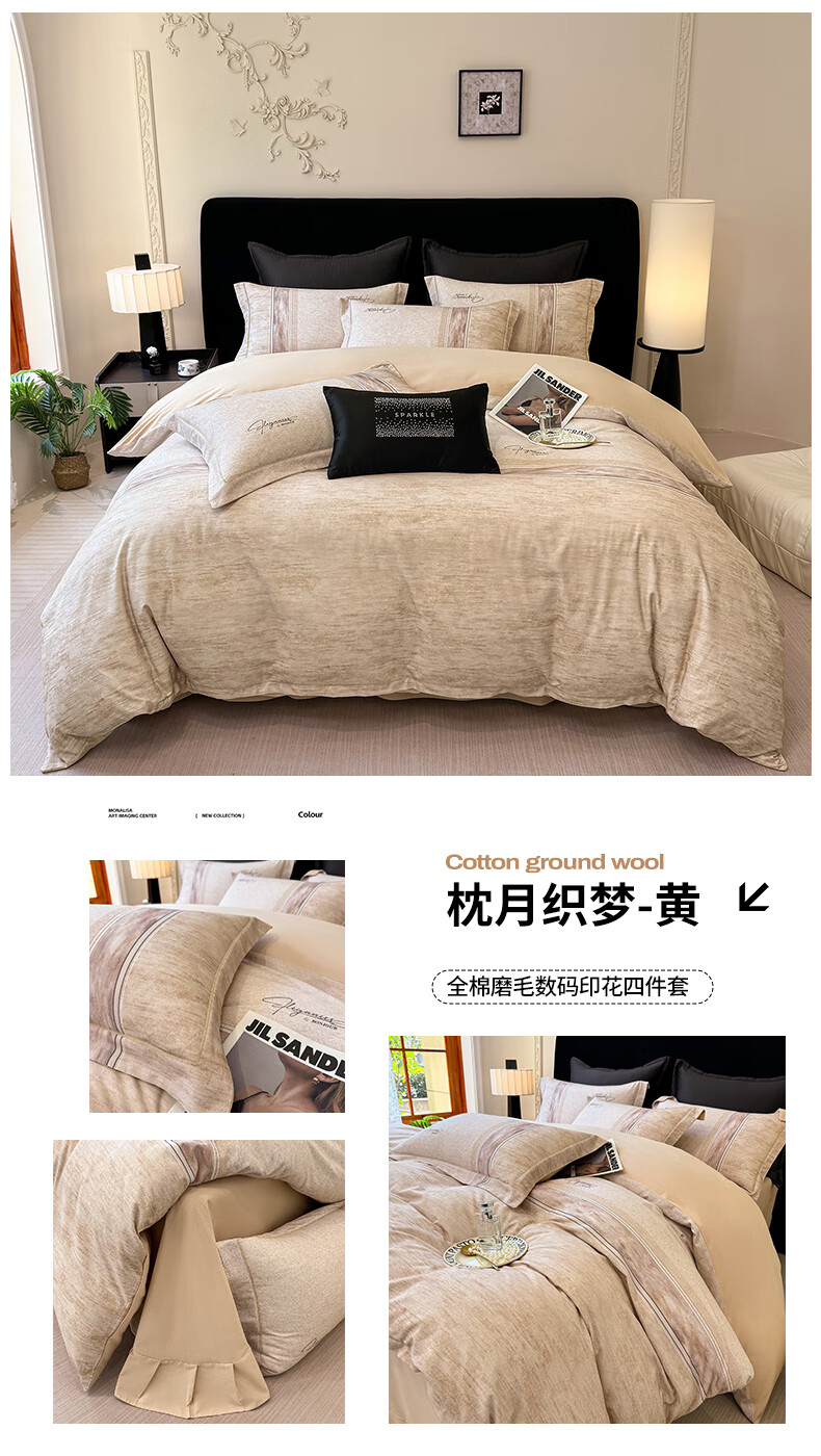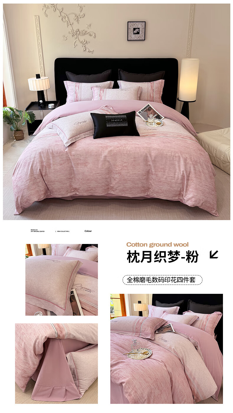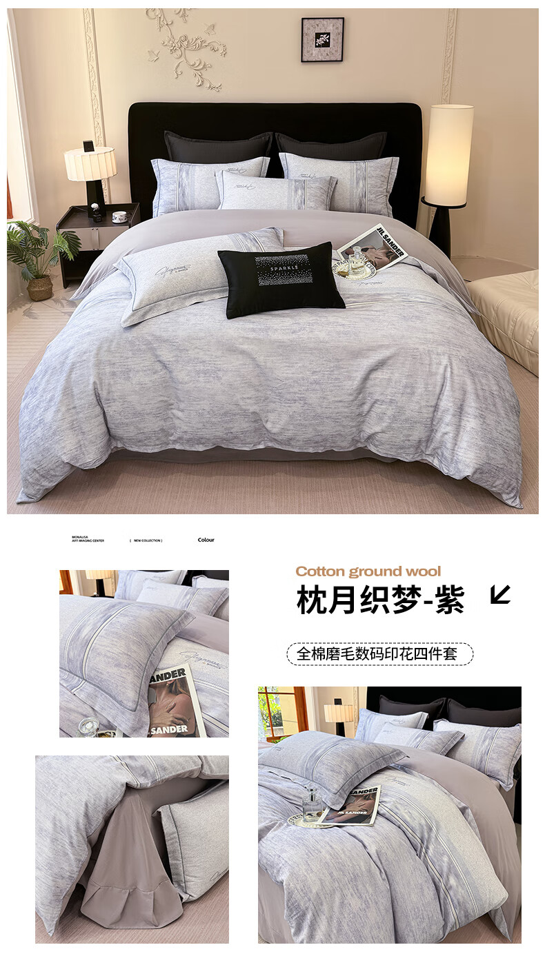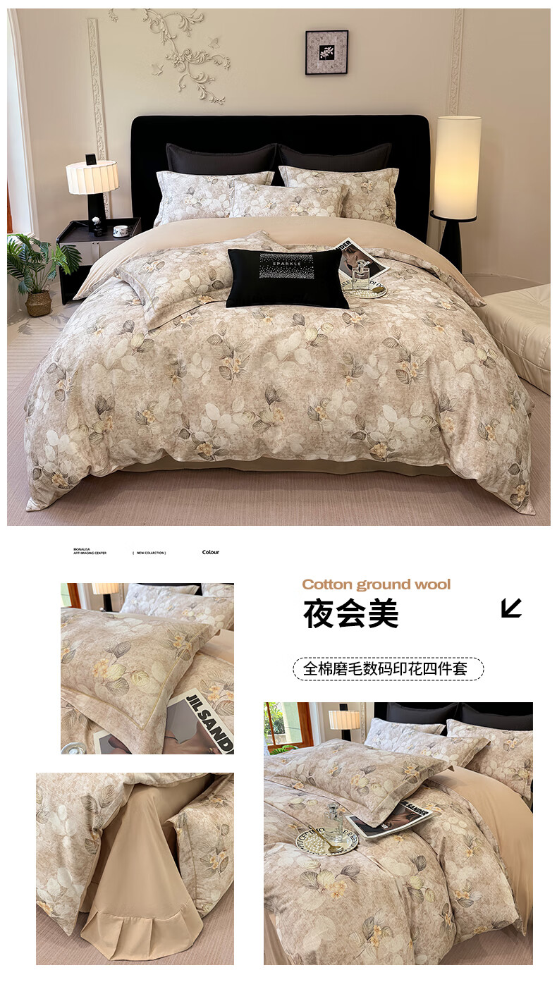 Mercury series home textiles 180 count Xinjiang pure cotton brushed four-piece set winter thickened warm cotton sheet quilt cover autumn and winter bedding Colorful Garden 1.8m bed sheet four-piece set