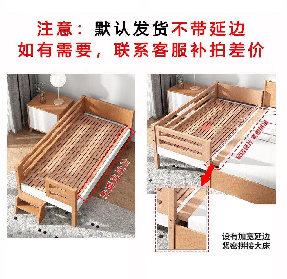 Juelebang maternal and infant grade special children's spliced bed beech wood pure solid wood high fence crib widened spliced large bed single bed + 10cm air fiber 200*60cm (can be customized)