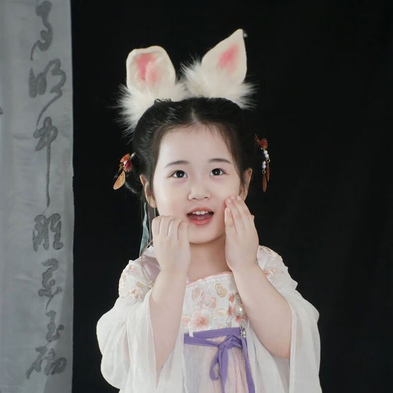 Mengdong Rabbit Ears Hairpin Hanfu Headwear Ancient Style Hair Accessories Girls Cute Plush Hair Hoop Hair Accessories Children Adult Accessories One Size Rabbit Ears Headband*1 Ear Adjustable Position