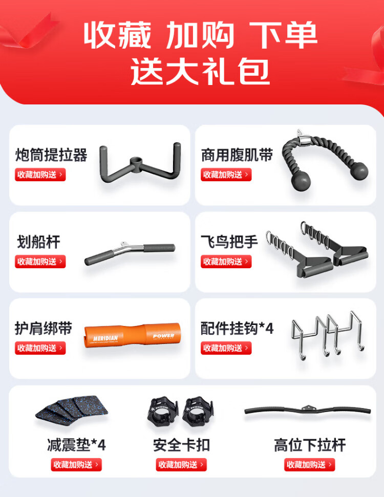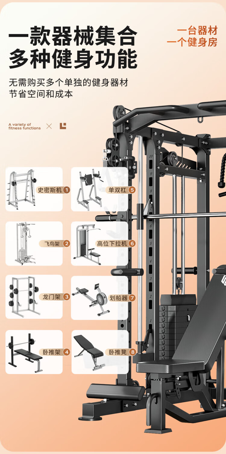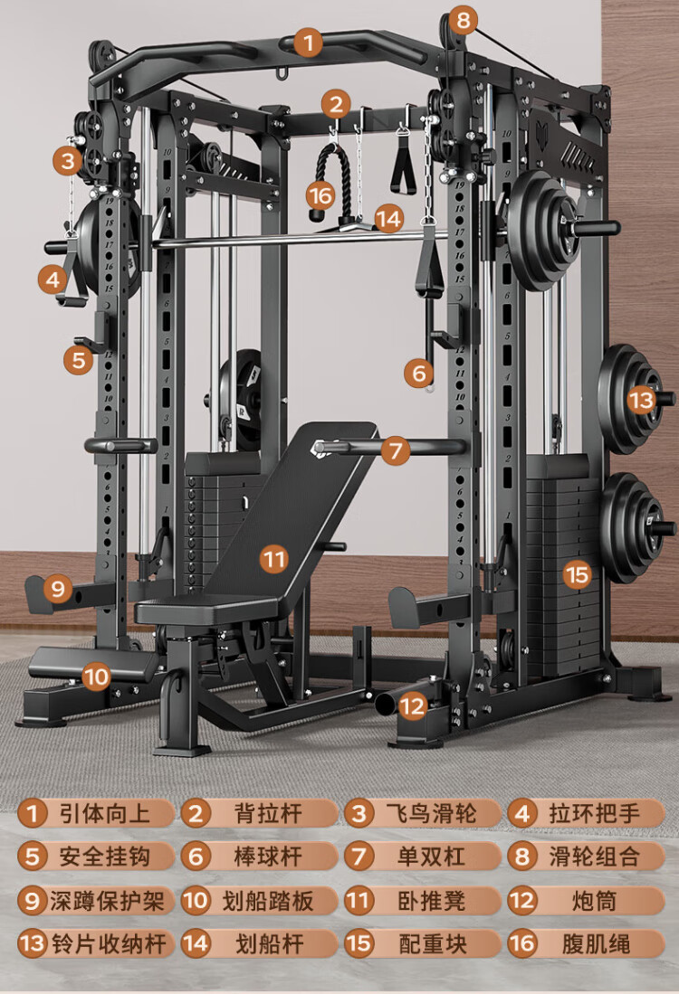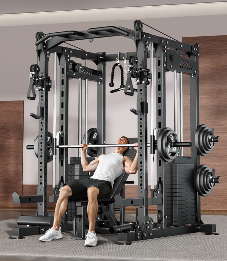 Meride gantry Smith machine home comprehensive trainer fitness equipment multi-function all-in-one fitness squat rack all-purpose version bench press bench + barbell bar + 100kg/PVC bell plate