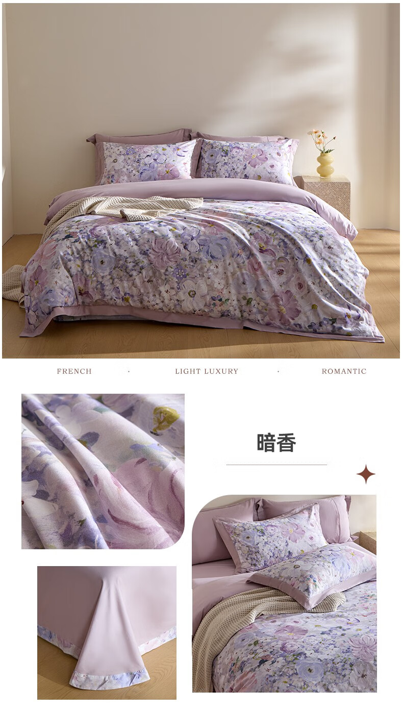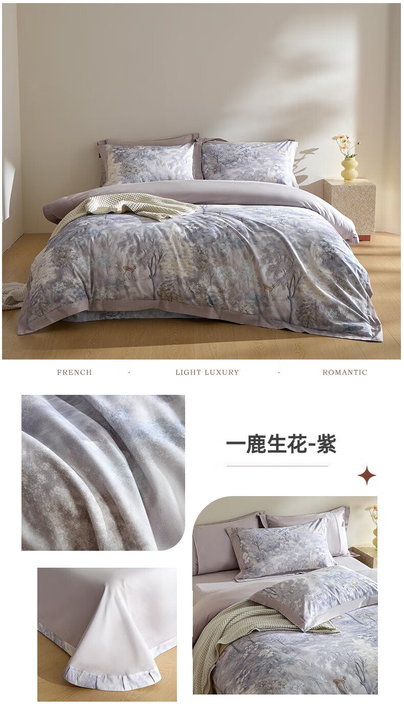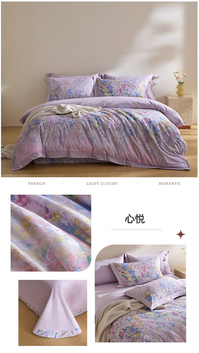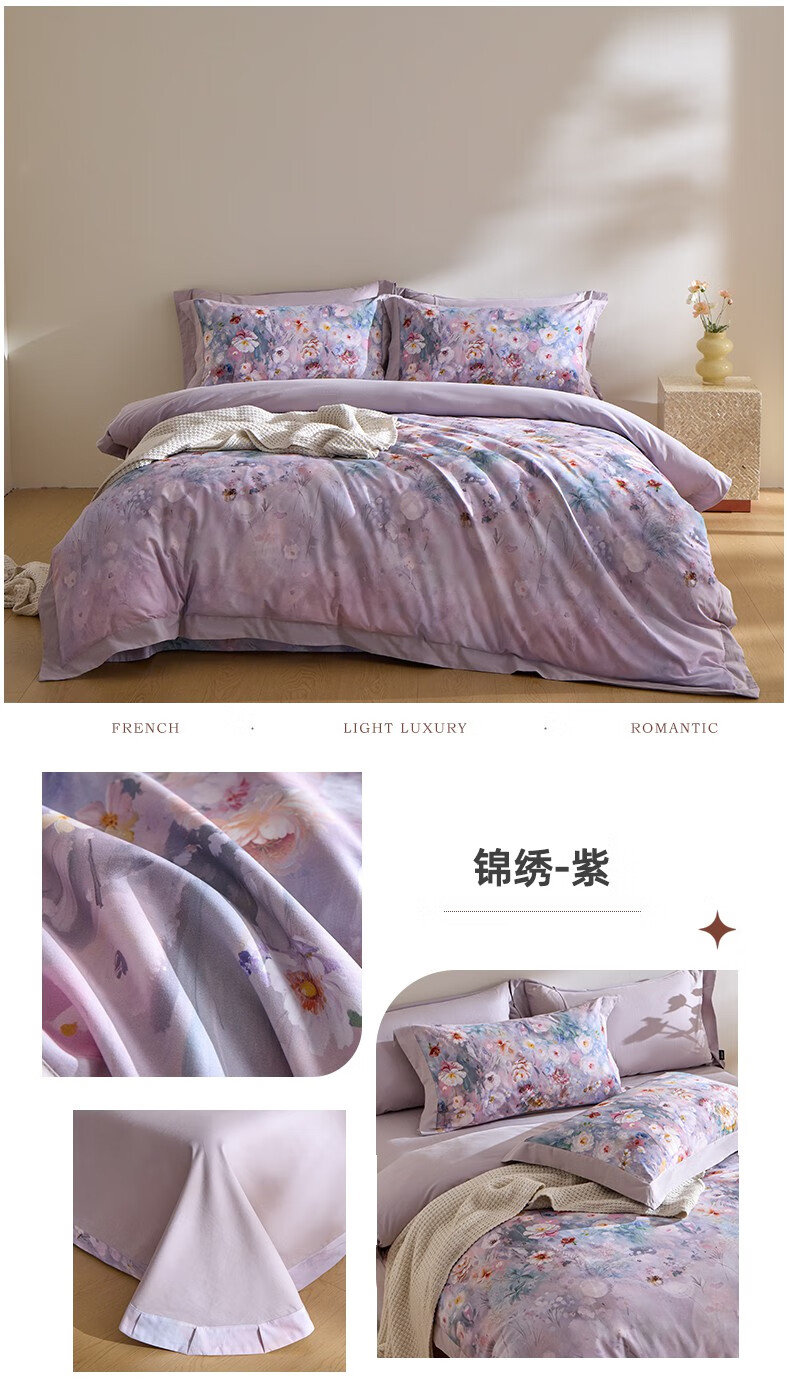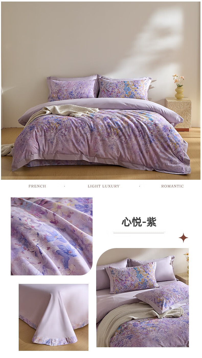 Mercury series home textiles high-end 200-count long-staple cotton pure cotton four-piece set 100% cotton satin jacquard brushed thickened quilt cover bed sheet with gift box Xinyue (Purple) 1.8m bed sheet style four-piece set (with gift box)
