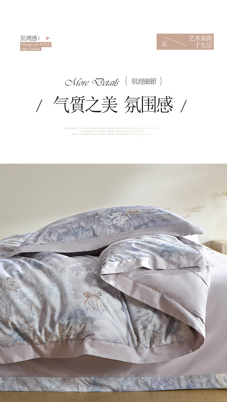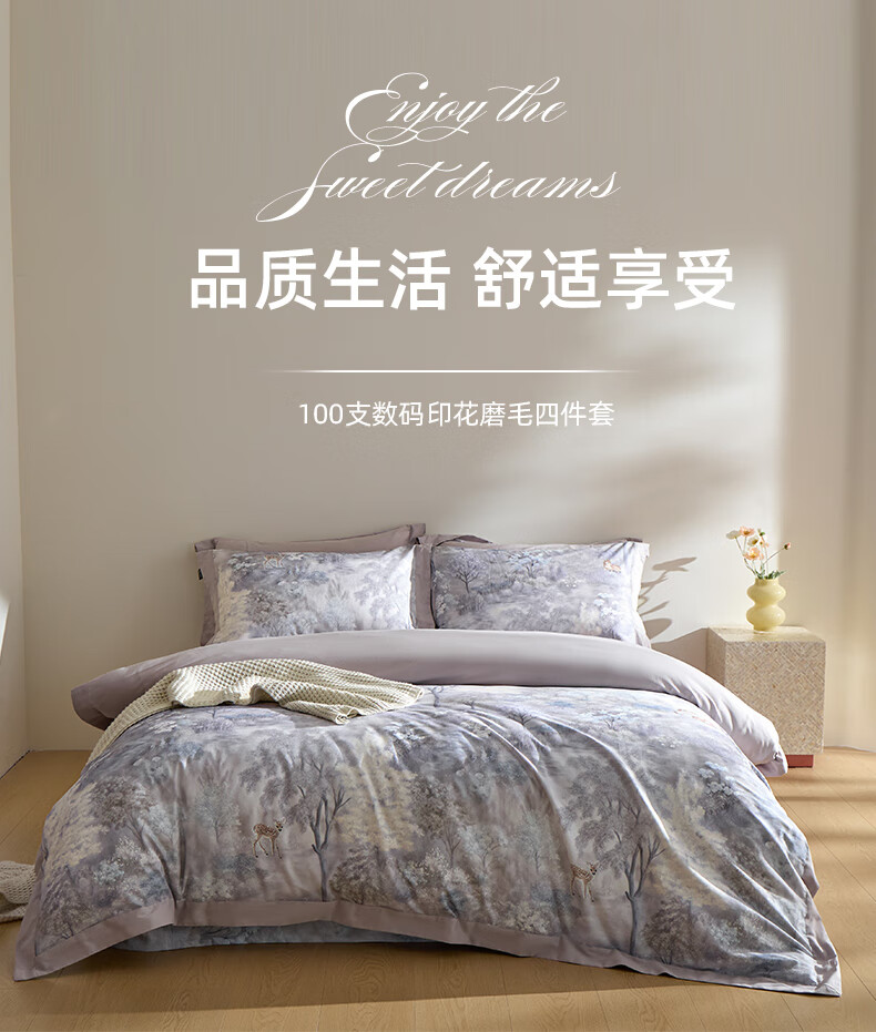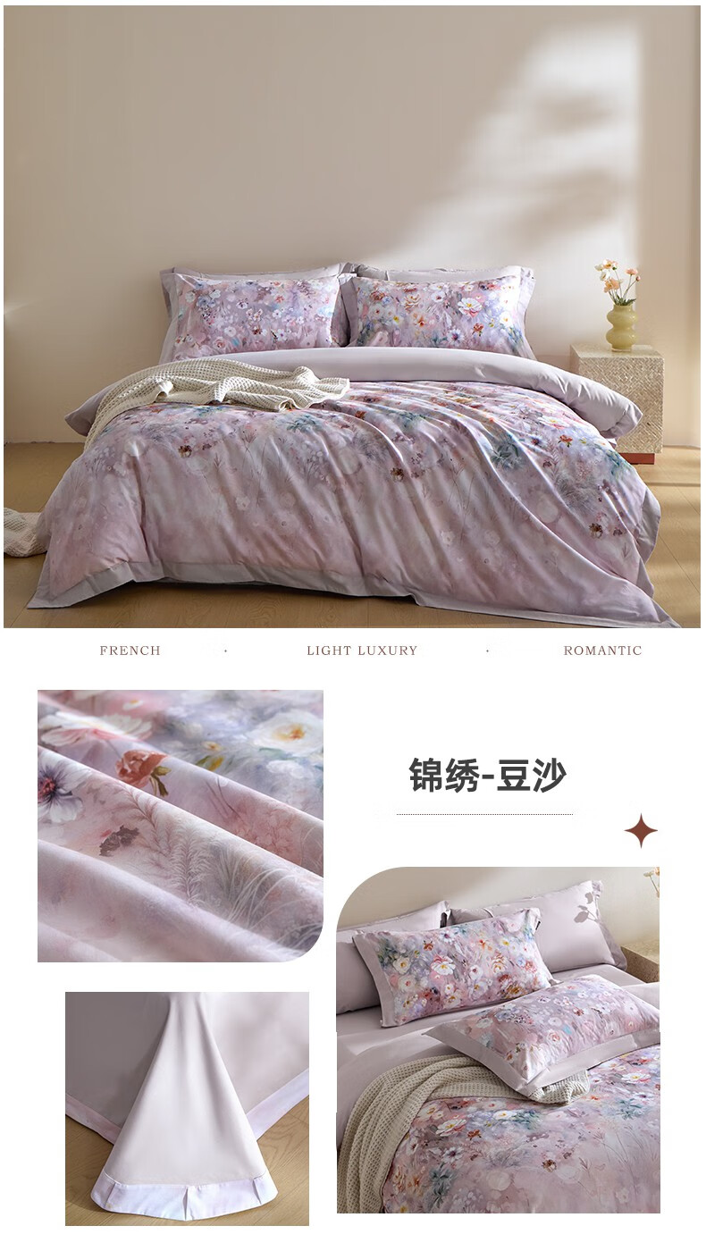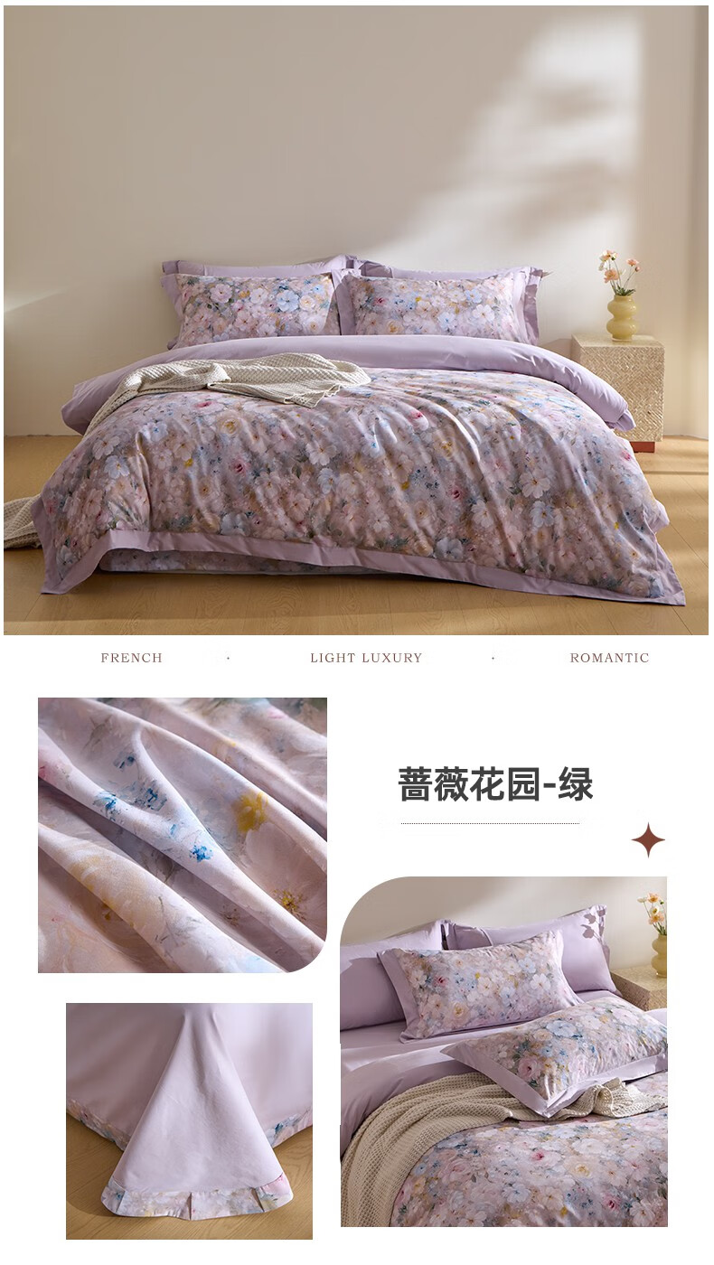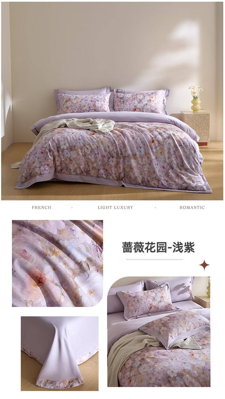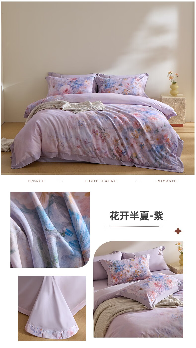 Mercury series home textiles high-end 200-count long-staple cotton pure cotton four-piece set 100% cotton satin jacquard brushed thickened quilt cover bed sheet with gift box Xinyue (Purple) 1.8m bed sheet style four-piece set (with gift box)