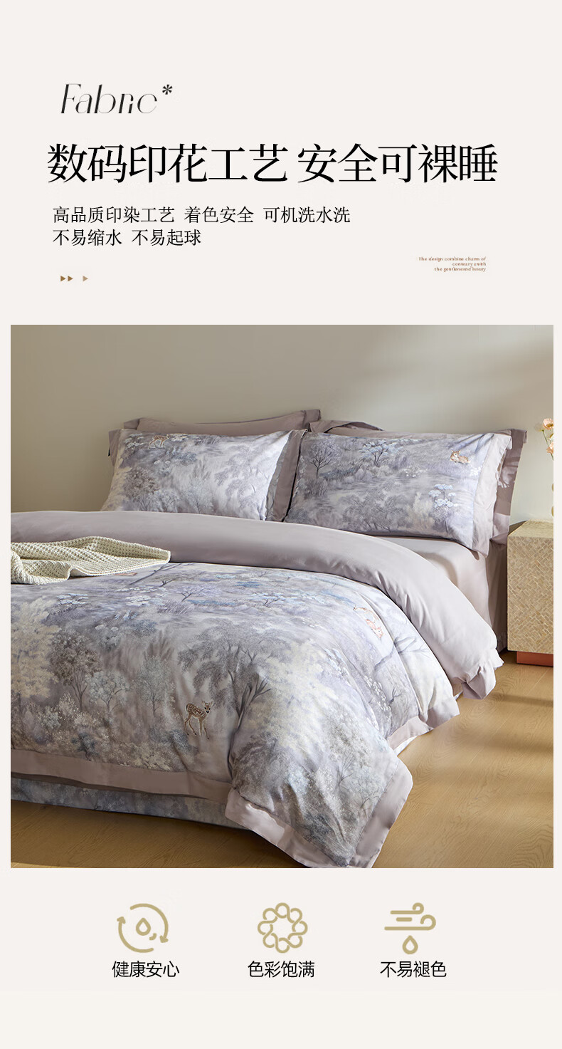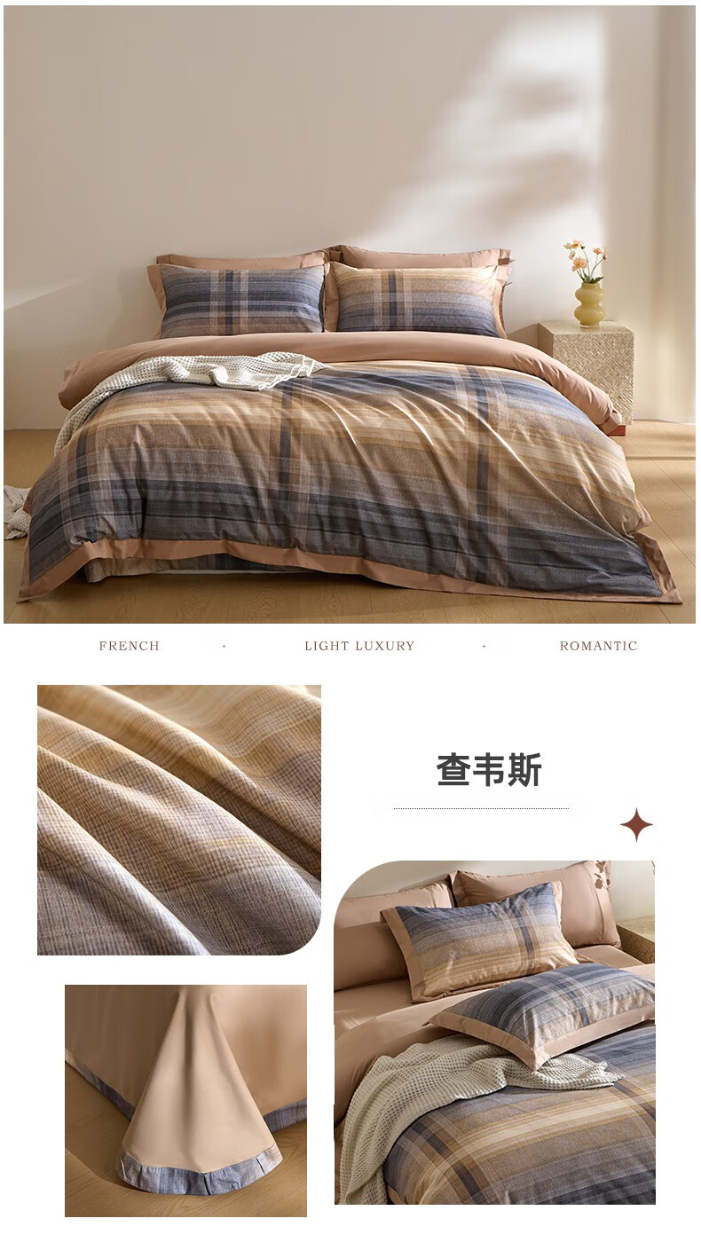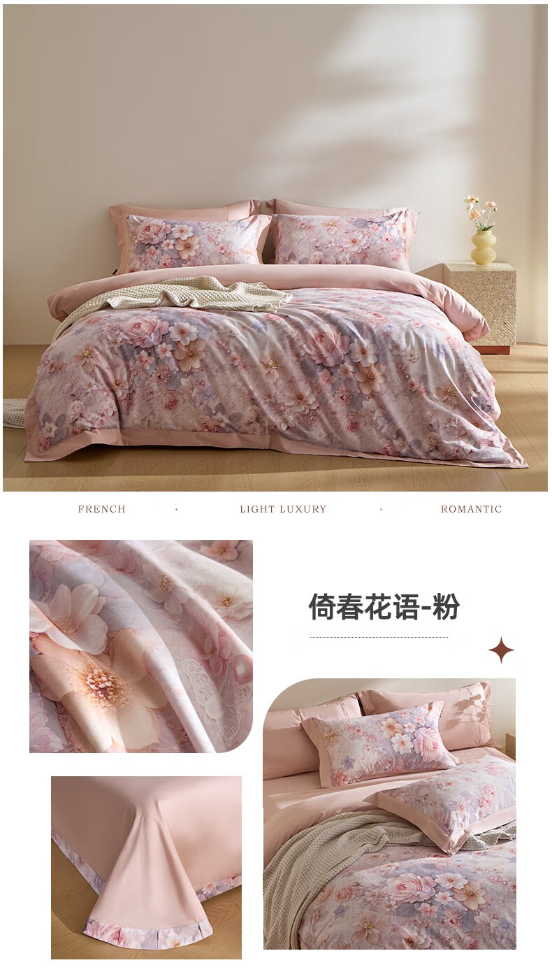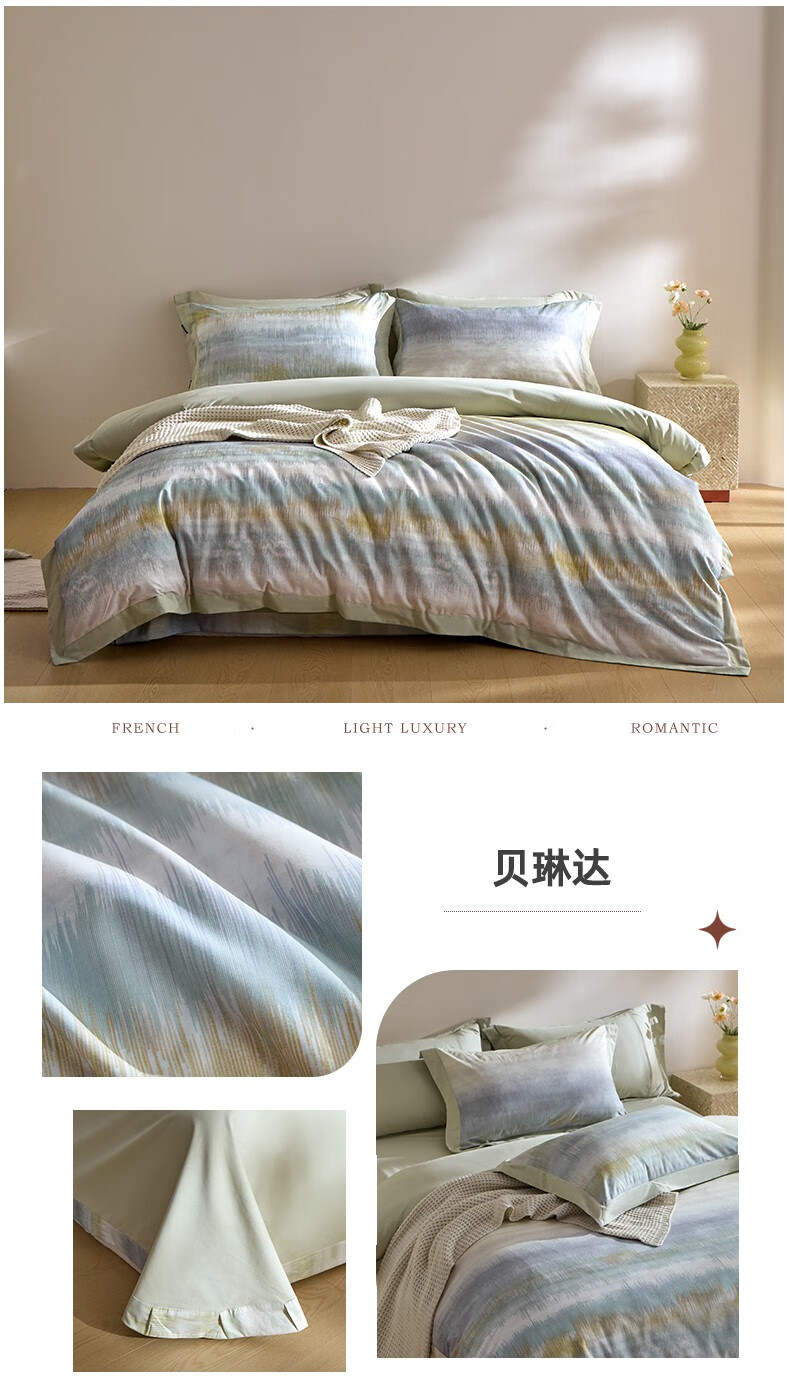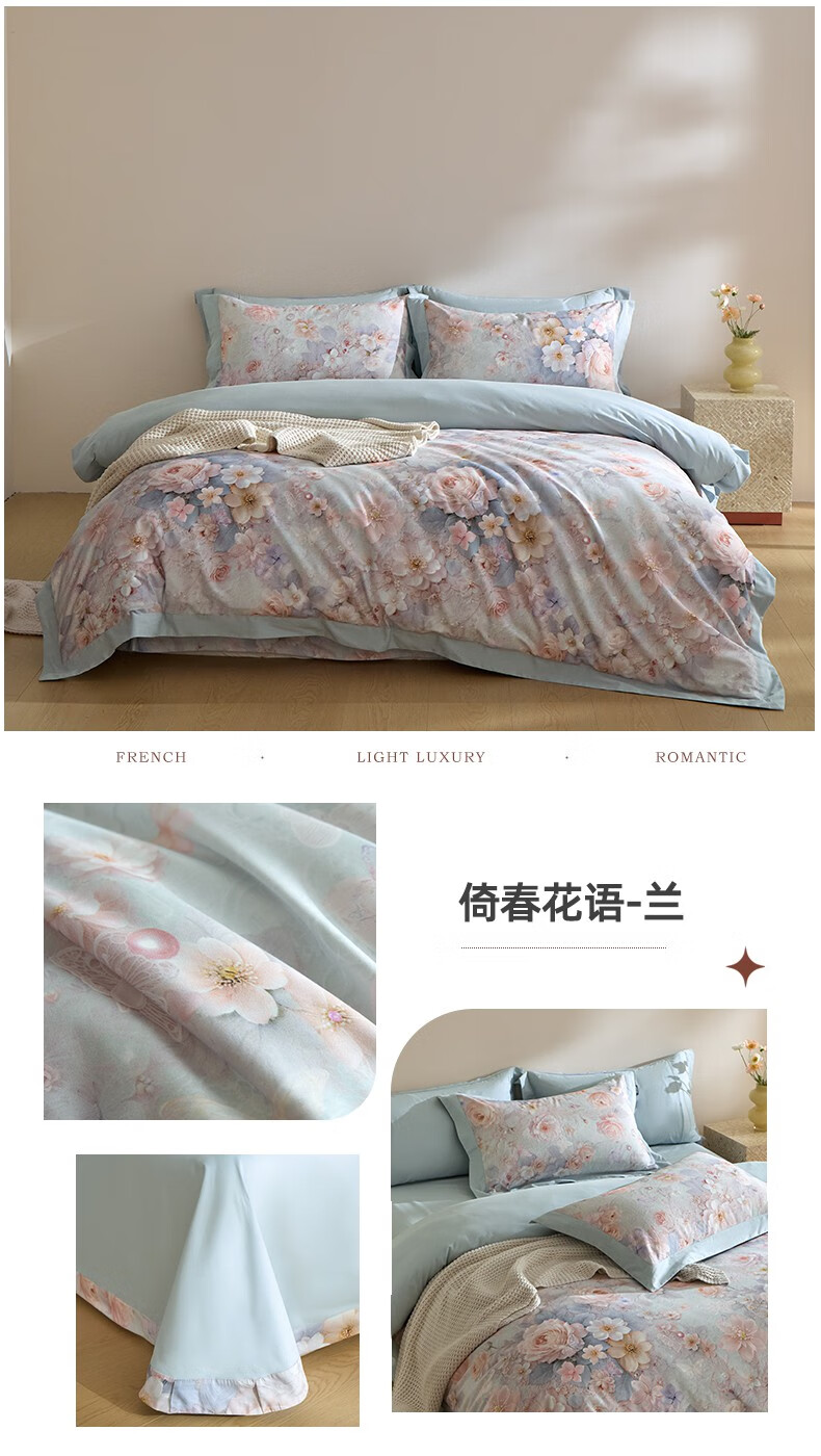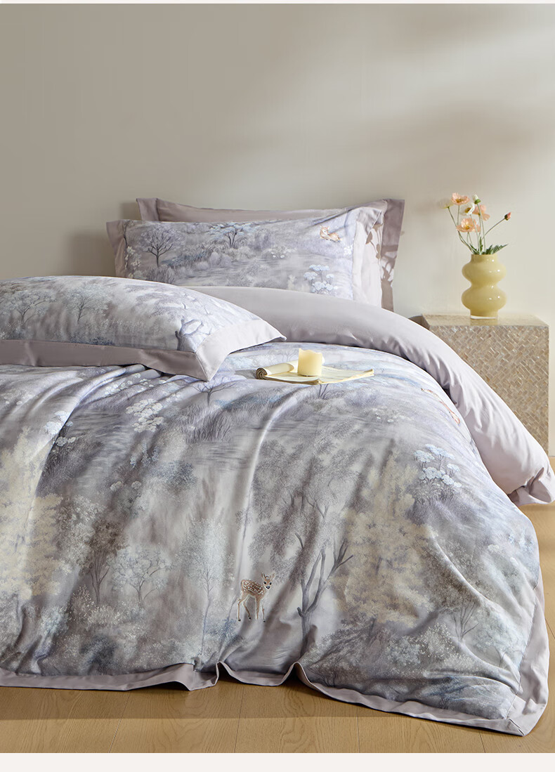 Mercury series home textiles high-end 200-count long-staple cotton pure cotton four-piece set 100% cotton satin jacquard brushed thickened quilt cover bed sheet with gift box Xinyue (Purple) 1.8m bed sheet style four-piece set (with gift box)