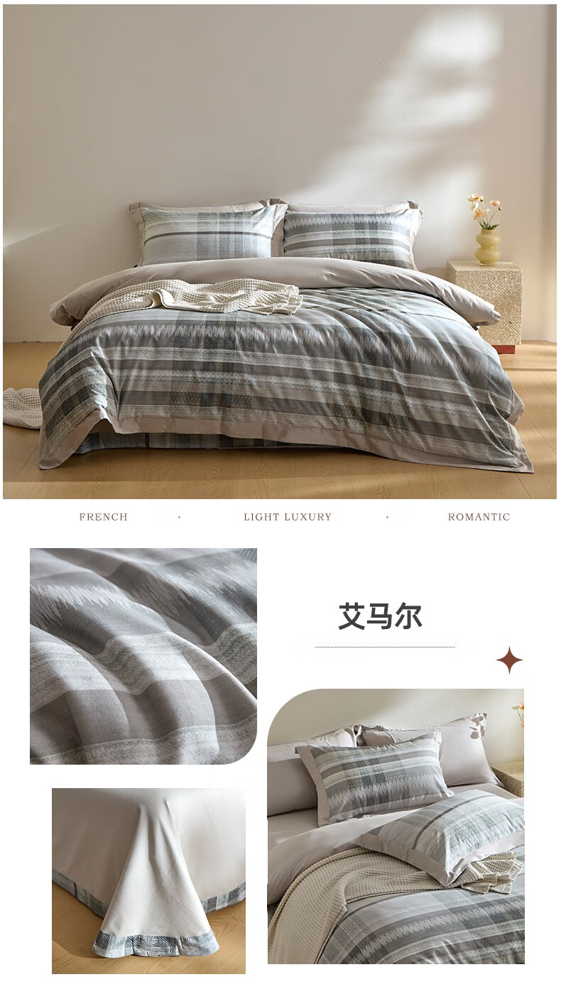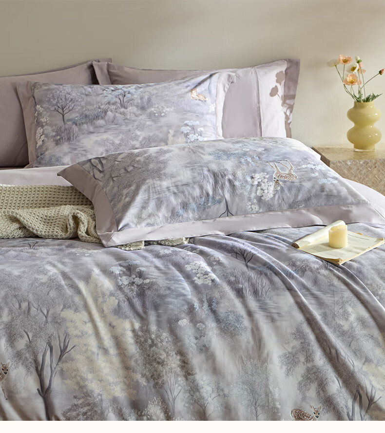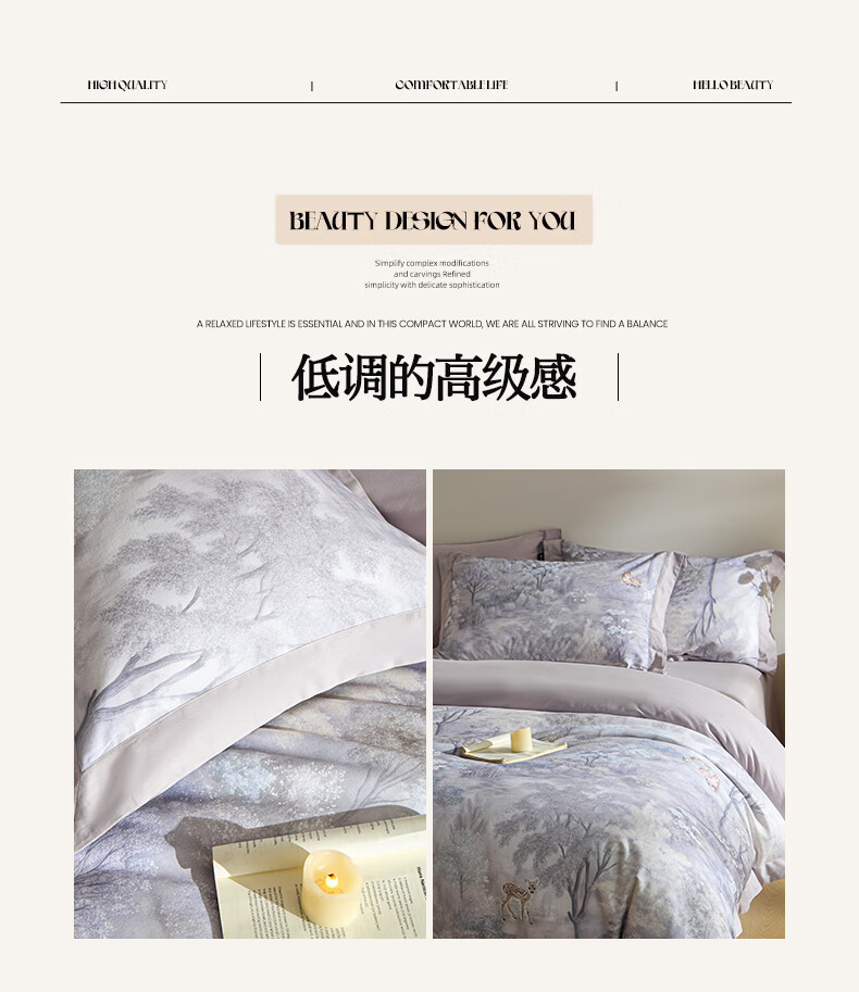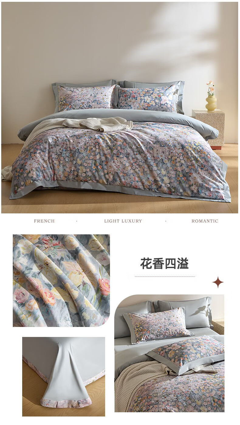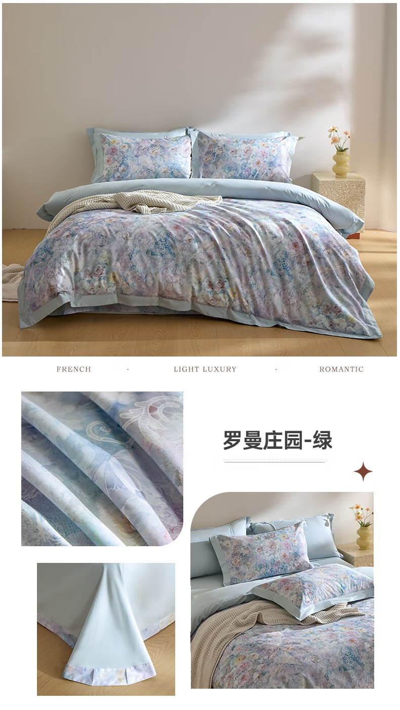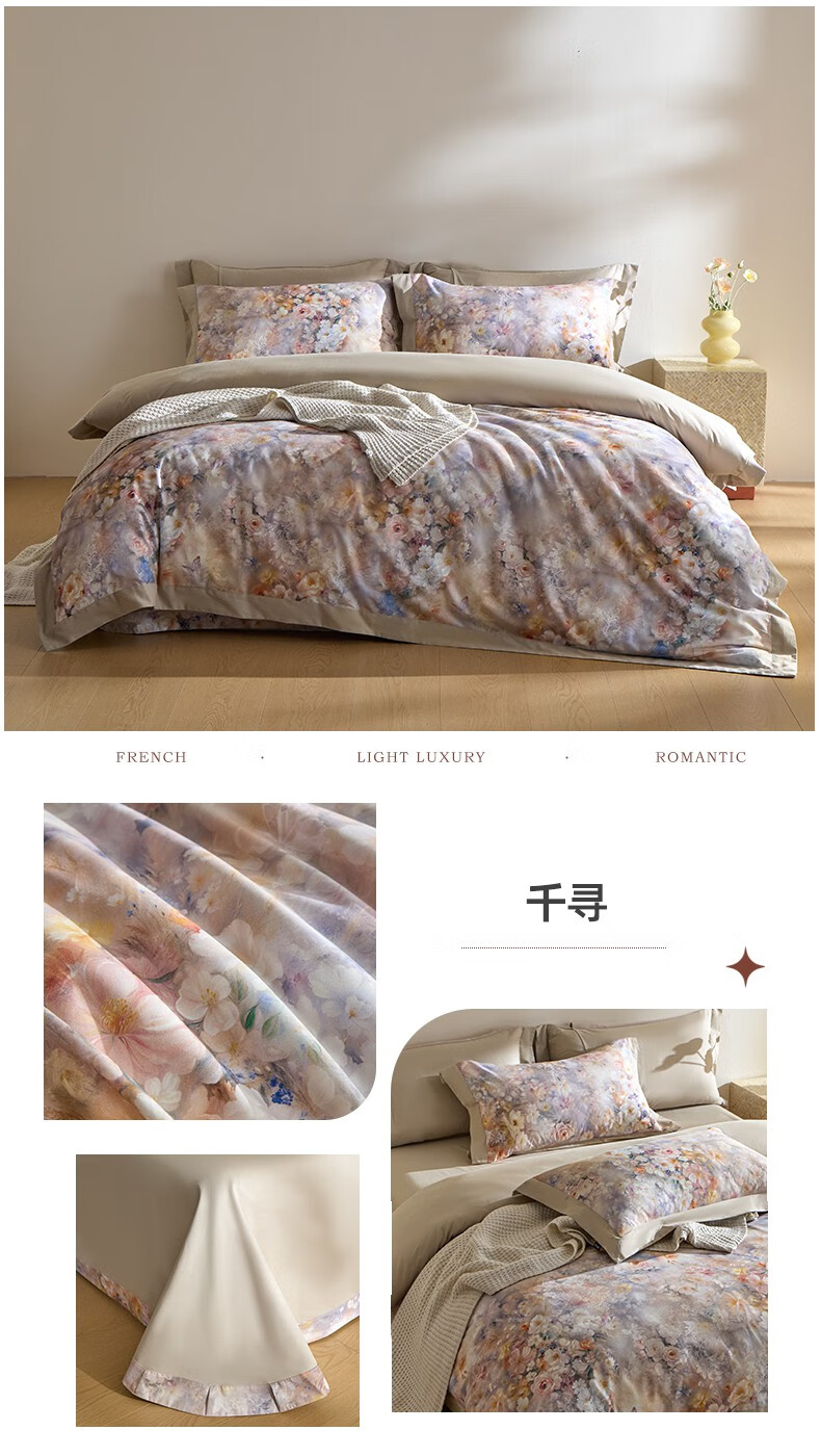 Mercury series home textiles high-end 200-count long-staple cotton pure cotton four-piece set 100% cotton satin jacquard brushed thickened quilt cover bed sheet with gift box Xinyue (Purple) 1.8m bed sheet style four-piece set (with gift box)