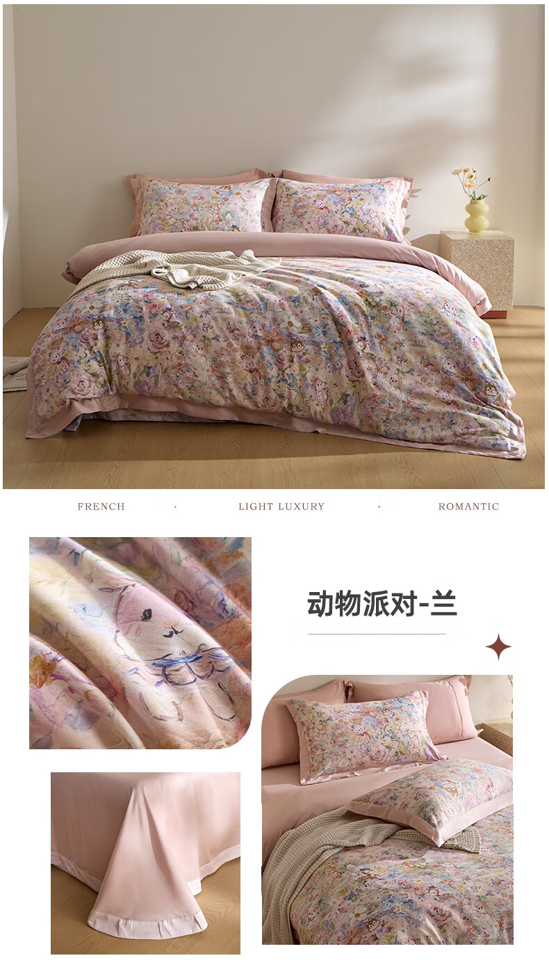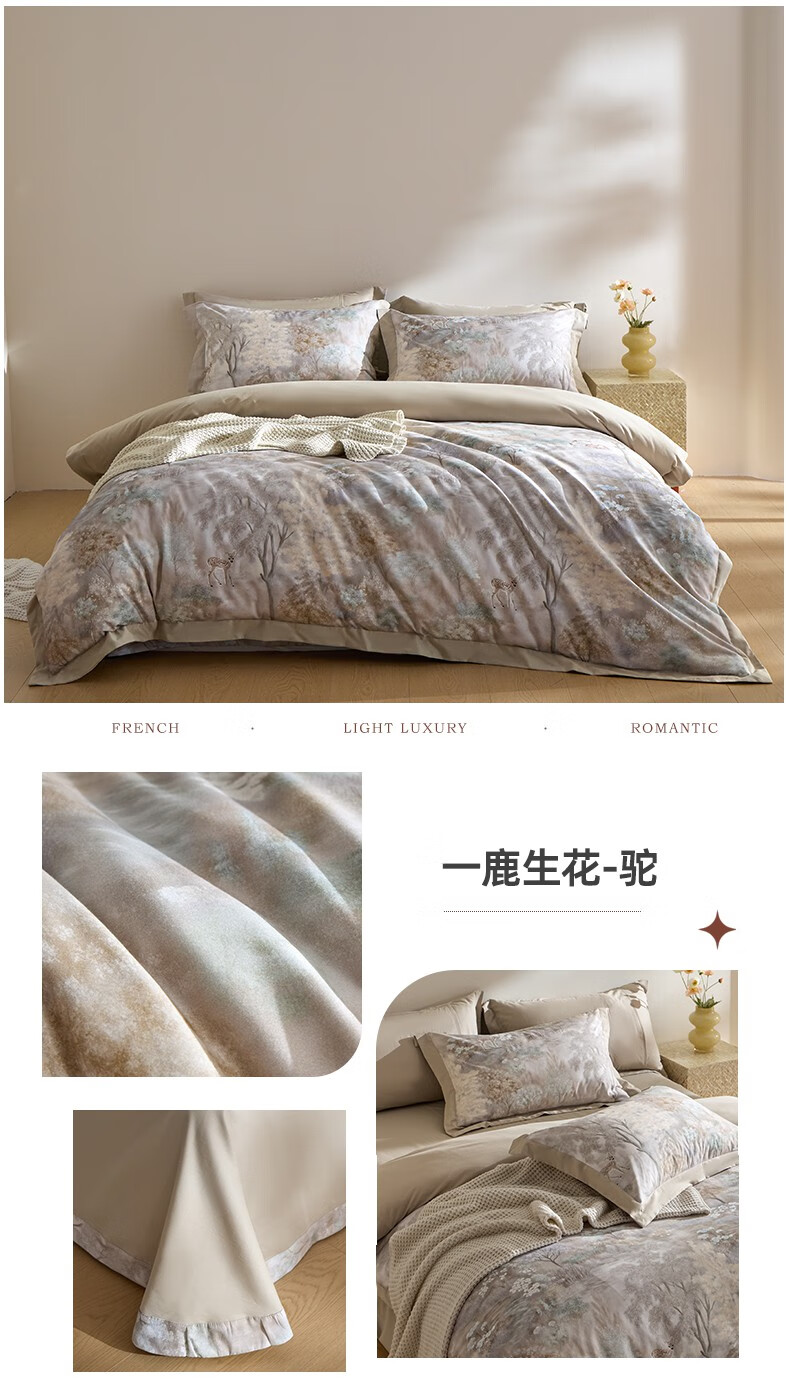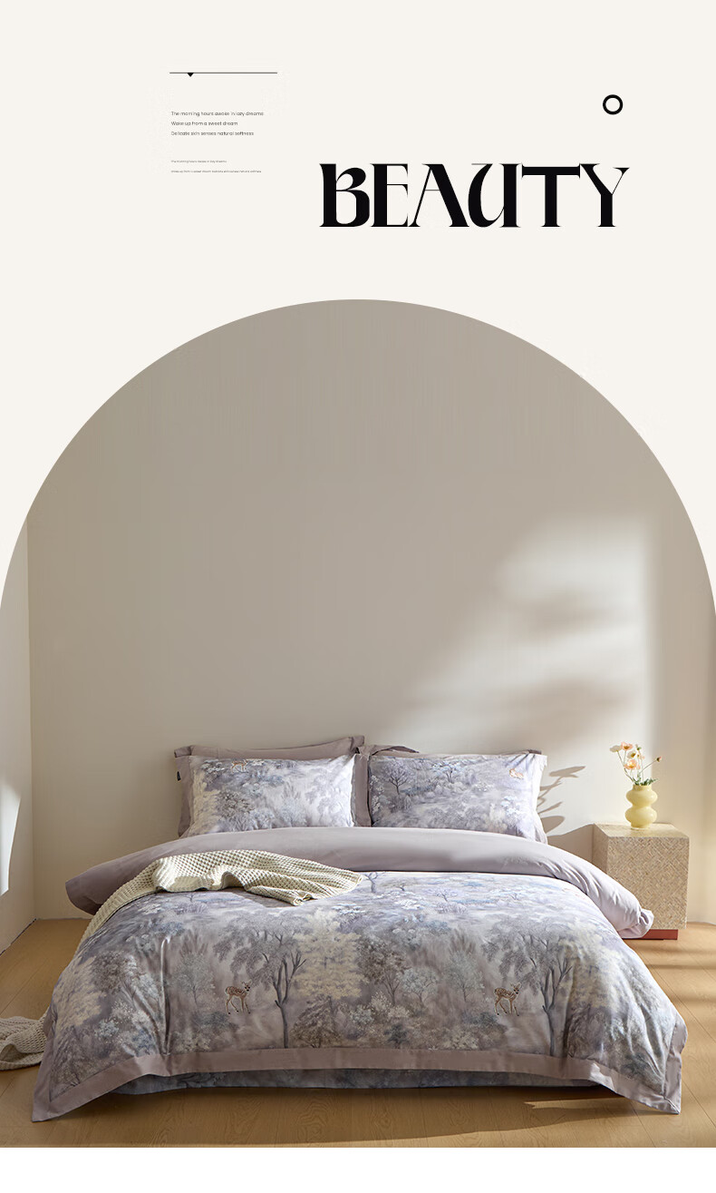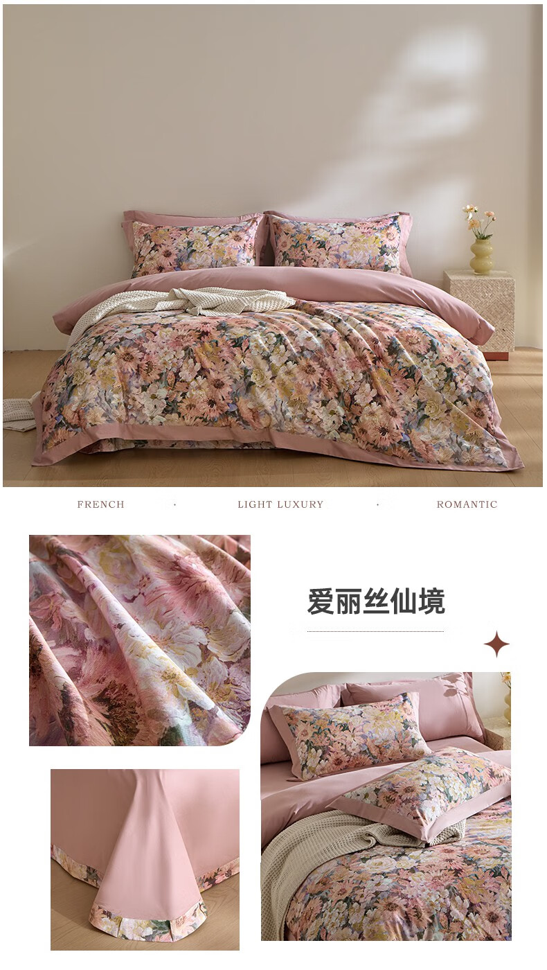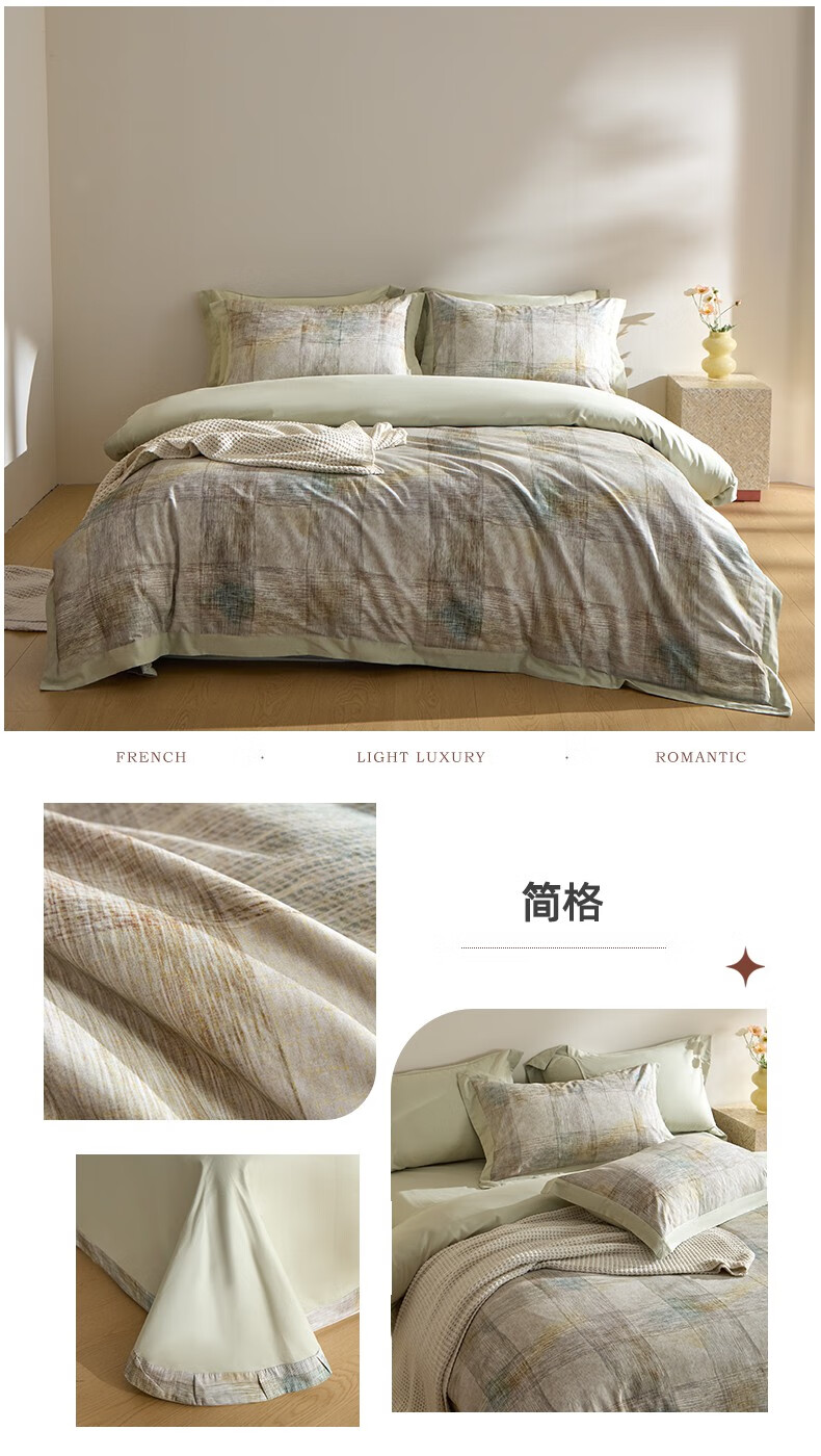 Mercury series home textiles high-end 200-count long-staple cotton pure cotton four-piece set 100% cotton satin jacquard brushed thickened quilt cover bed sheet with gift box Xinyue (Purple) 1.8m bed sheet style four-piece set (with gift box)