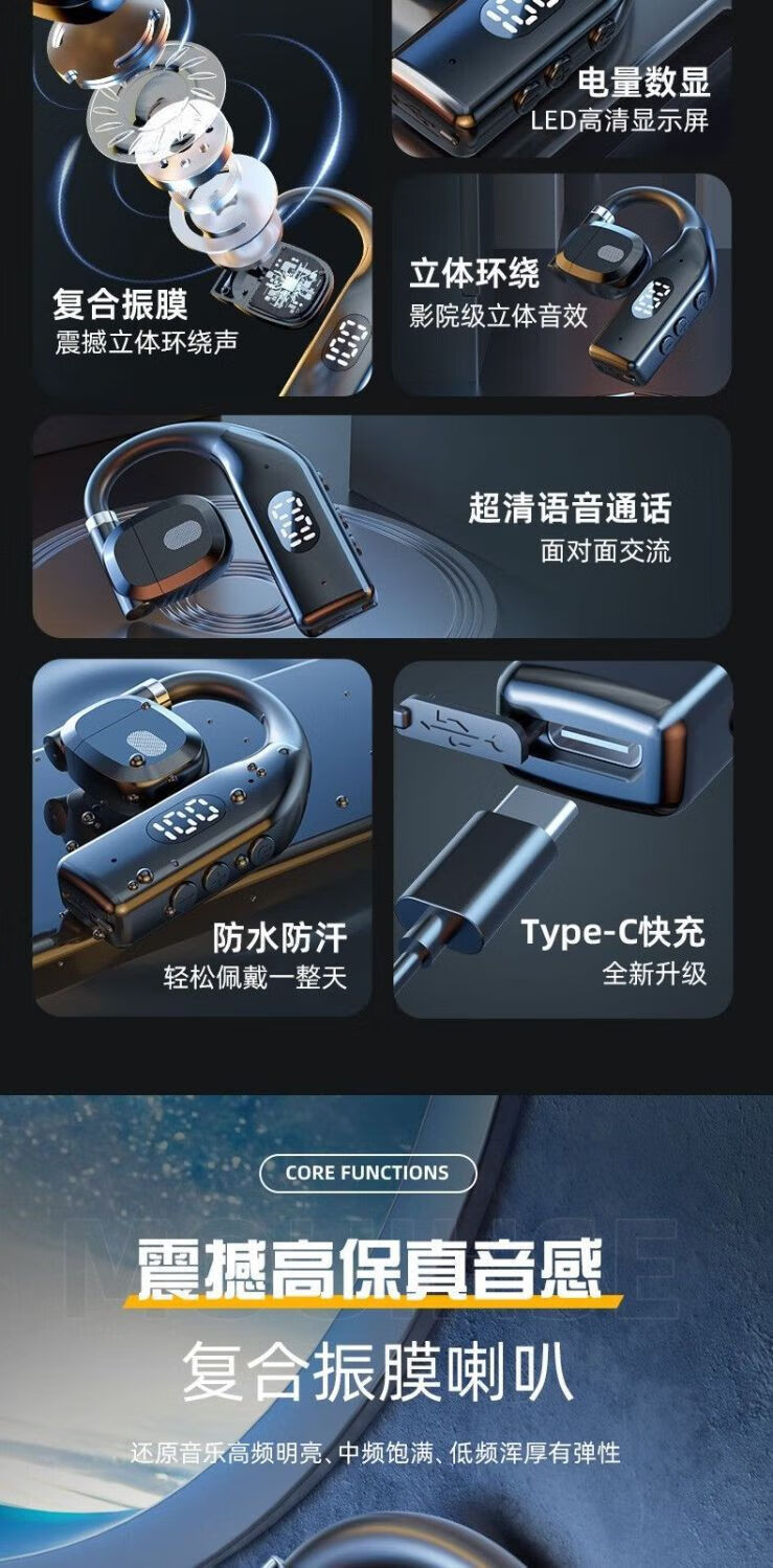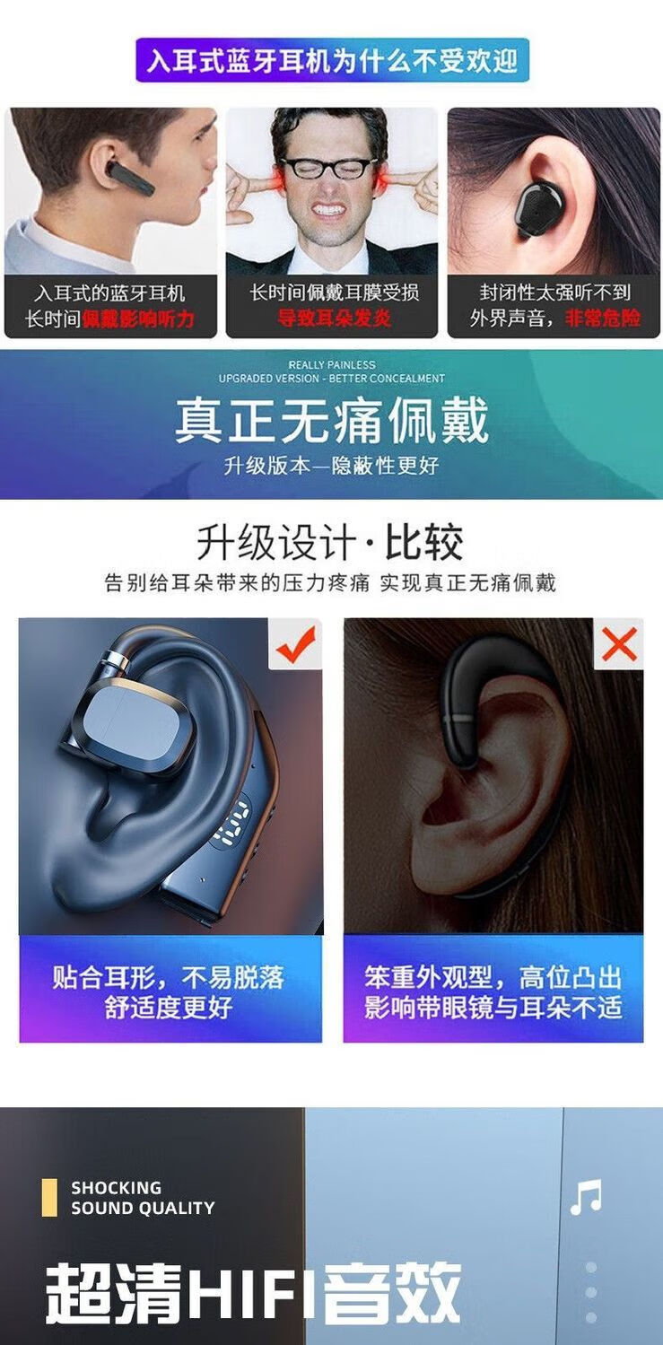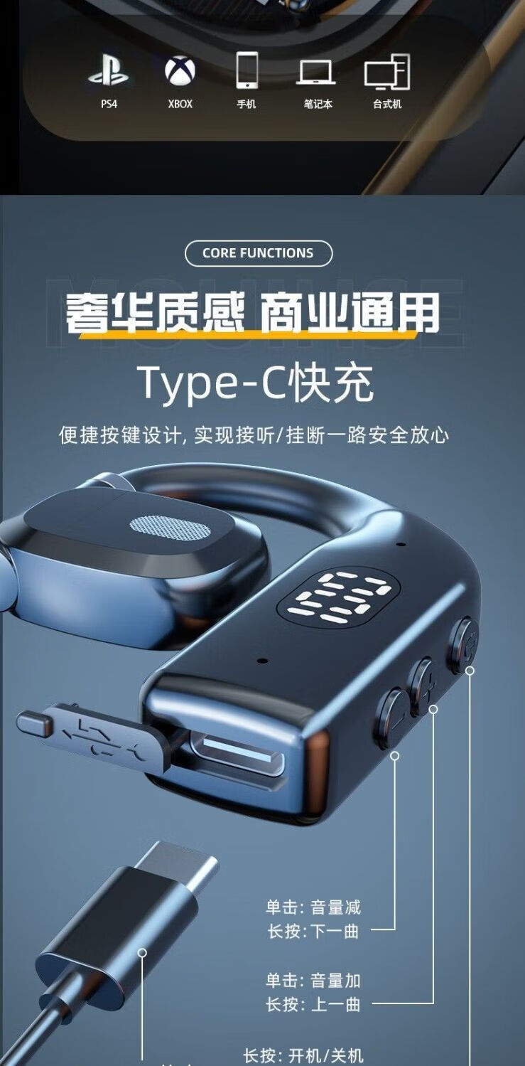 Comfortable to wear, car Bluetooth headset, sports, not in ear, high quality, rotatable business Bluetooth headset P7, black single ear, medium size 180, rotatable for wearing + Bluetooth 5.4