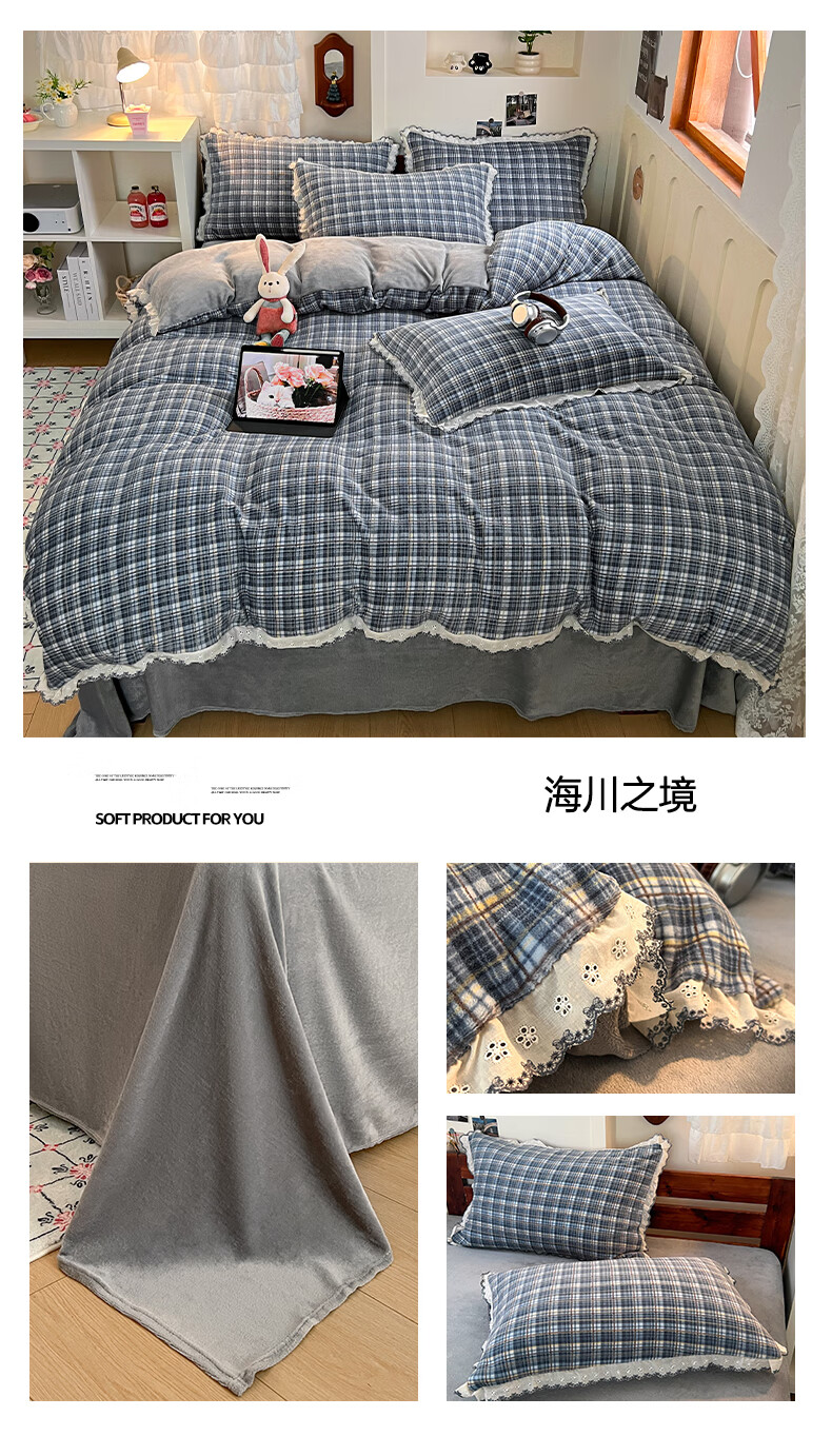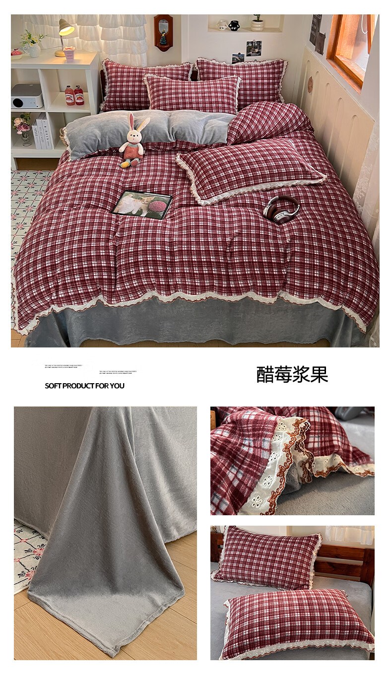 La Chapelle milk velvet four-piece winter baby flannel sheet quilt cover 2025 new bedding Gooseberry berry sheet style 1.5m four-piece set