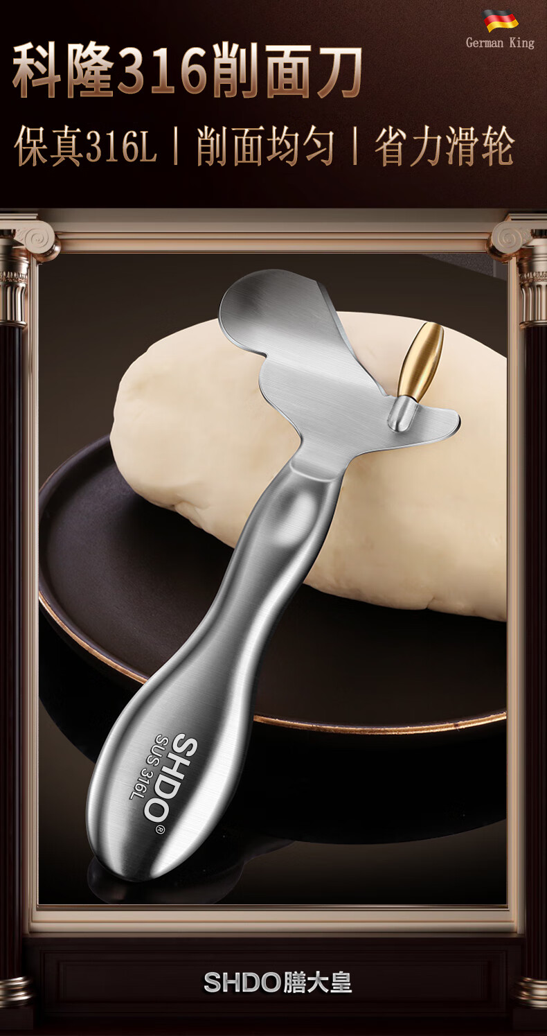 Shandahuang (SHDO) German 316 stainless steel noodle knife, special noodle knife, Shanxi pasta tool, hand-made noodle knife, Cologne 316L noodle knife + noodle wood board, one-piece molding