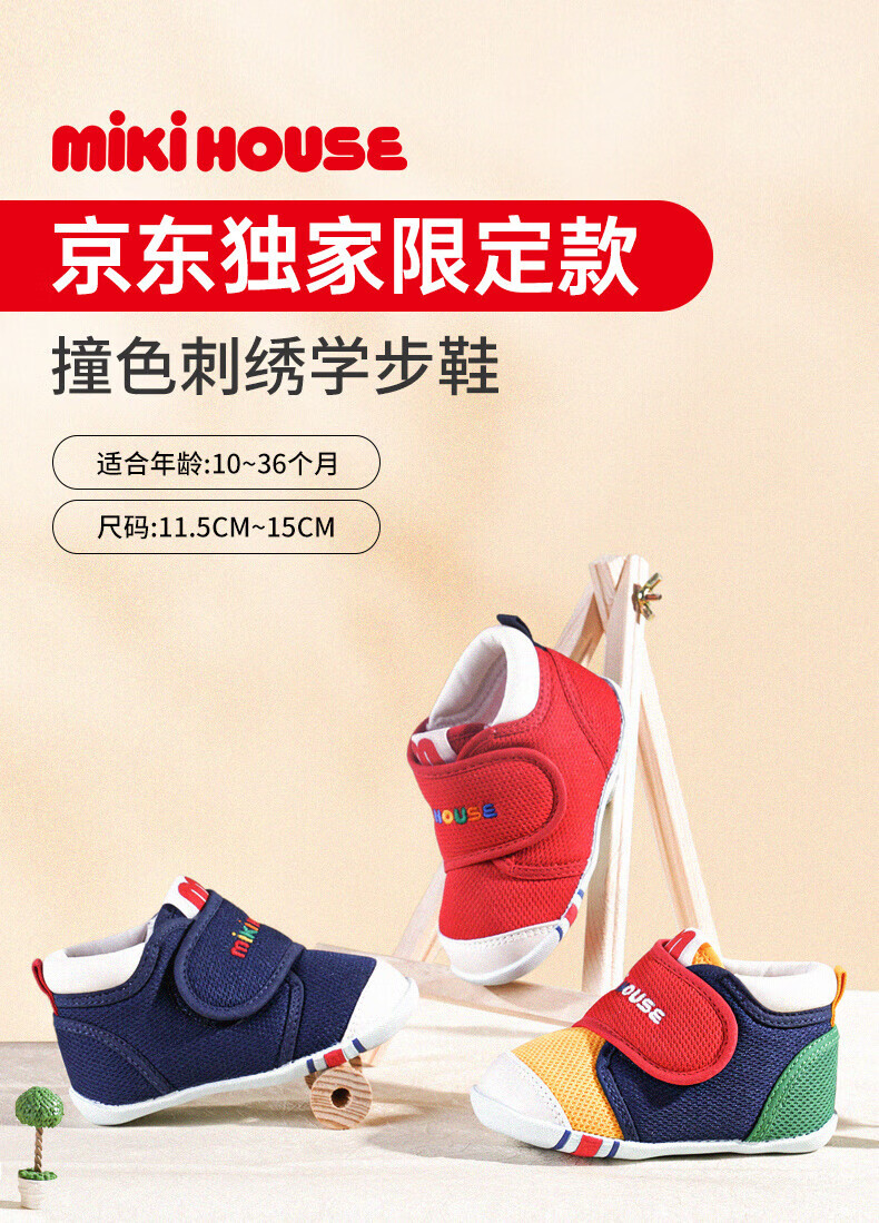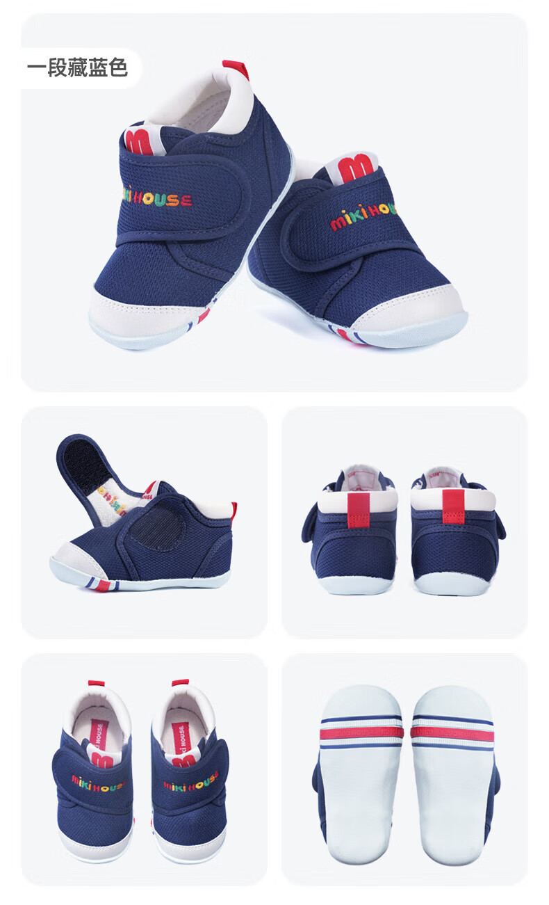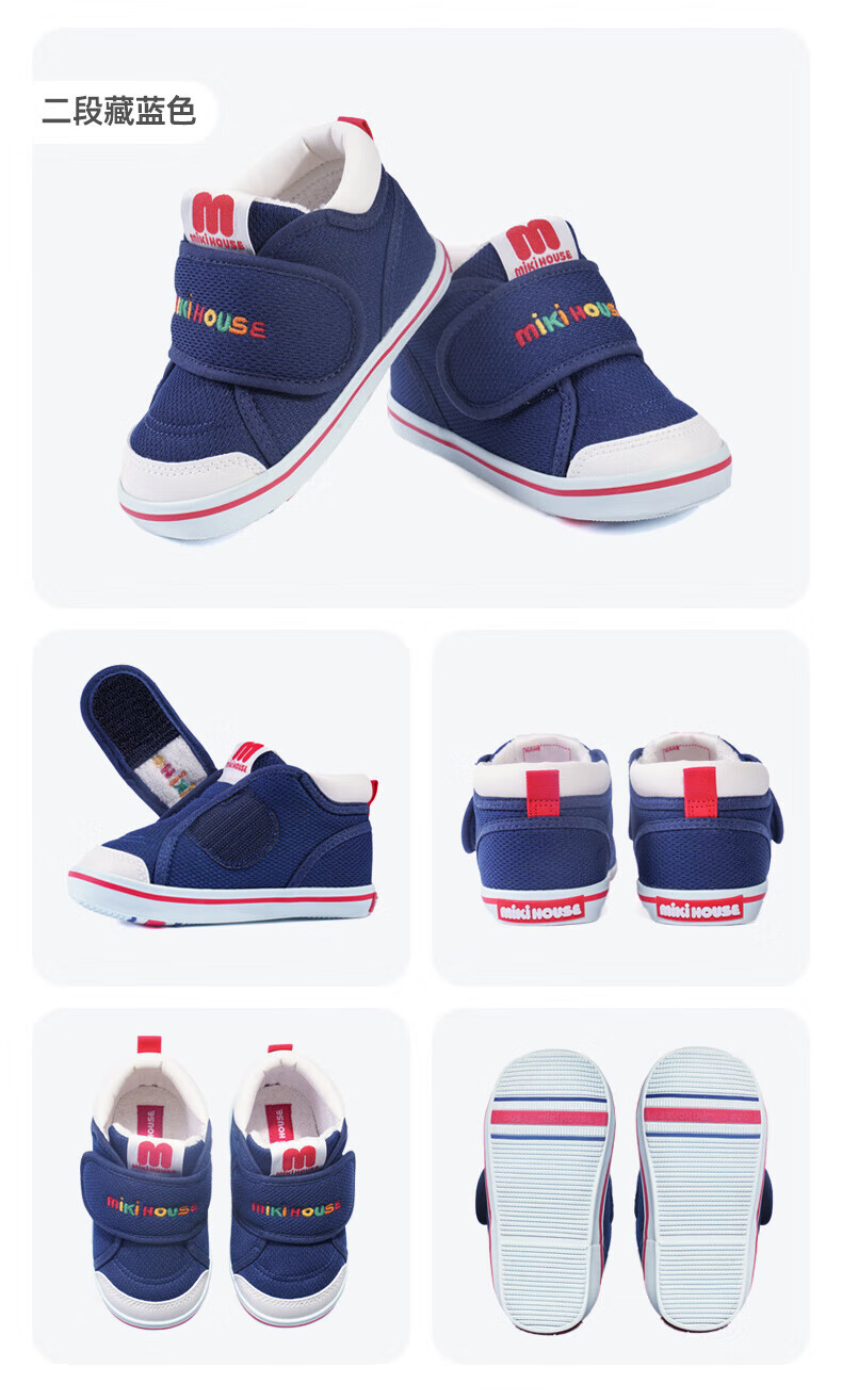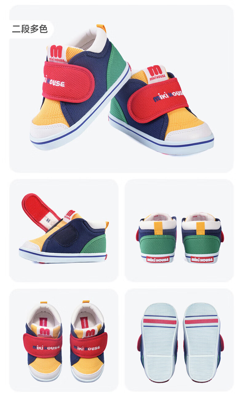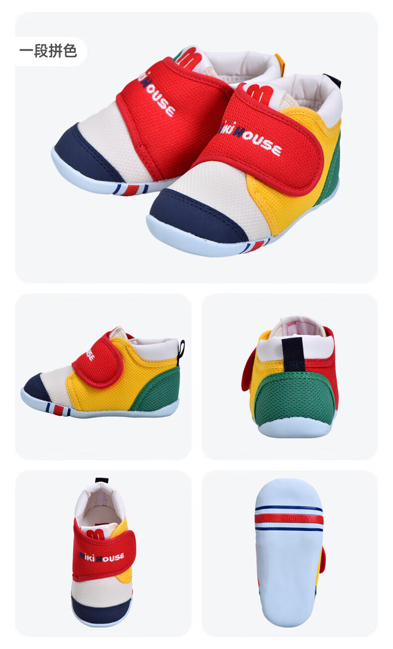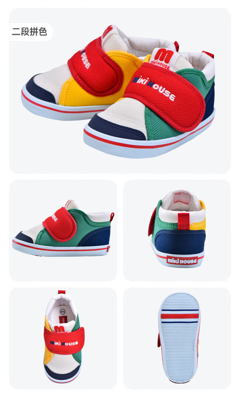 MIKIHOUSE toddler shoes for boys and girls, classic LOGO toddler shoes, infant and toddler sneakers, wear-resistant, non-slip, multi-color, stable period 14, second section (suitable for feet 13.5cm long)