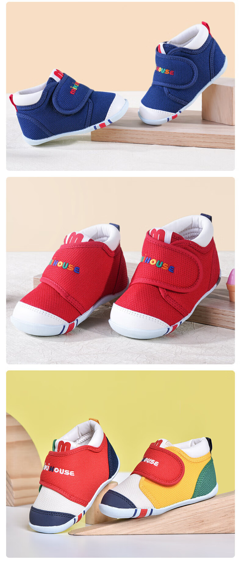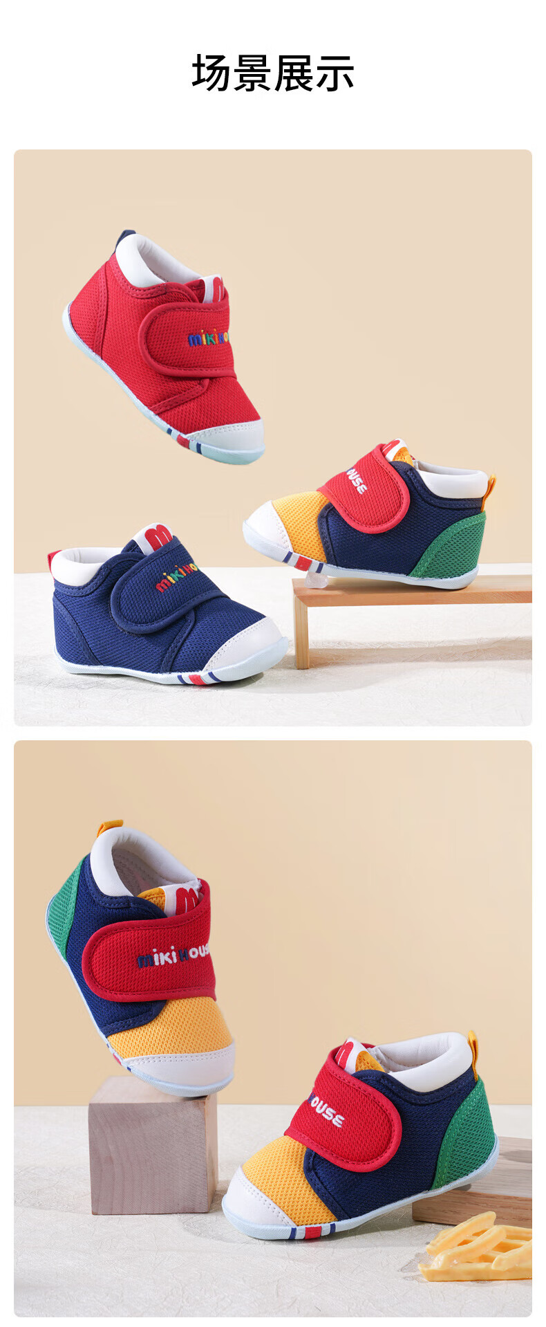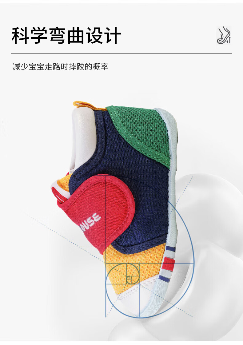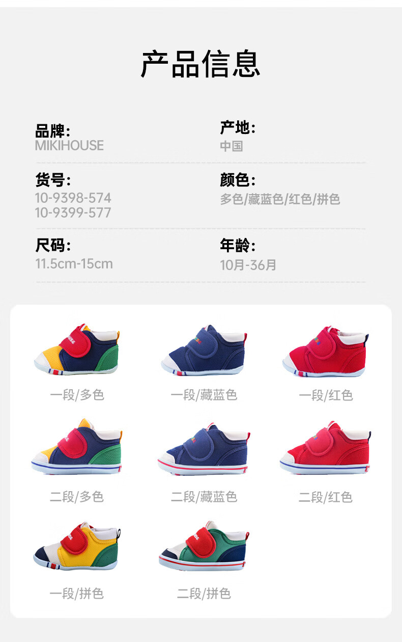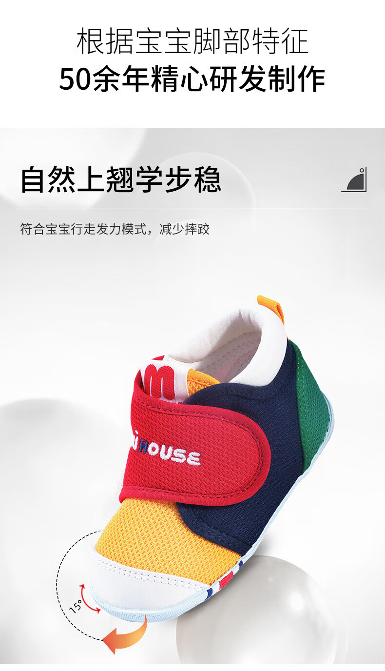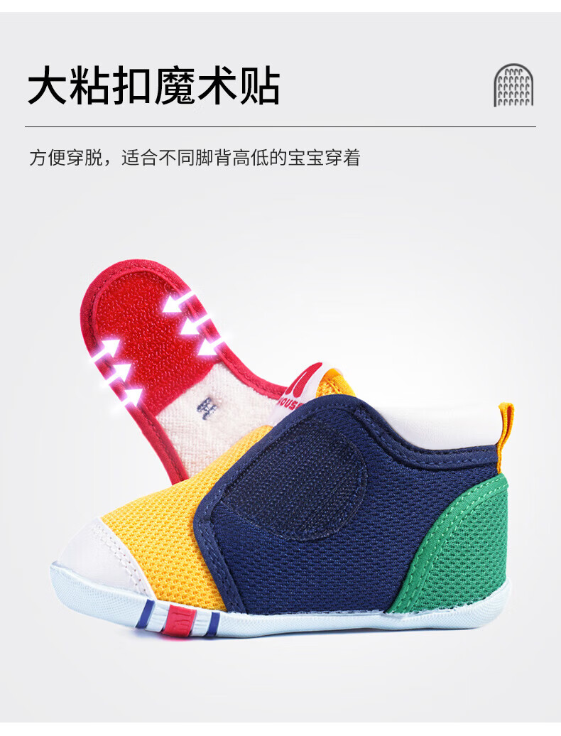 MIKIHOUSE toddler shoes for boys and girls, classic LOGO toddler shoes, infant and toddler sneakers, wear-resistant, non-slip, multi-color, stable period 14, second section (suitable for feet 13.5cm long)