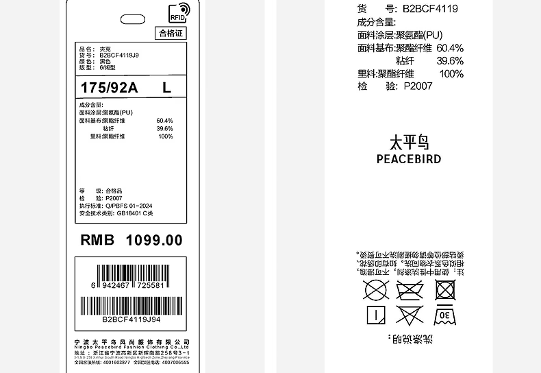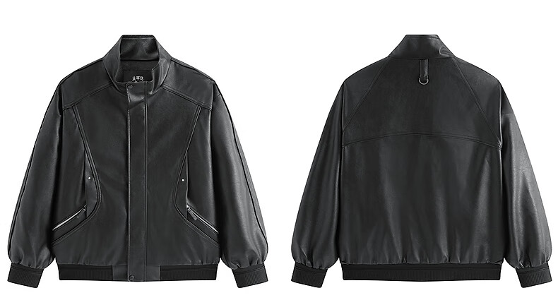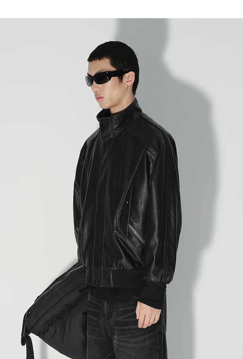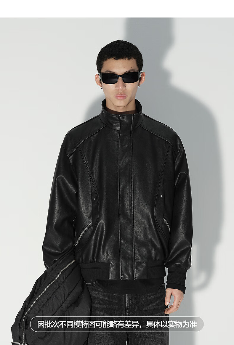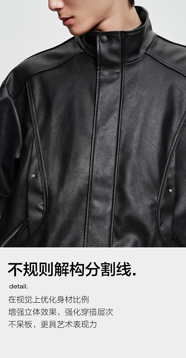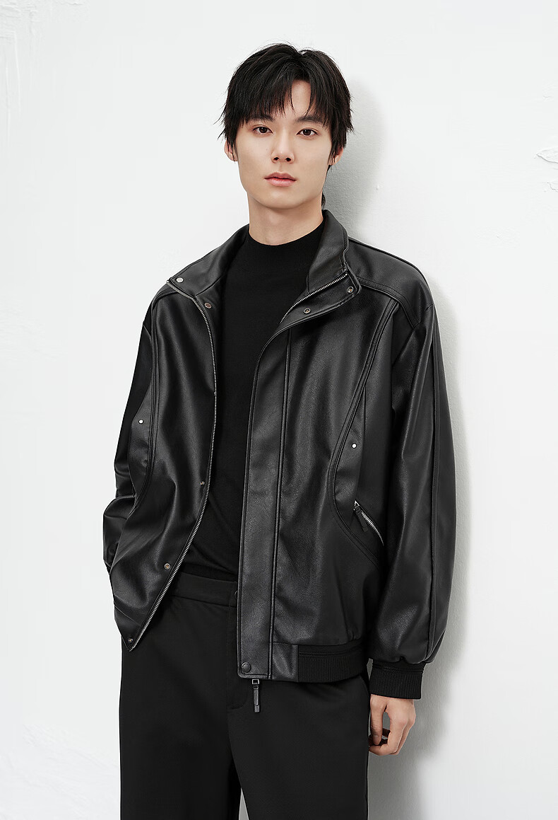 PEACEBIRD Men's Wear Shopping Mall Same Style 2025 Winter New PU Leather Stand Collar Jacket B2BCF4119 Black 1 L
