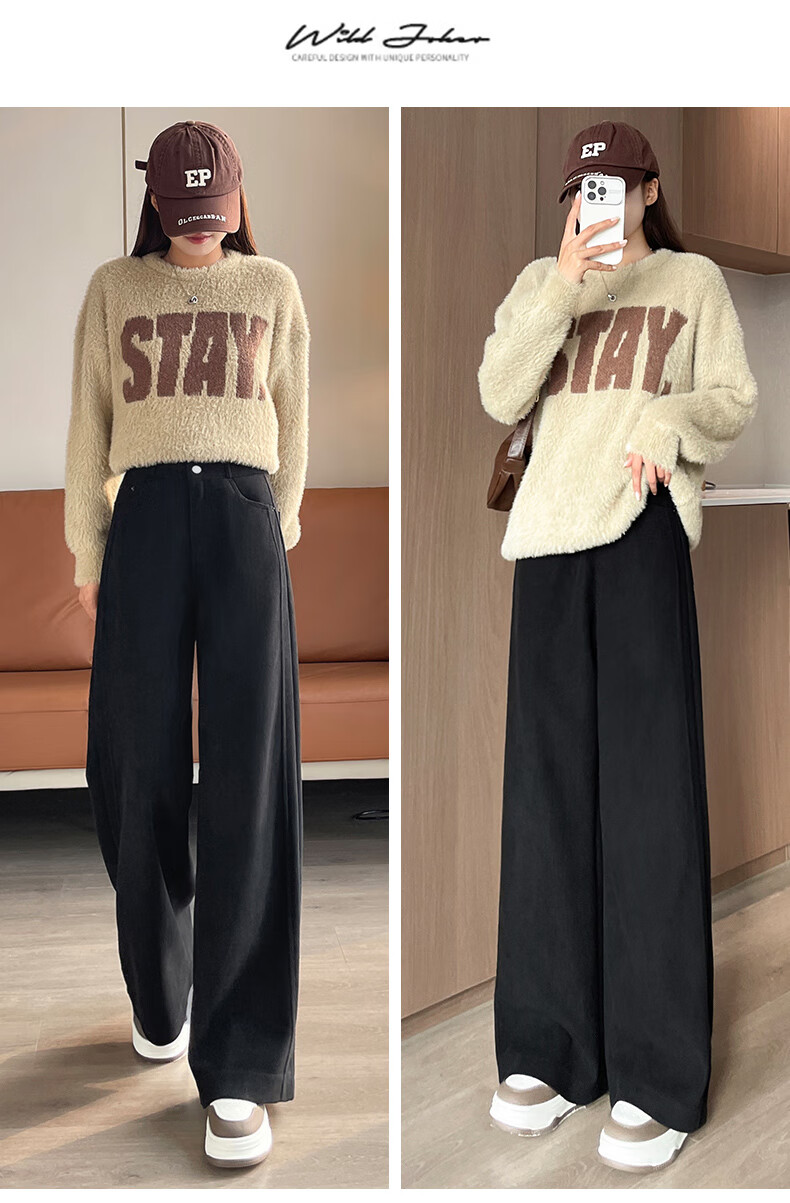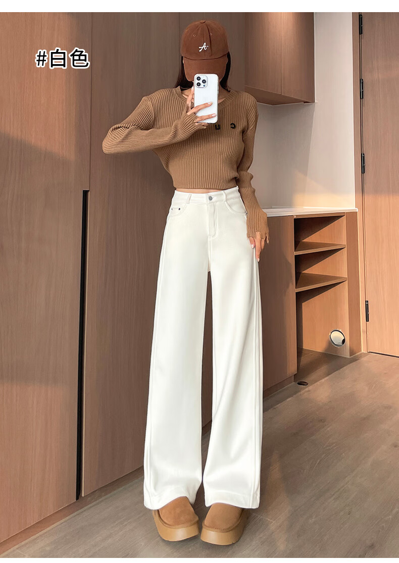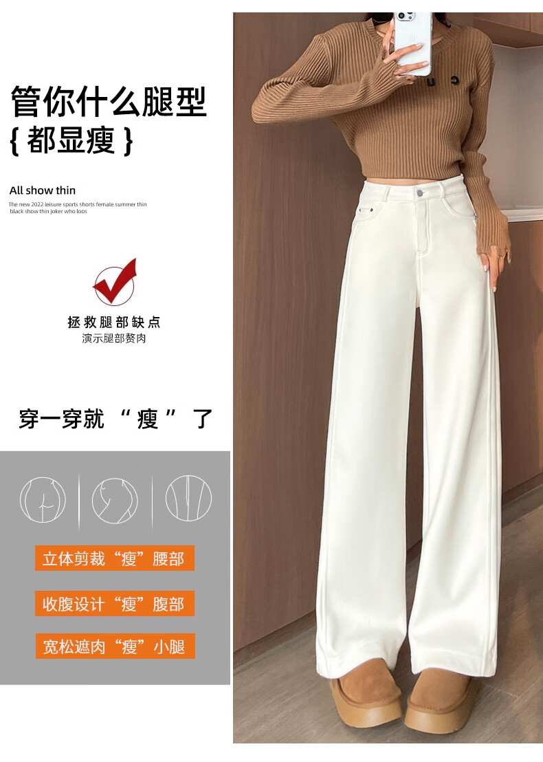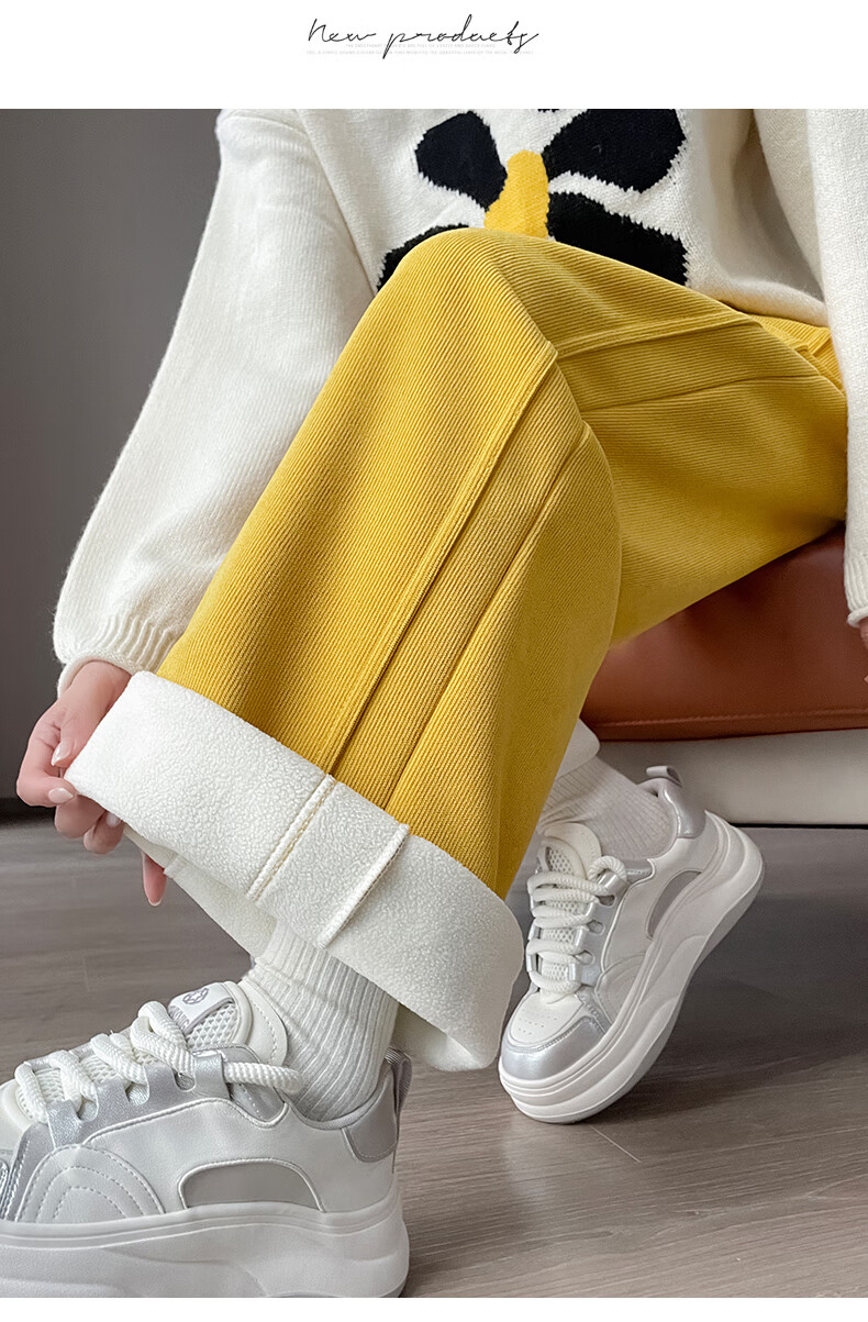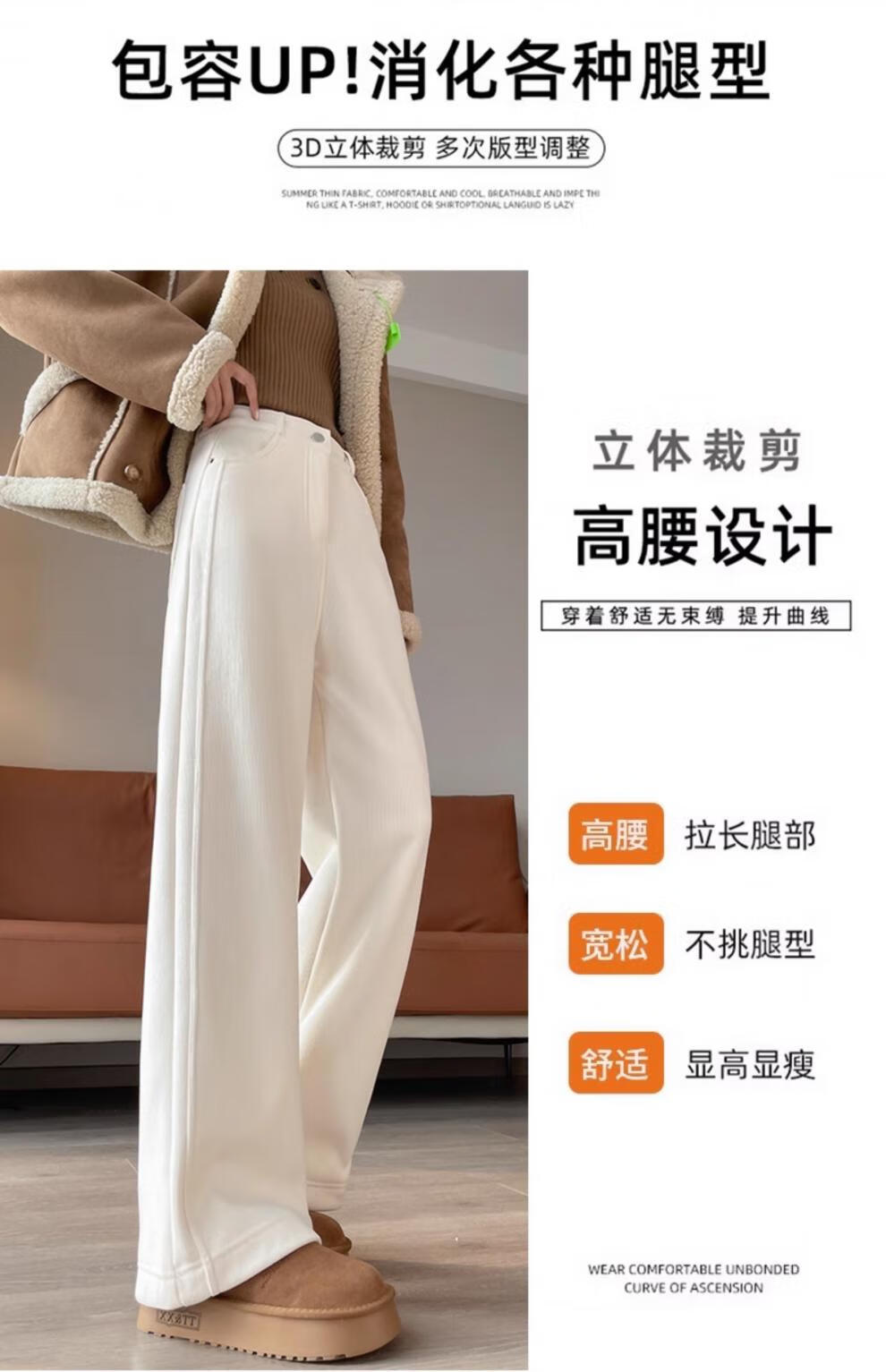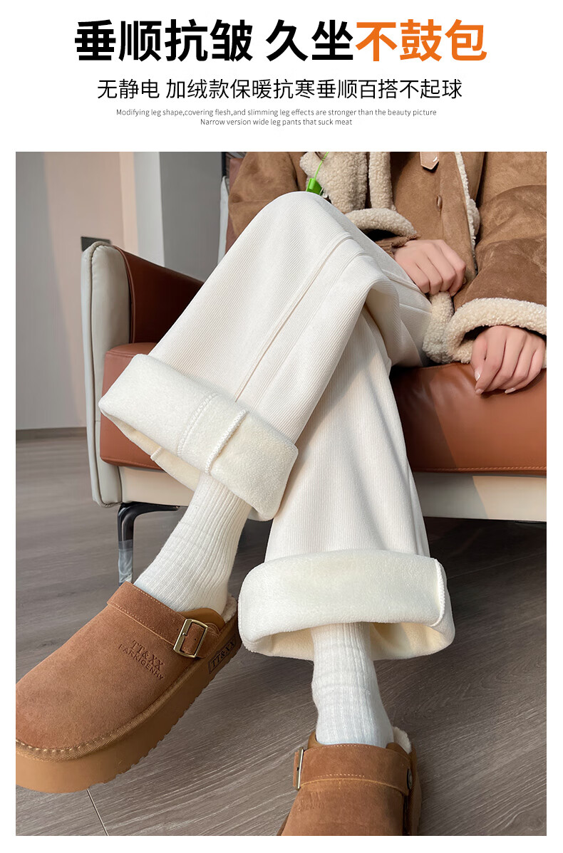 花花公子(PLAYBOY)白色雪尼尔阔腿裤女秋冬2025年新款羊羔绒直筒休闲灯芯绒加绒裤子 白色灯芯绒裤【春秋款】 M 适合100-110斤