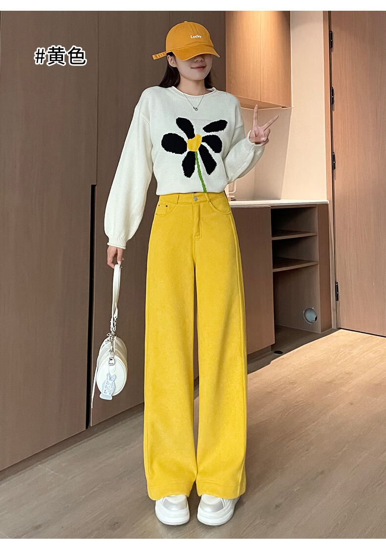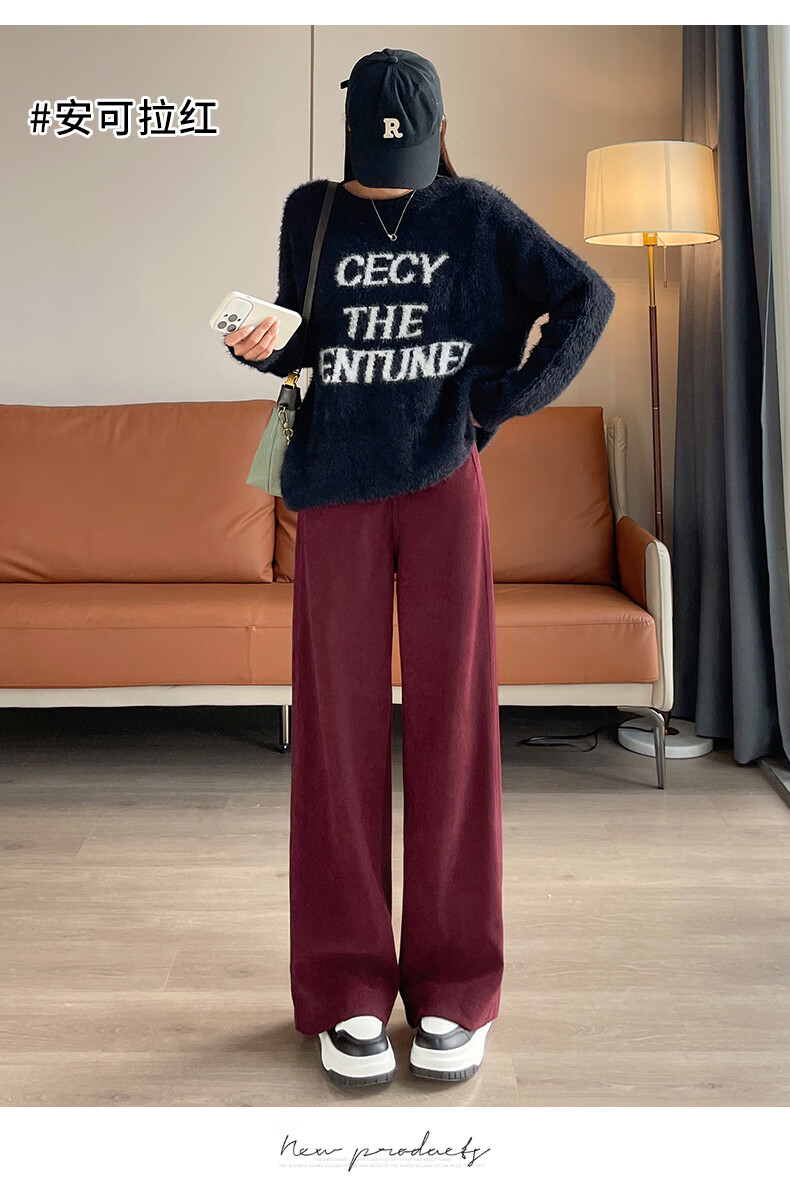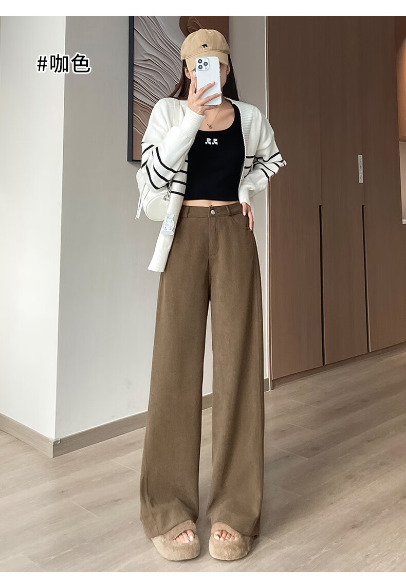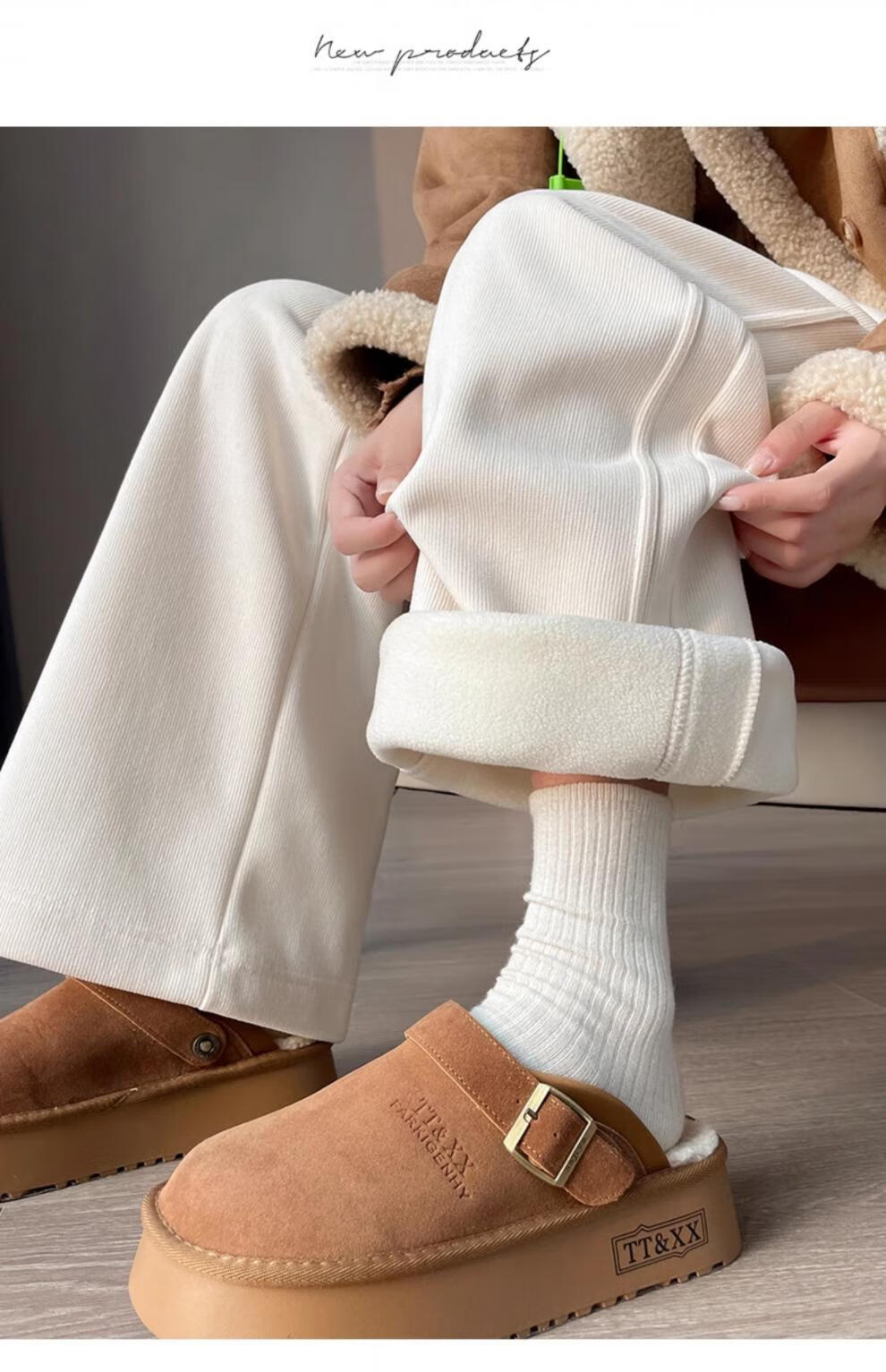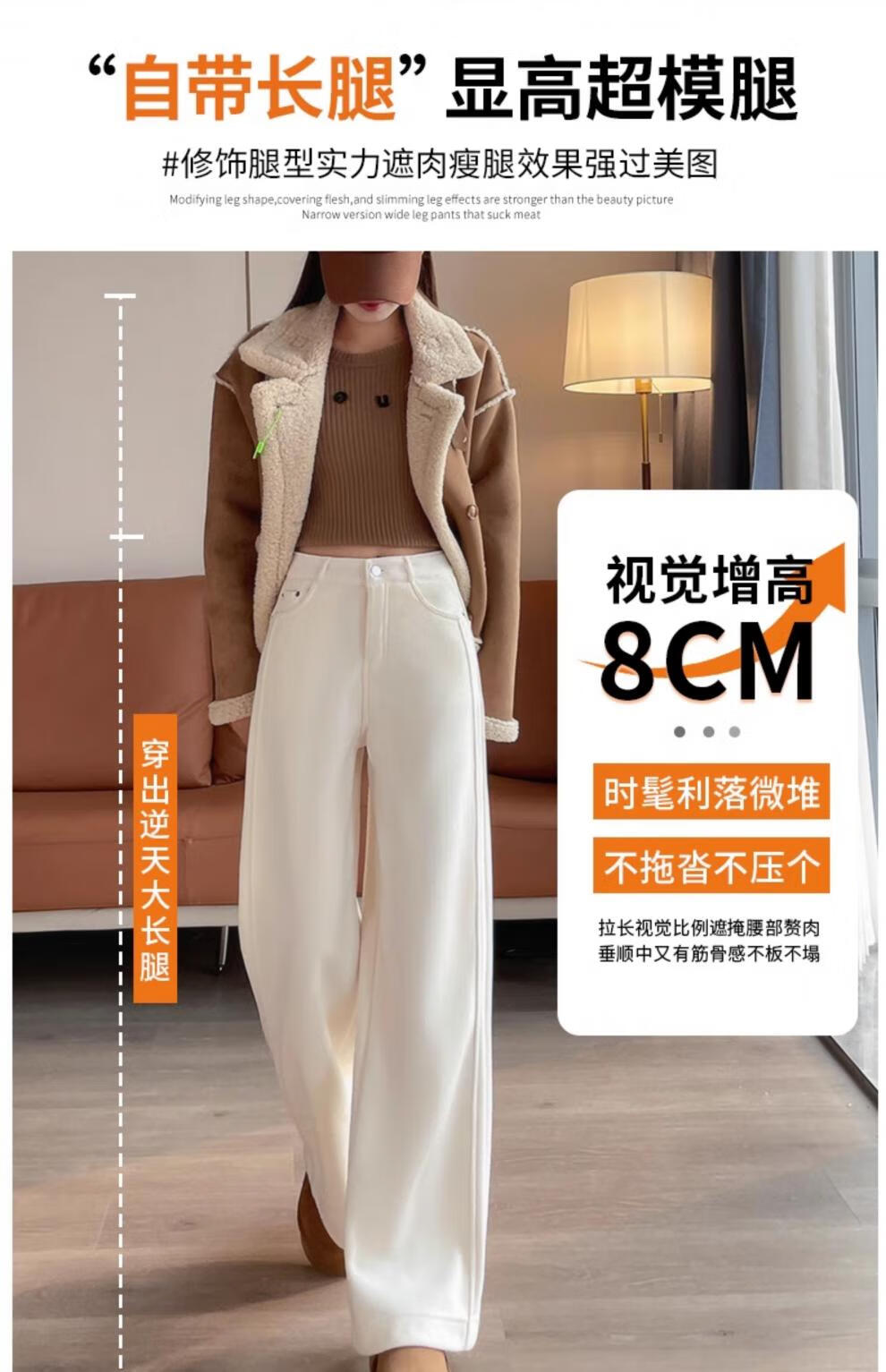 花花公子(PLAYBOY)白色雪尼尔阔腿裤女秋冬2025年新款羊羔绒直筒休闲灯芯绒加绒裤子 白色灯芯绒裤【春秋款】 M 适合100-110斤