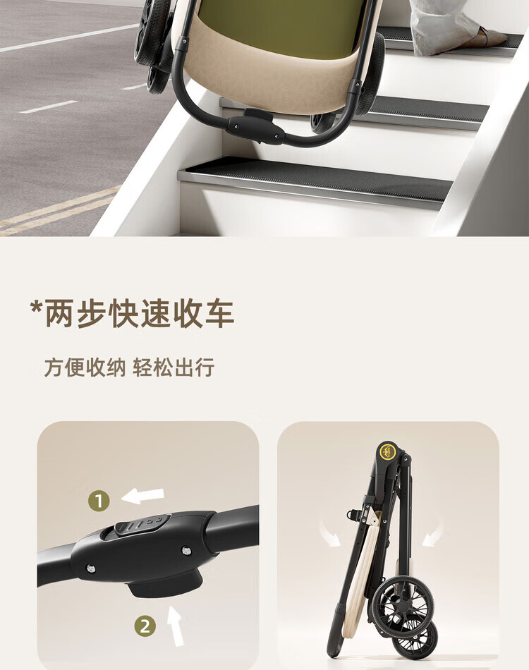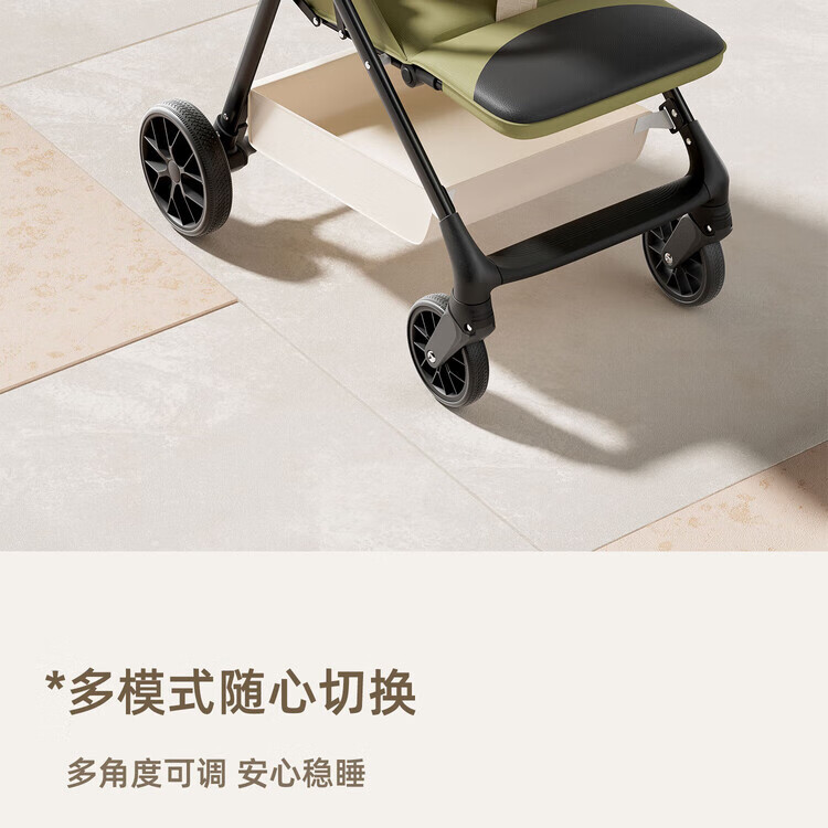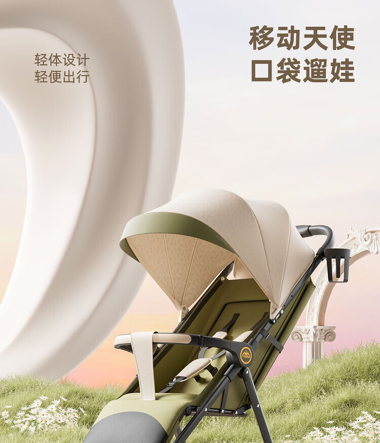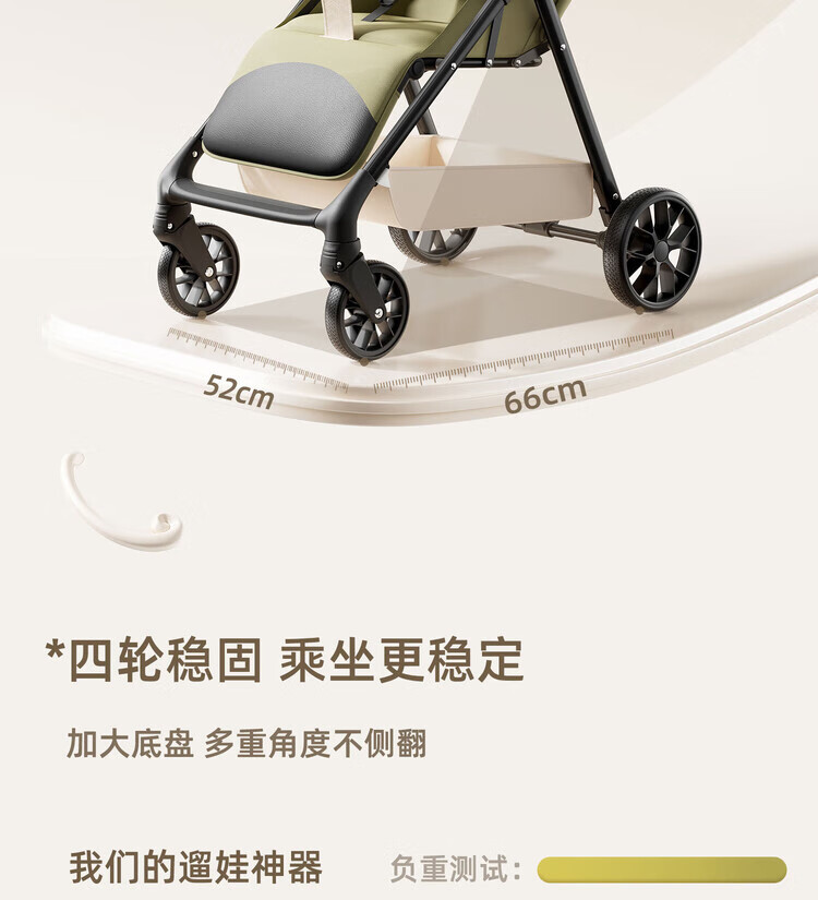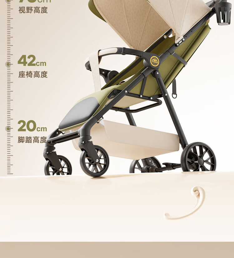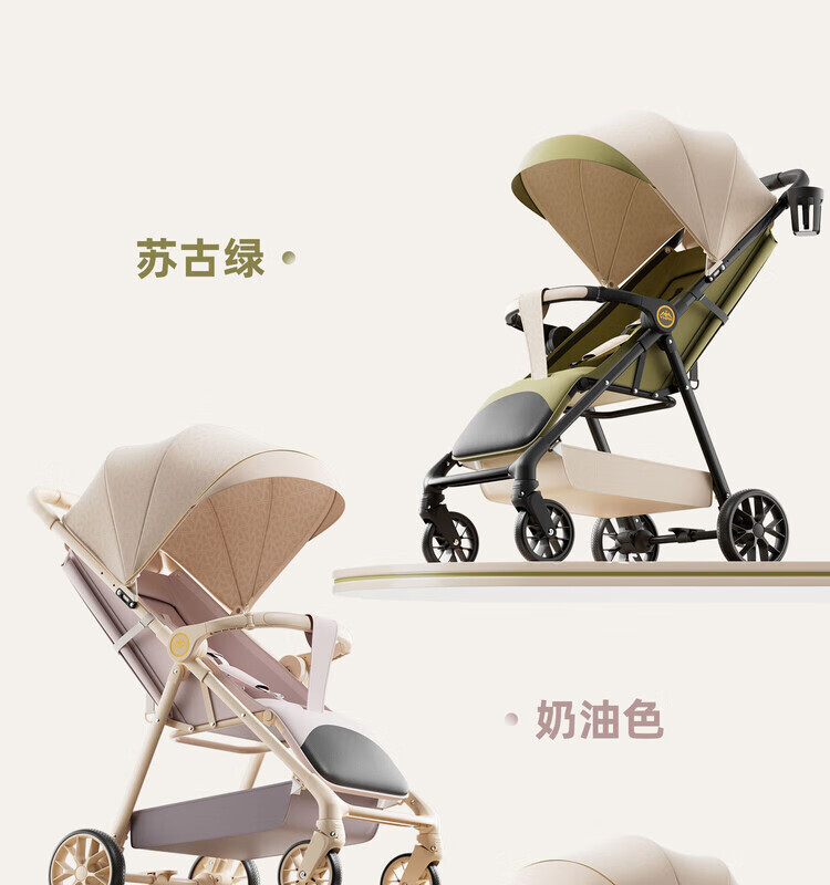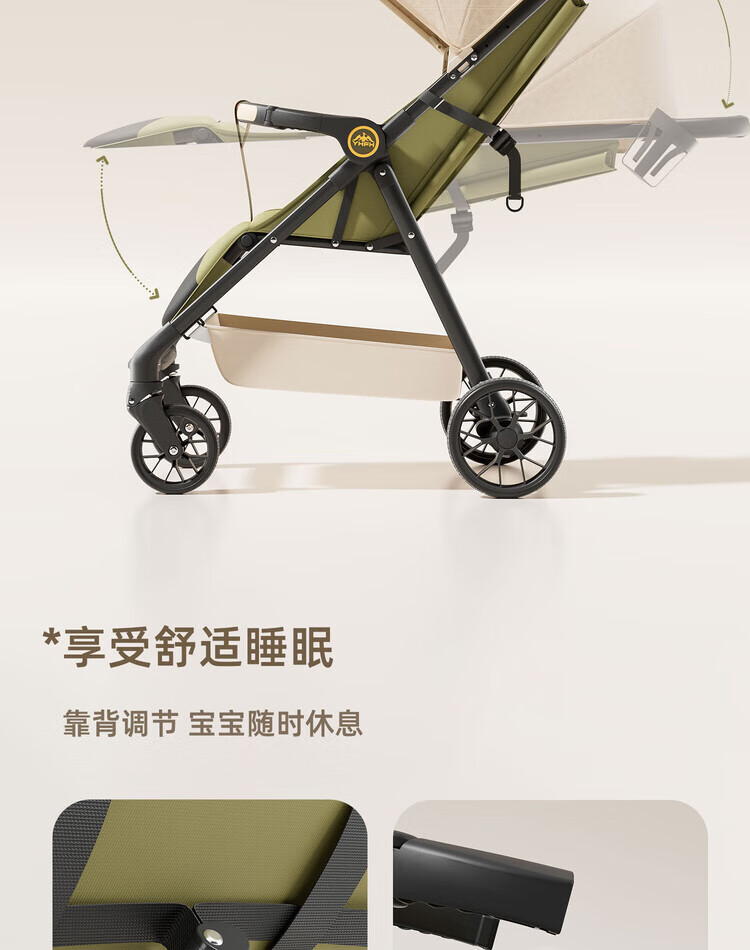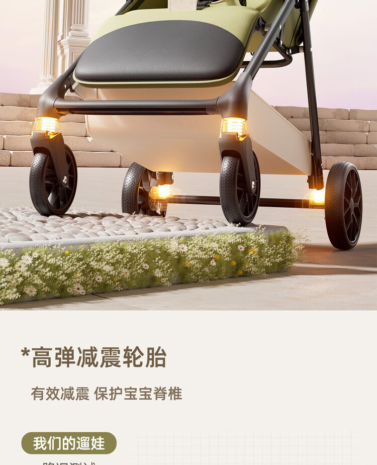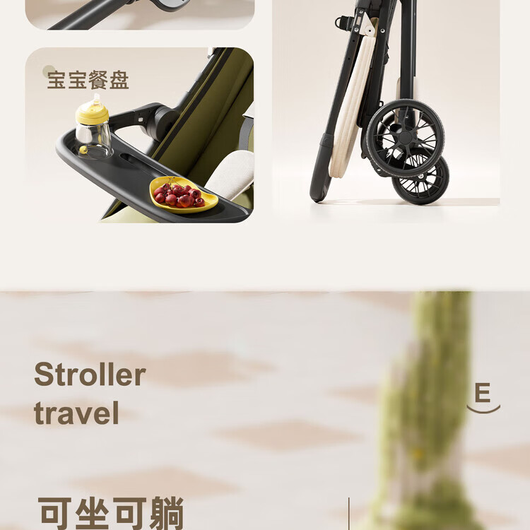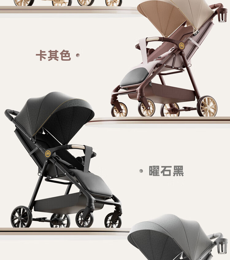 Anbeini baby stroller, baby stroller, stroller for 0-3 years old, foldable, sitting and lying, shock-absorbing stroller, khaki flagship model + one-touch folding + dinner plate