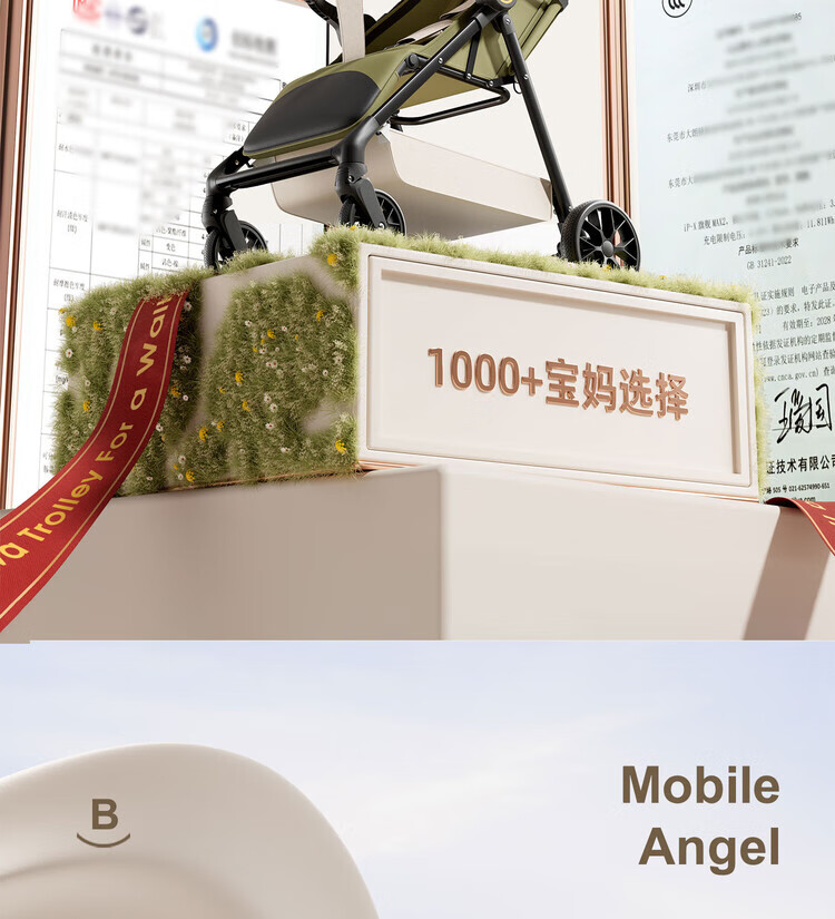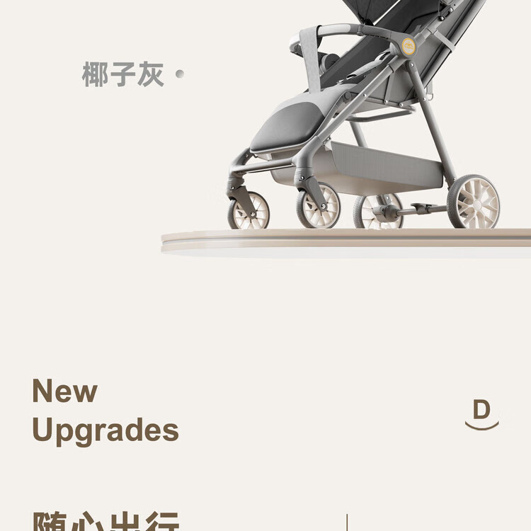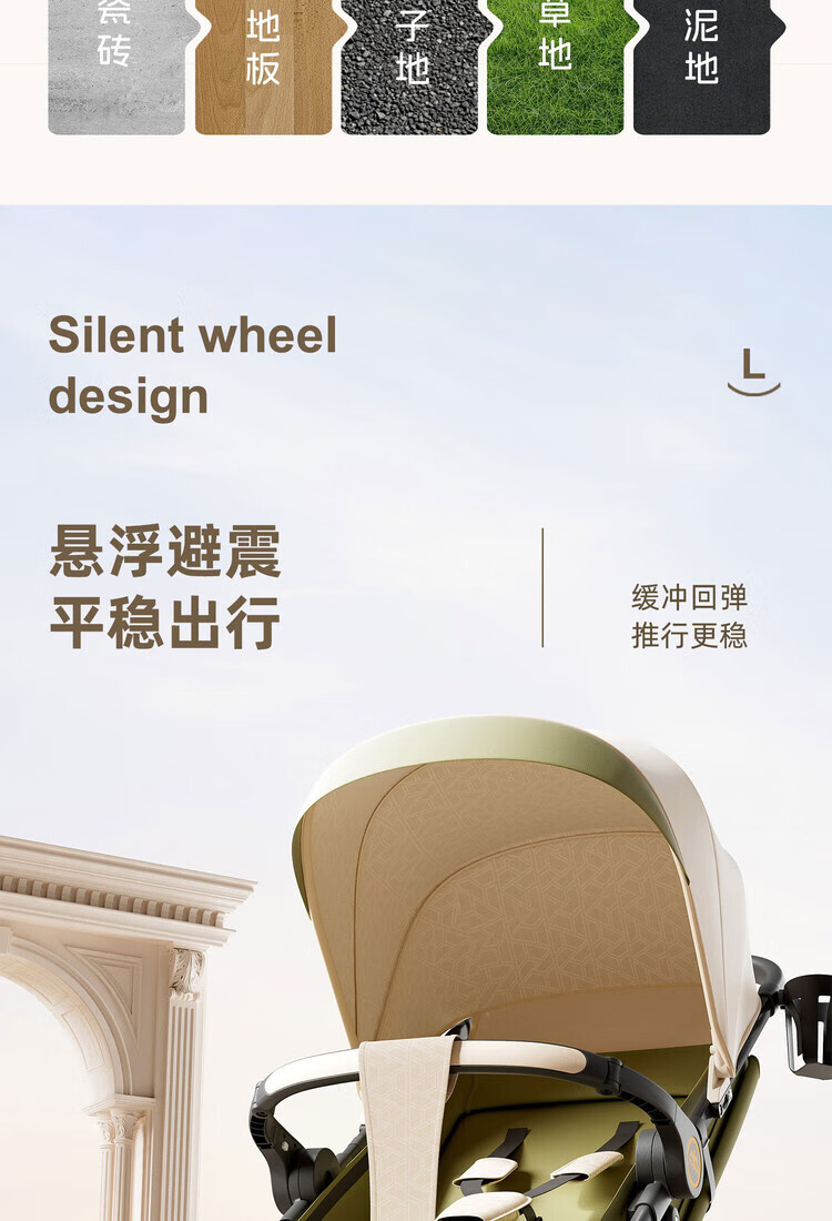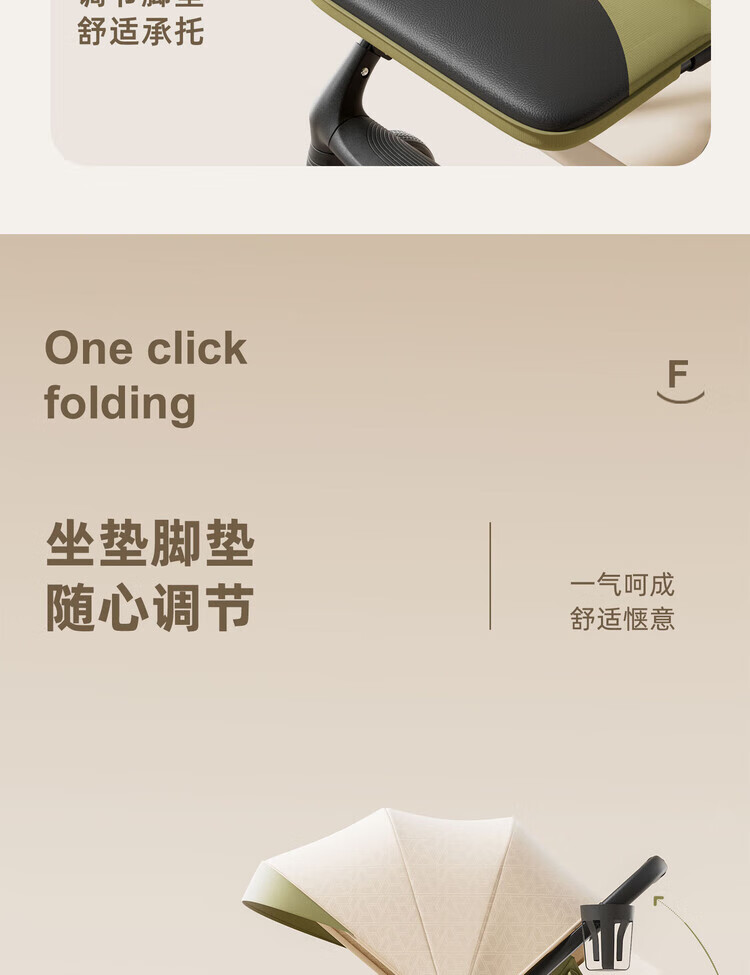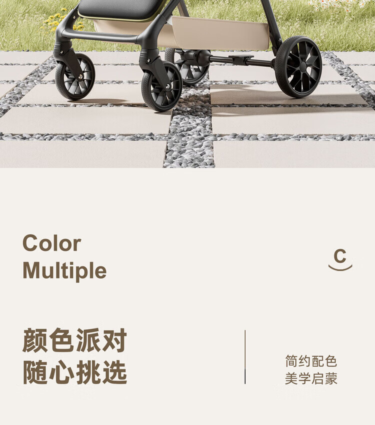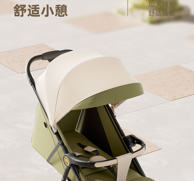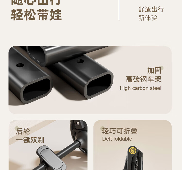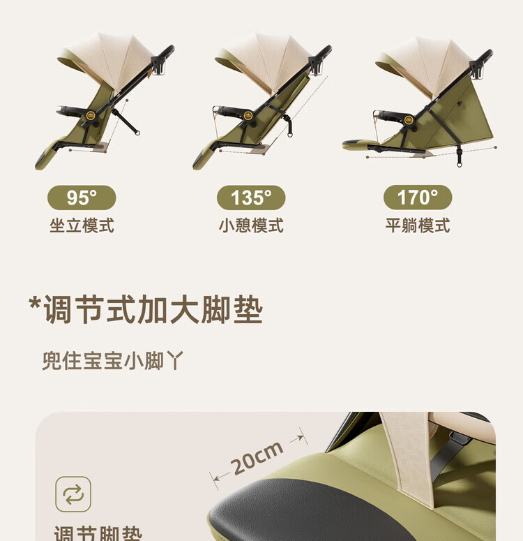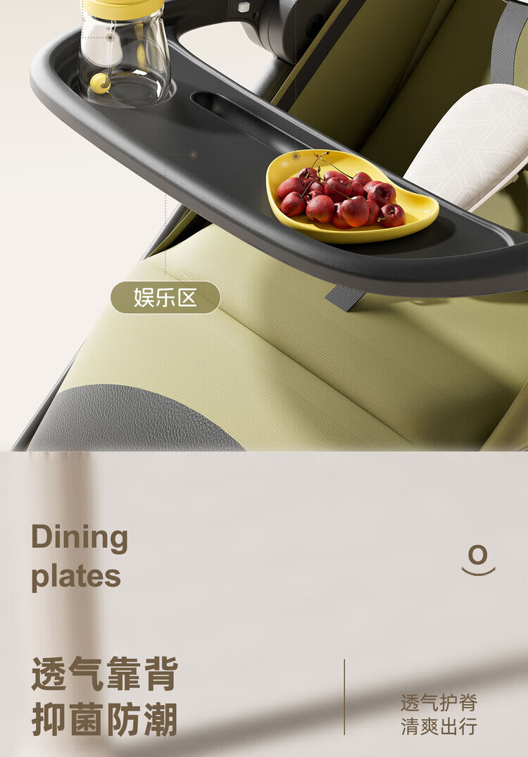 Anbeini baby stroller, baby stroller, stroller for 0-3 years old, foldable, sitting and lying, shock-absorbing stroller, khaki flagship model + one-touch folding + dinner plate