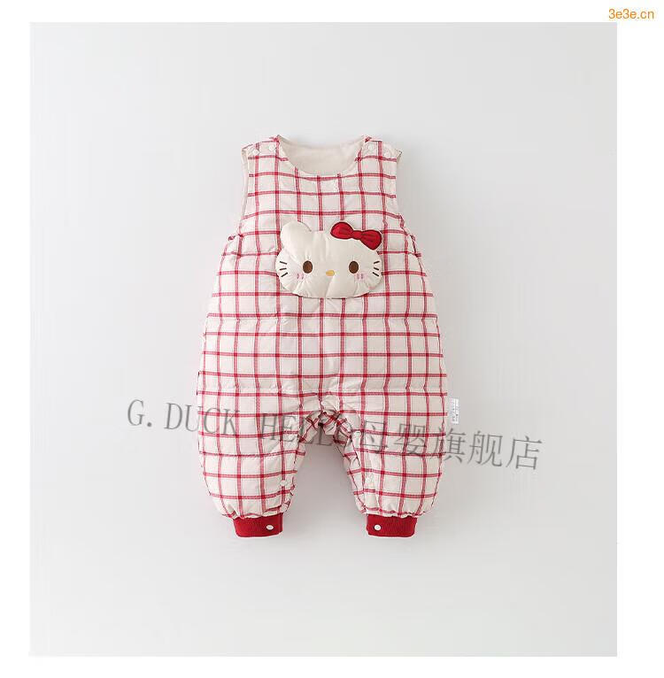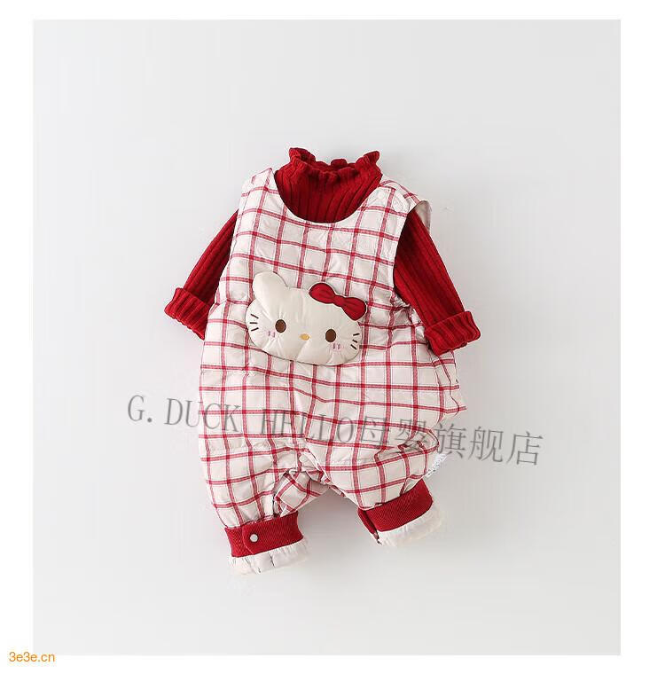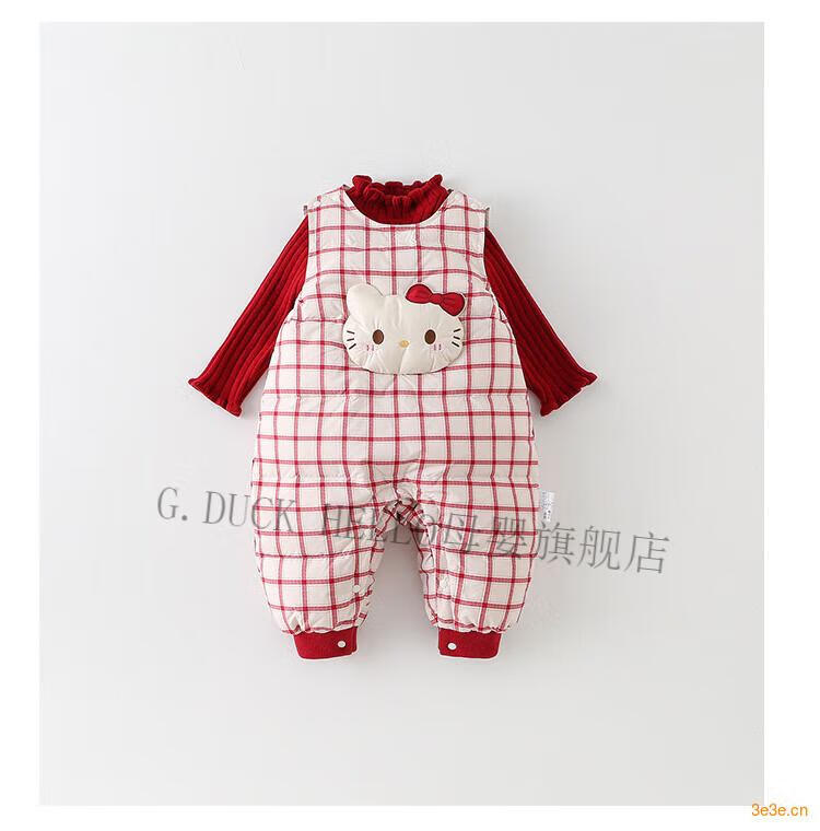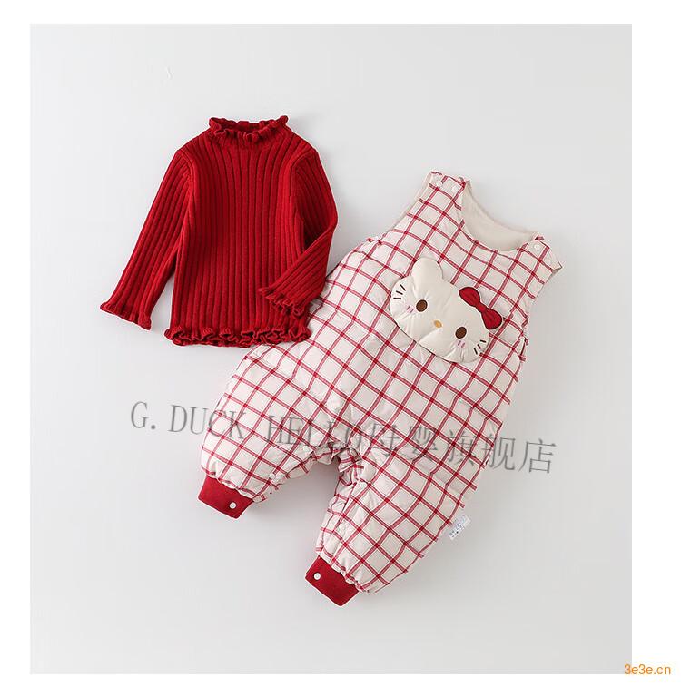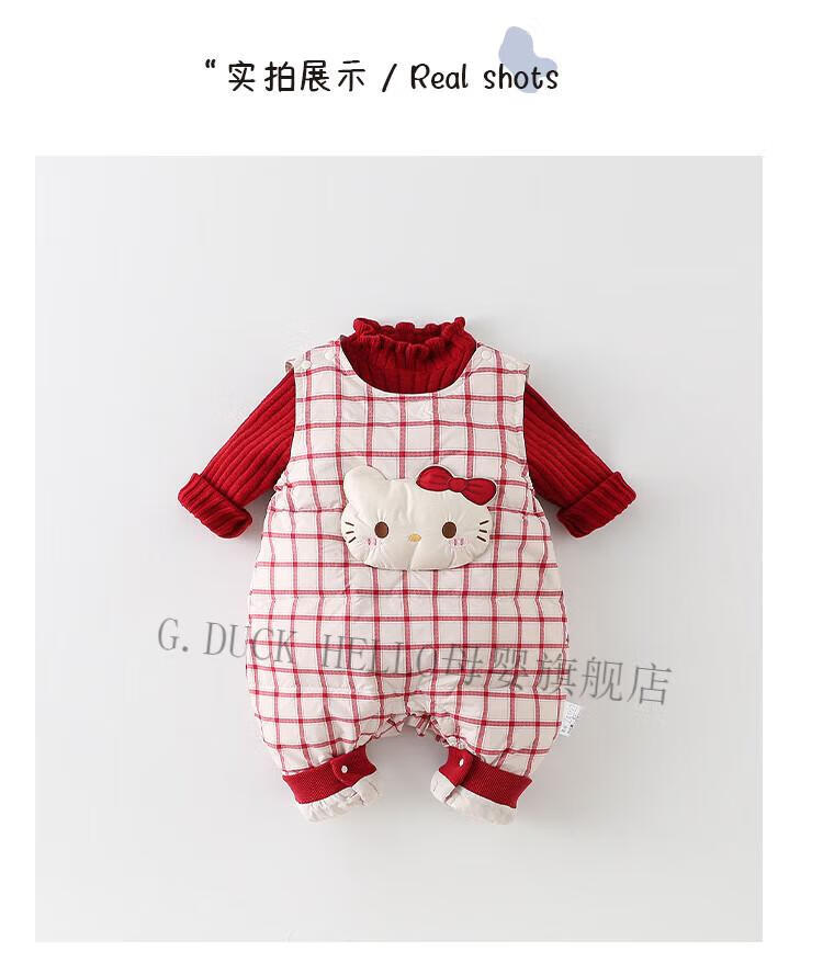 G.DUCKKIDS Little Yellow Duck Children's Clothing Down Overalls Infants and Toddlers Pants Baby Girl Winter Clothes Warm and Cold Plaid Jumpsuit Red 90 Size Recommendation 1~2 Years Old cm