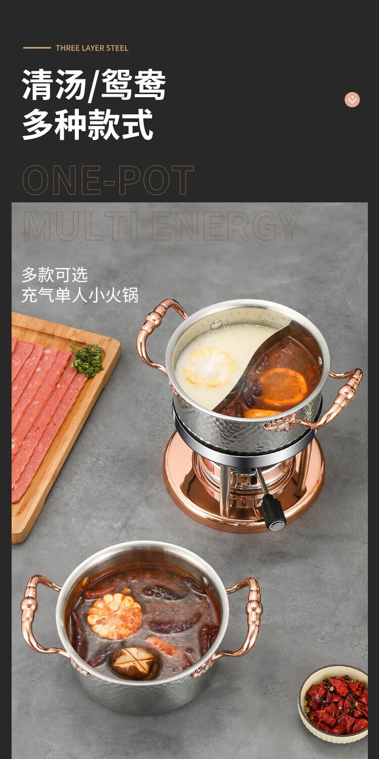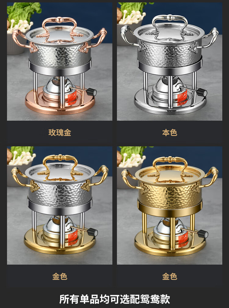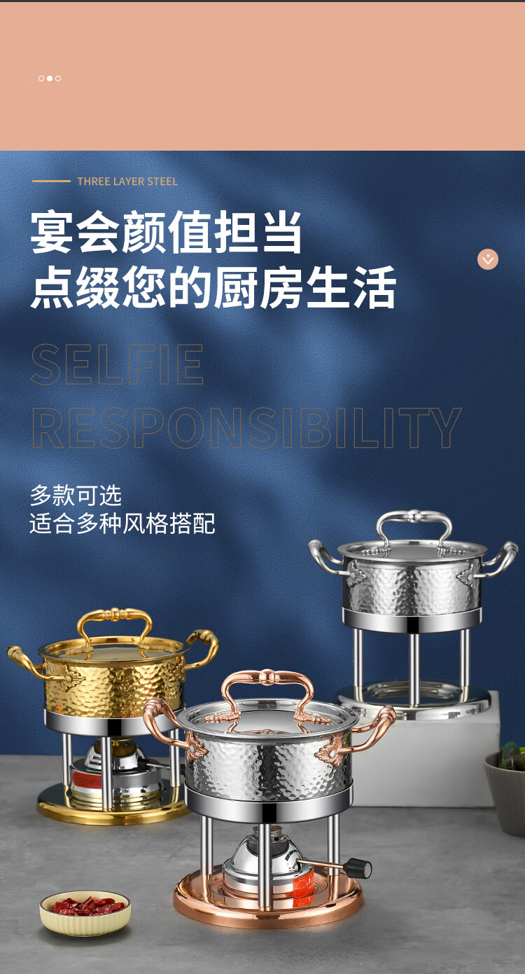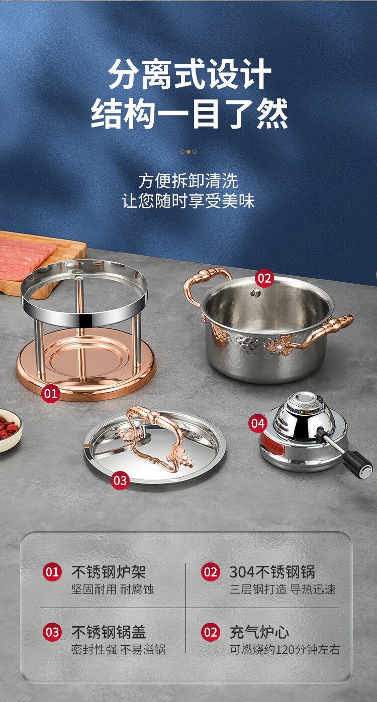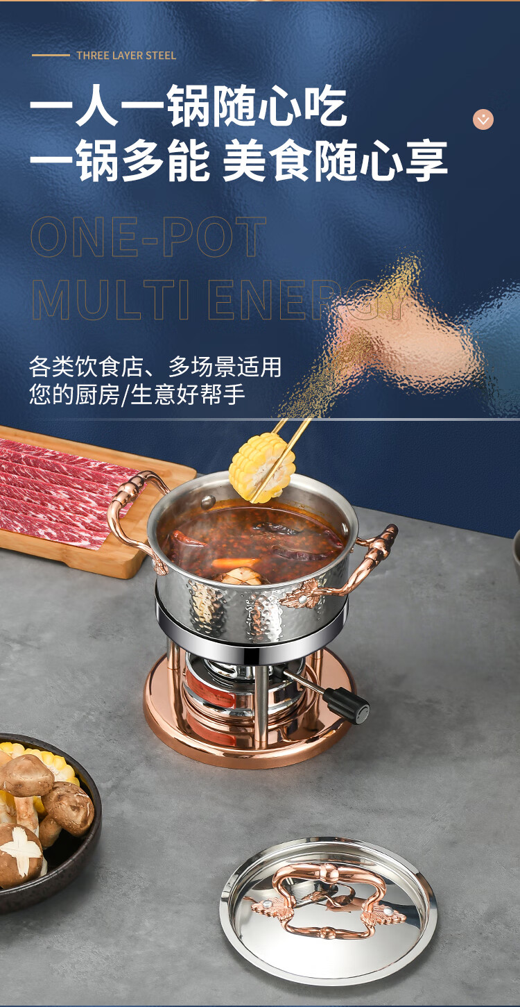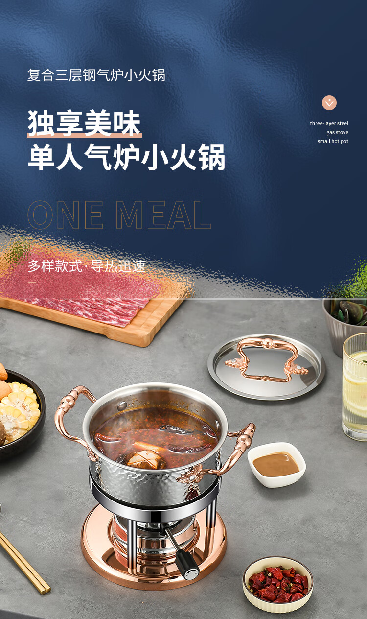 304 stainless steel small hot pot self-service gas stove inflatable single boiler alcohol cup commercial restaurant one person one pot silver set - with large core burning 120 minutes 16cm