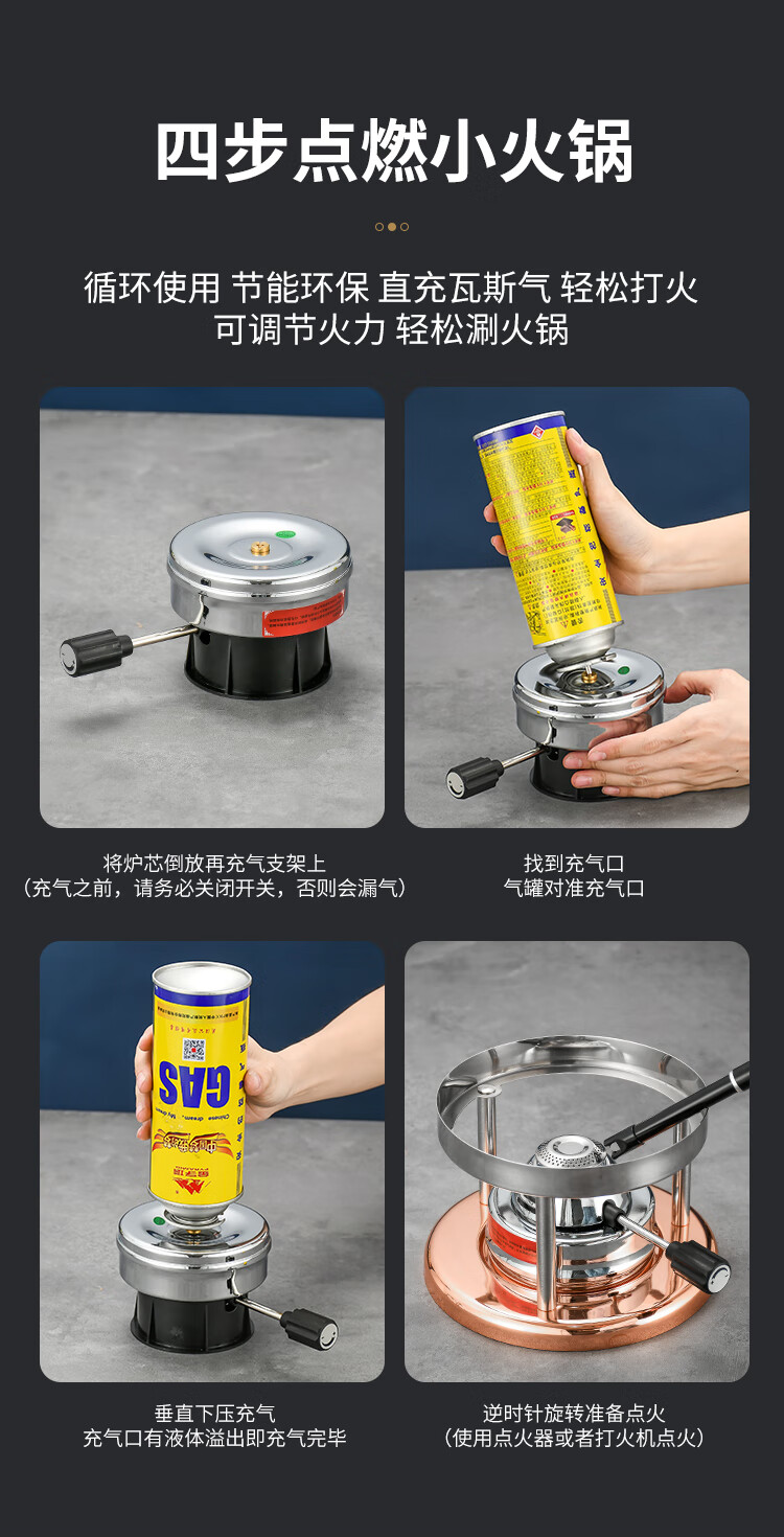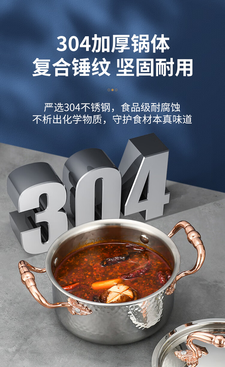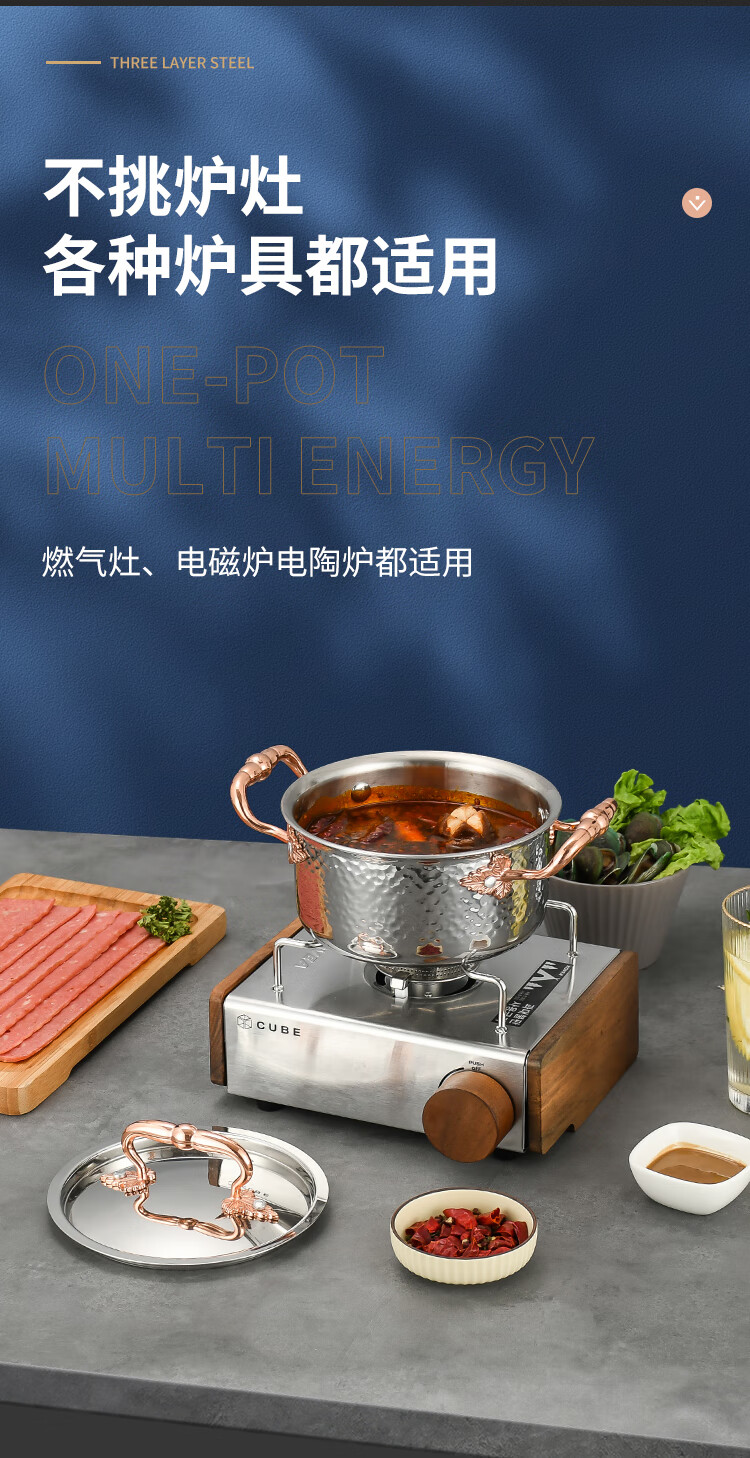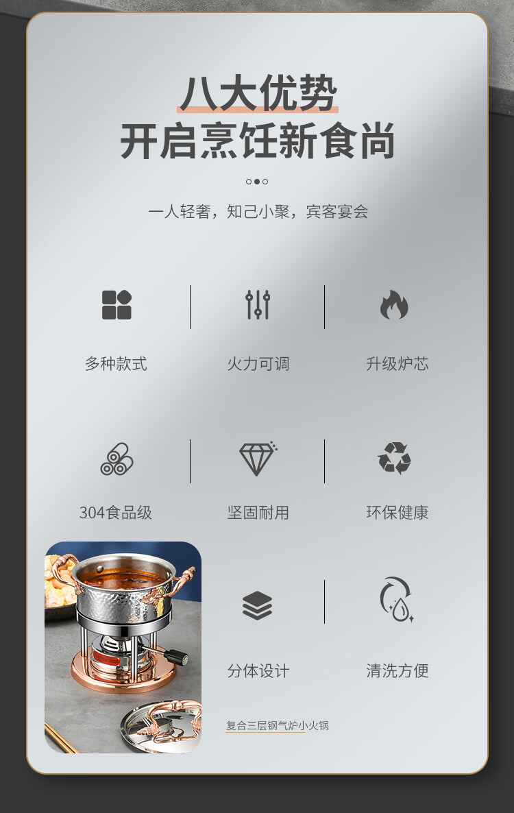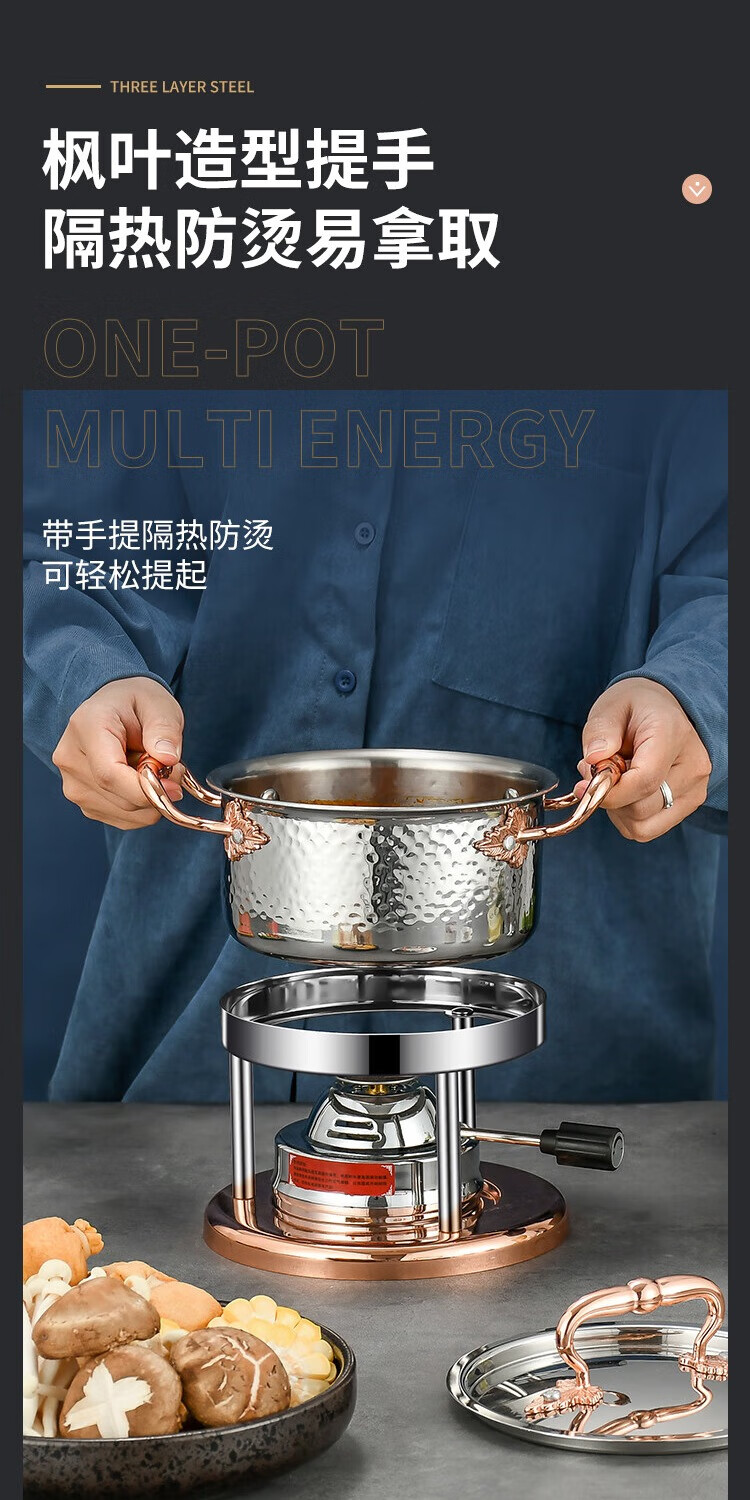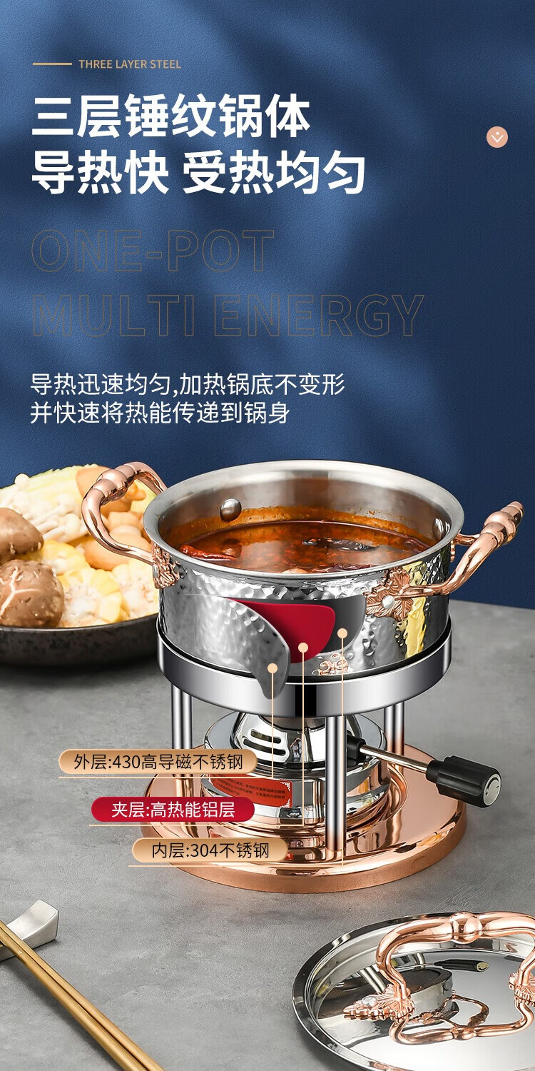 304 stainless steel small hot pot self-service gas stove inflatable single boiler alcohol cup commercial restaurant one person one pot silver set - with large core burning 120 minutes 16cm