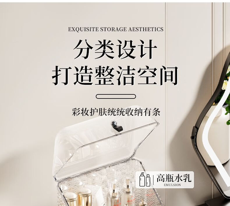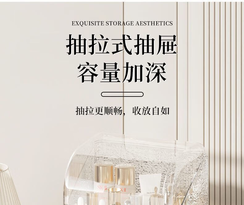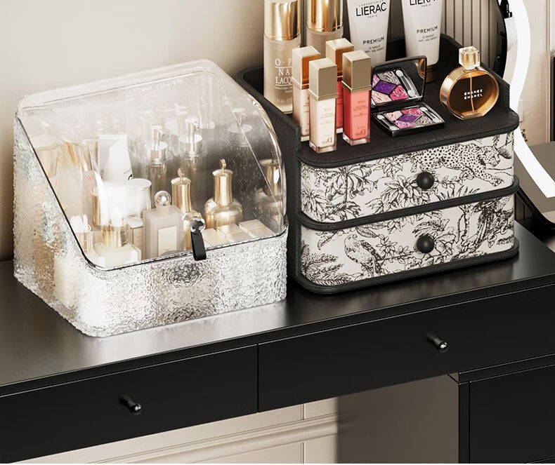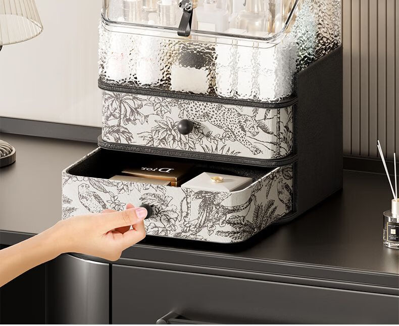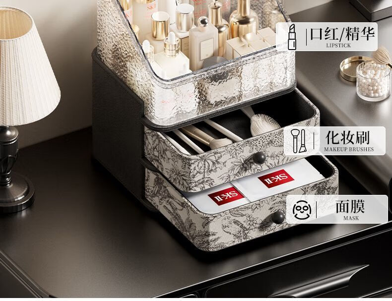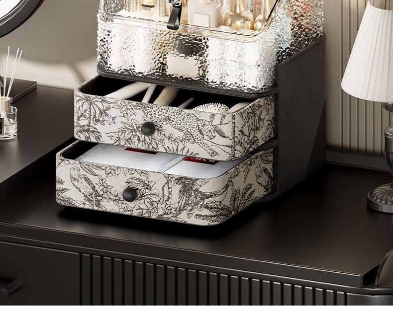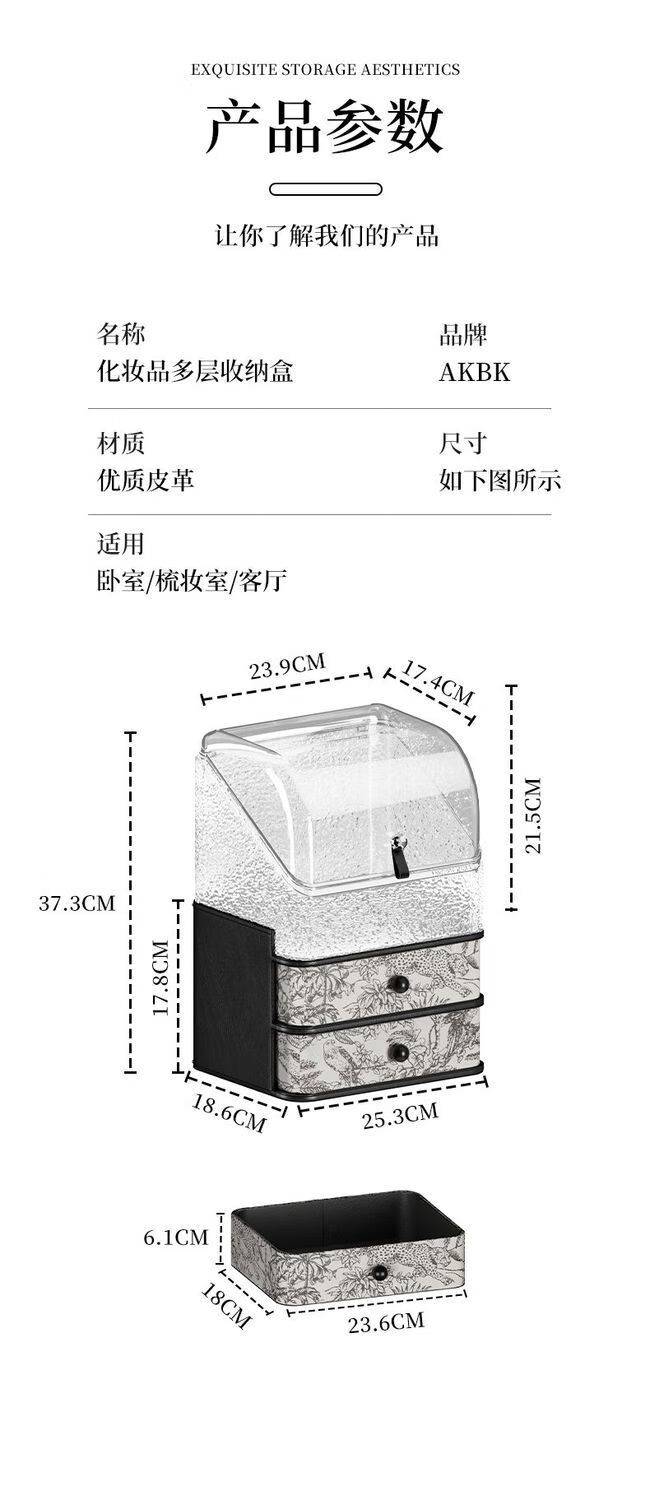 Vipero Makeup Brush Storage AKBK Cosmetic Storage Box Desktop Large Capacity Dustproof Dressing Table Lipstick Skin Care Product Flip Medieval Style Virgin Forest-Double Drawer + Flip Transparent Dustproof Box Leather + Density Board No Odor