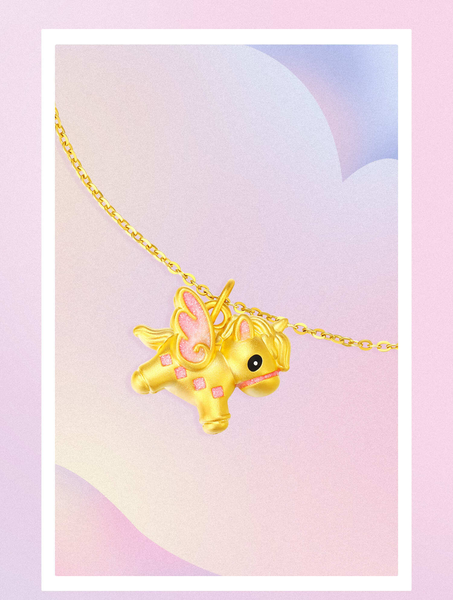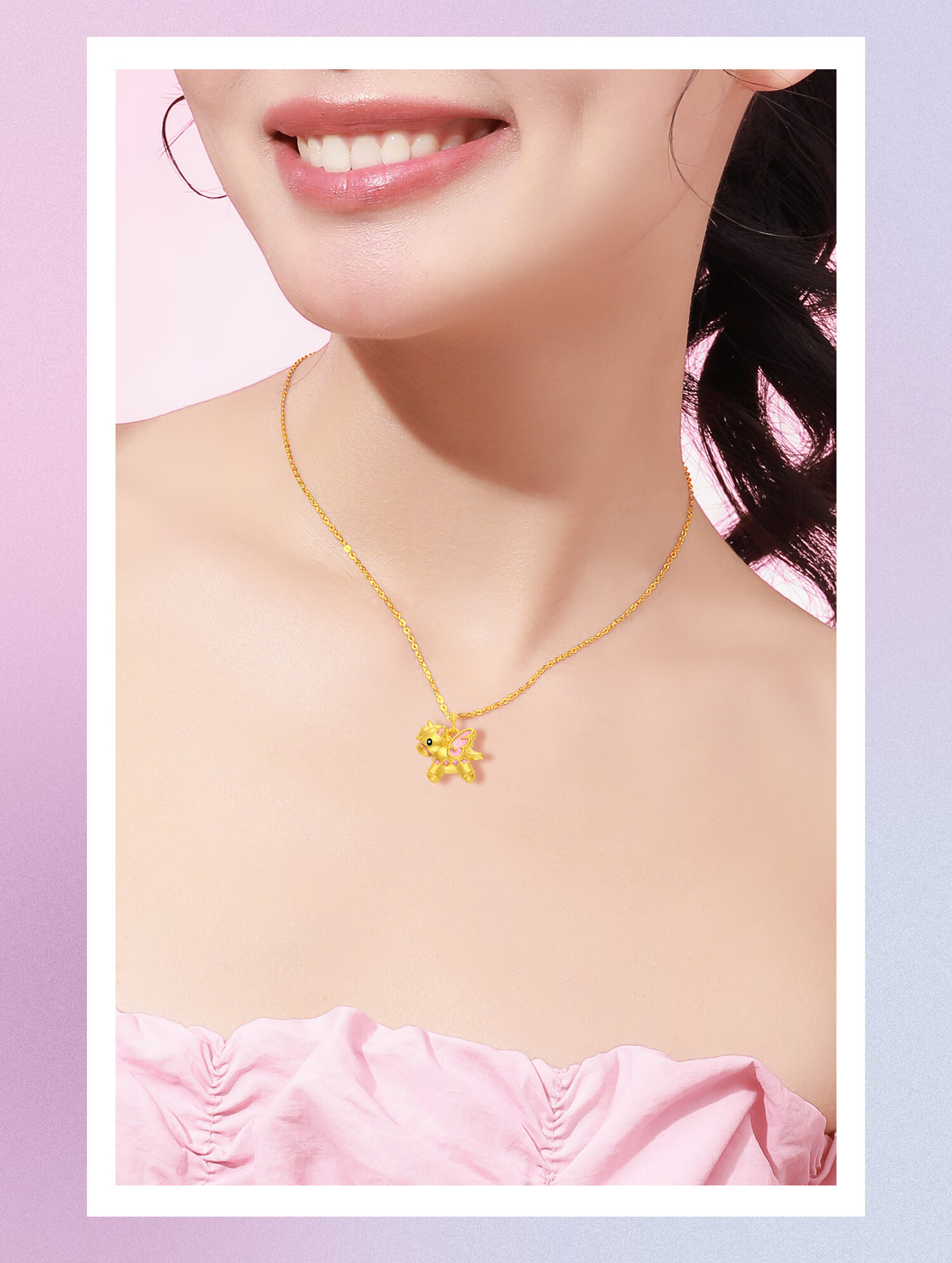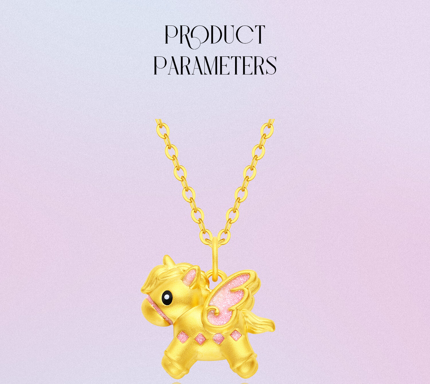 Chinese jewelry year of the horse zodiac year unicorn pony gold necklace women's foot gold pendant birthday gift for girlfriend and wife pendant *gold weight about 0.8g free silver chain