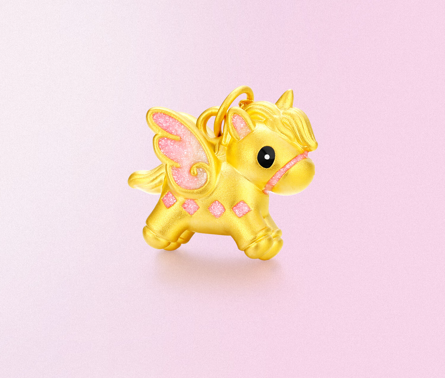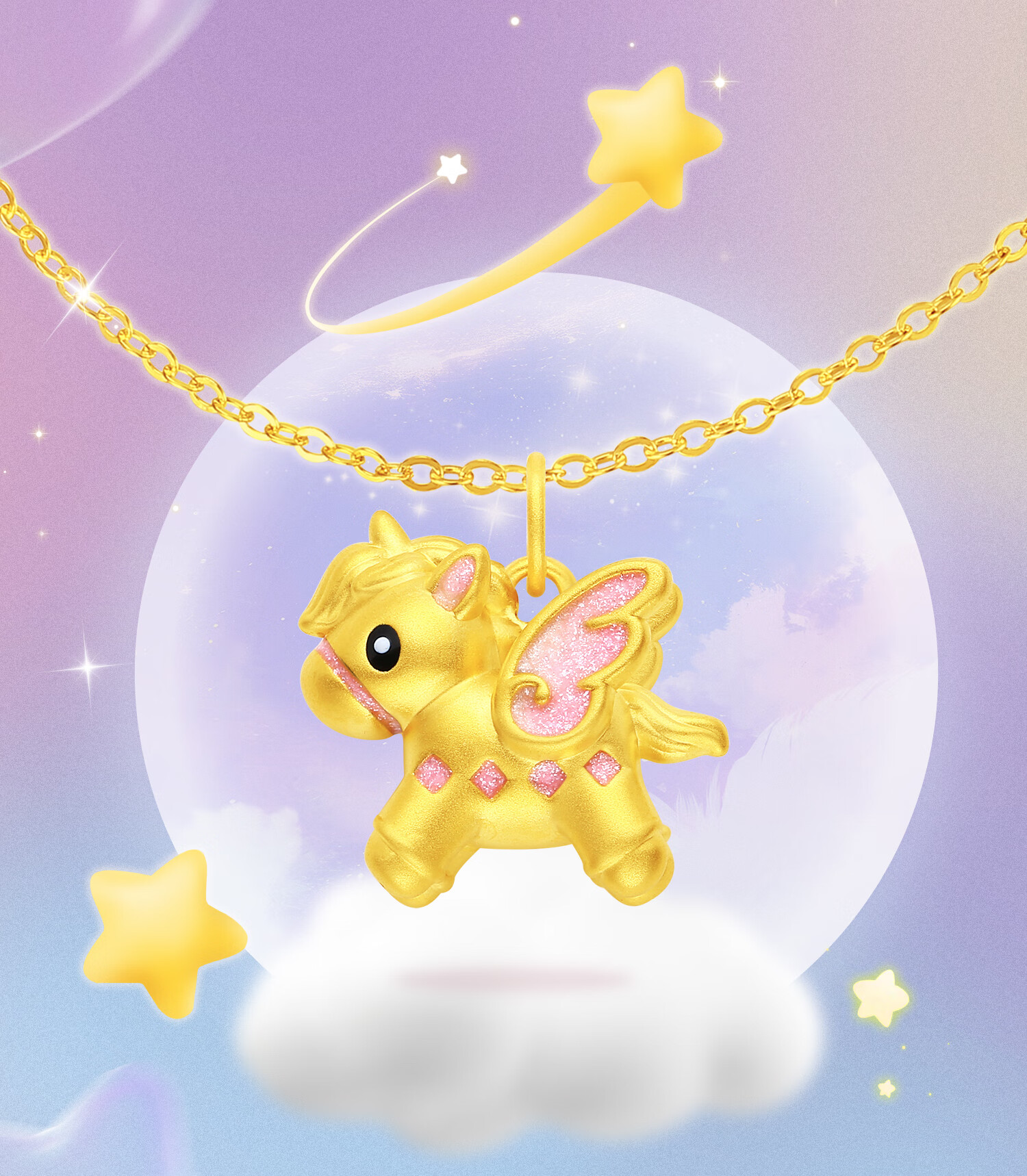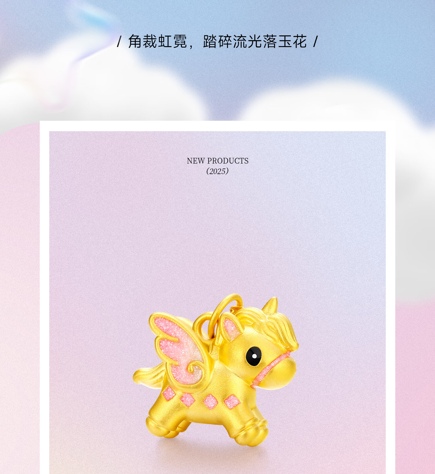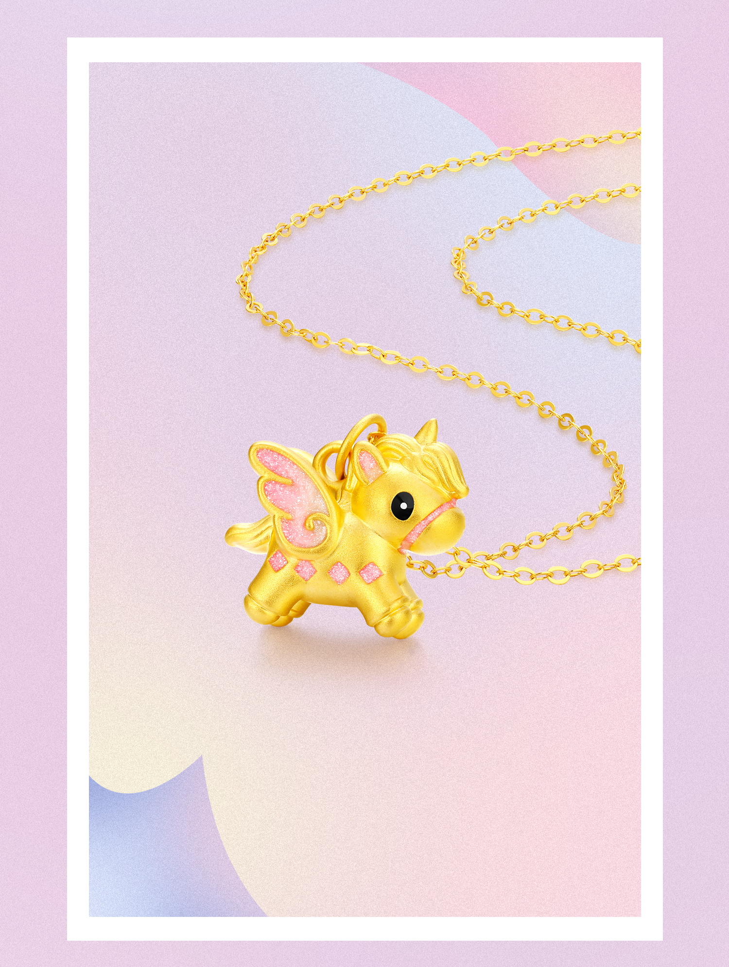 Chinese jewelry year of the horse zodiac year unicorn pony gold necklace women's foot gold pendant birthday gift for girlfriend and wife pendant *gold weight about 0.8g free silver chain