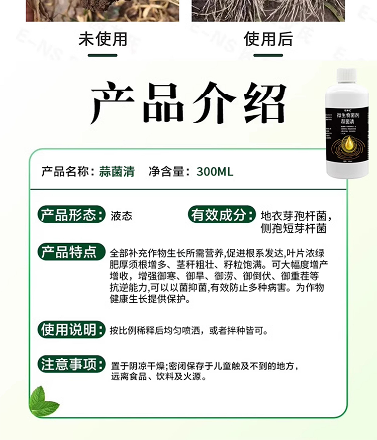 Garlic Bacteria Cleaner Original Liquid for Garlic Planting, Special for Onion, Ginger, and Garlic Ganjianling, which removes yellow leaf root rot and foliar fertilizer. One bottle of garlic bacteria cleaner.
