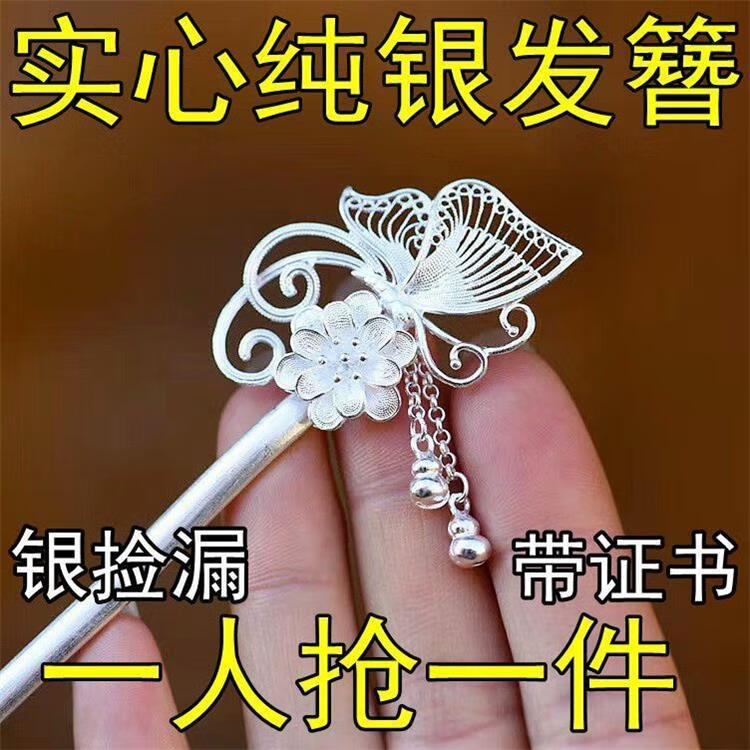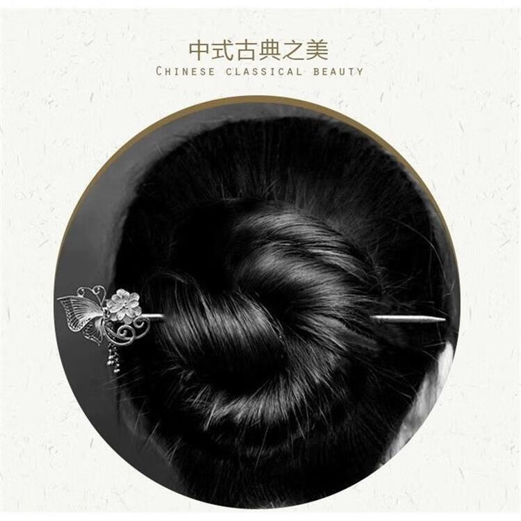 KZD Old Phoenix 999 sterling silver hairpin for women, antique style handmade pure silver carved hairpin hair ornaments for hair, Chinese style*/sterling silver/dielianhua hairpin_8.99g solid loss one