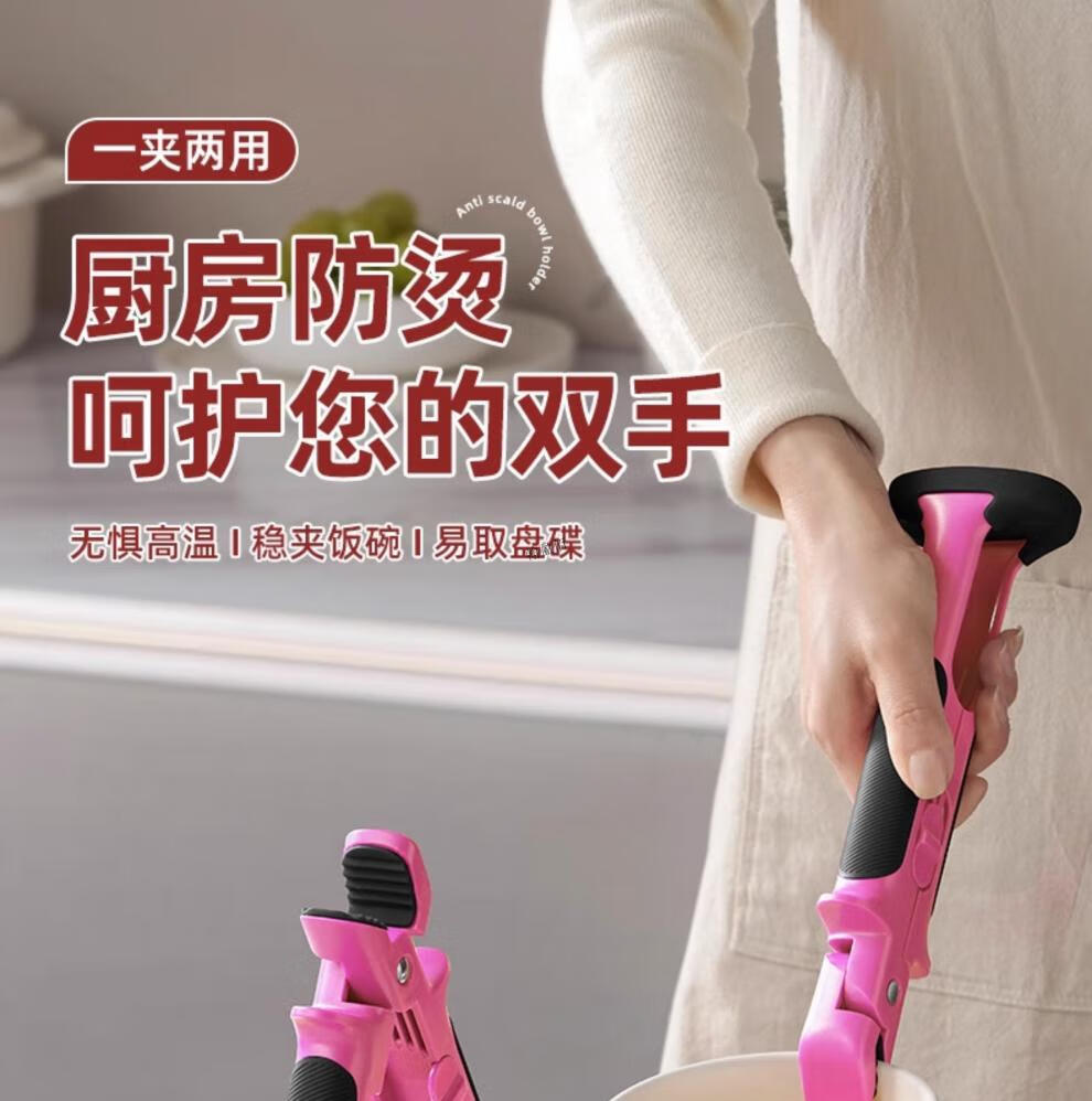 Miaopule Japanese brand imported anti-scalding bowl clamp silicone anti-scalding anti-slip dopamine two-in-one bowl and plate clamp bowl clamp two-in-one bowl and plate clamp (pink black) 1 piece