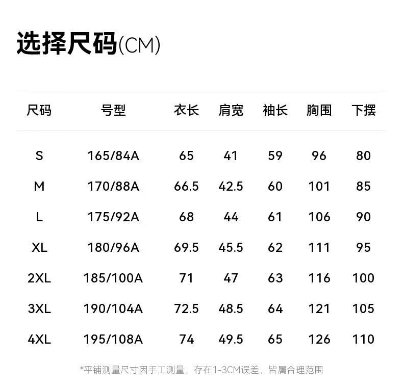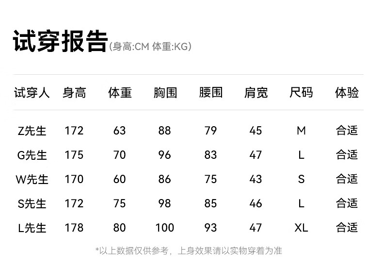 China (cm) 160-165/84-86 165-170 / 88-90 167-172 / 92-96 168-173 / 98-102 170-176 / 106-110