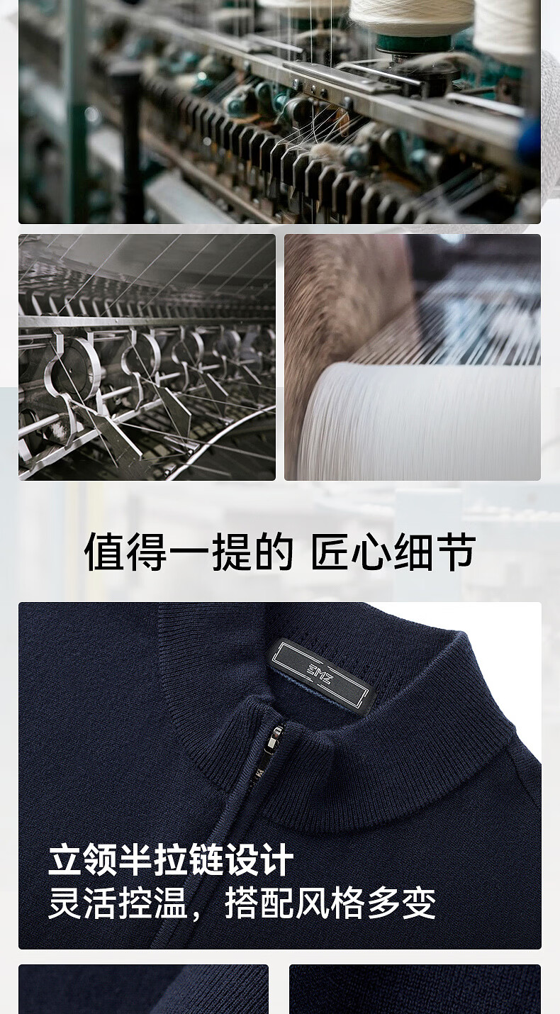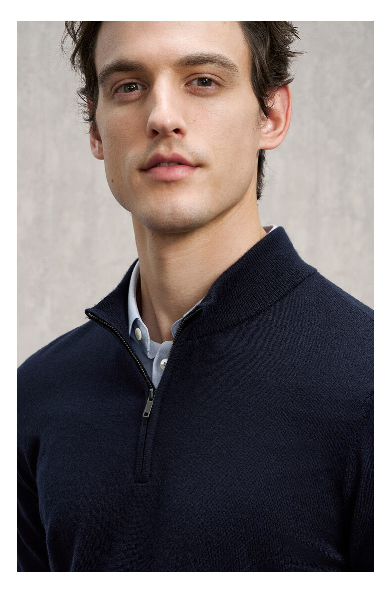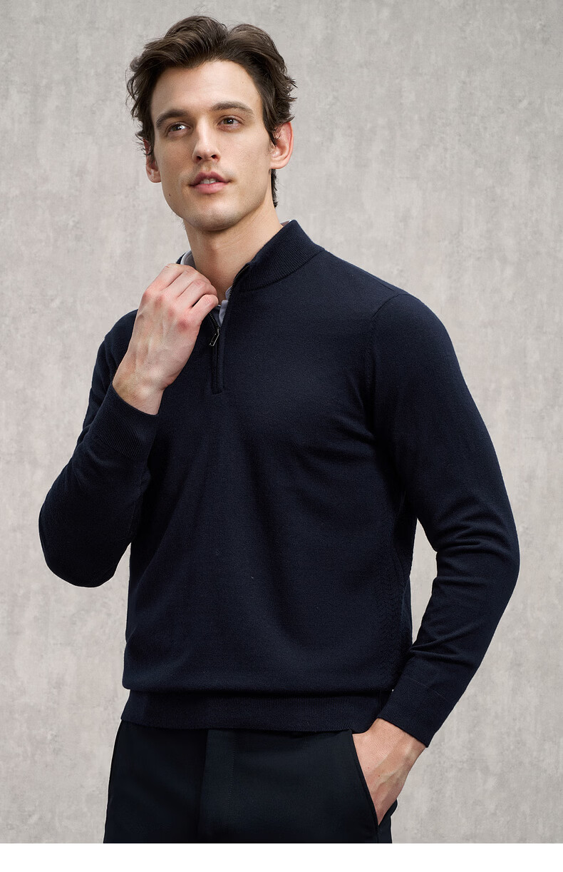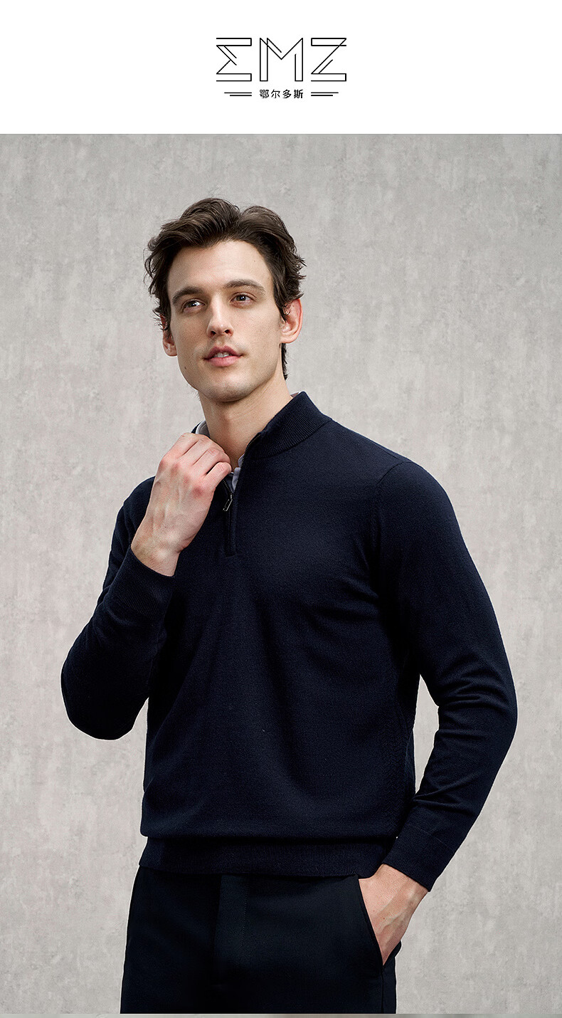 EMZ Ordos 100% mercerized Australian wool 25 autumn and winter stand-up collar half-zip antibacterial warm sweater for men Navy XL Recommended height 175-180/weight 150-160Jin Jin is equal to 0.5 kg
