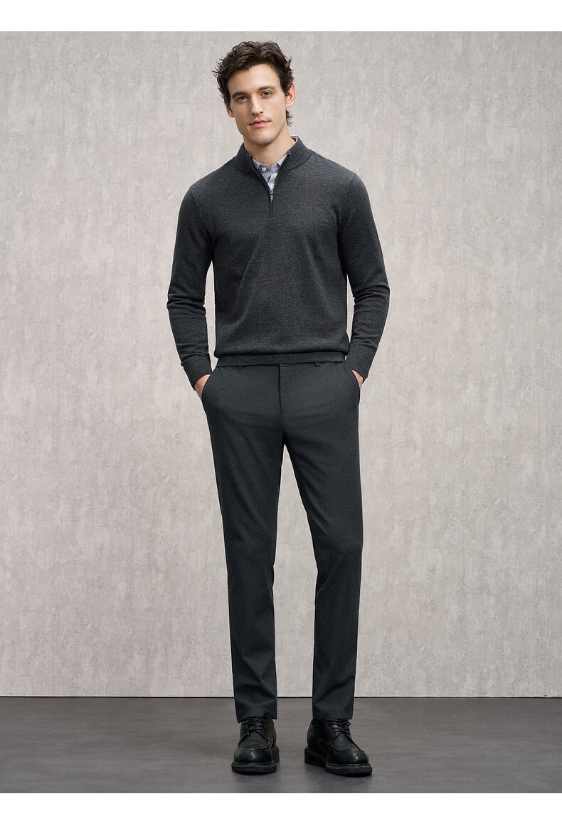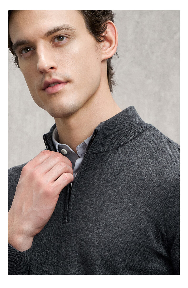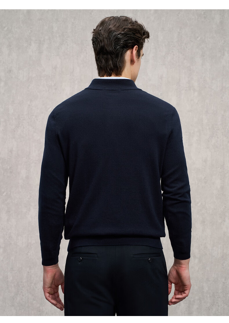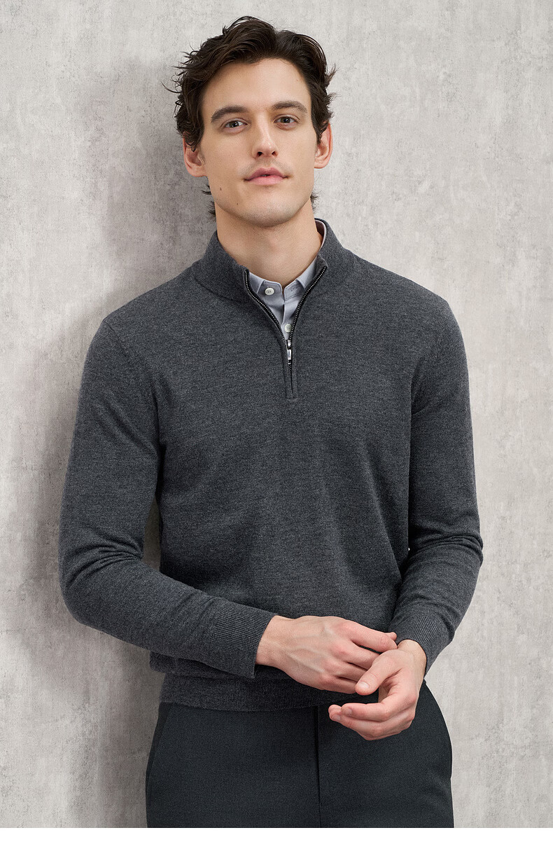 EMZ Ordos 100% mercerized Australian wool 25 autumn and winter stand-up collar half-zip antibacterial warm sweater for men Navy XL Recommended height 175-180/weight 150-160Jin Jin is equal to 0.5 kg