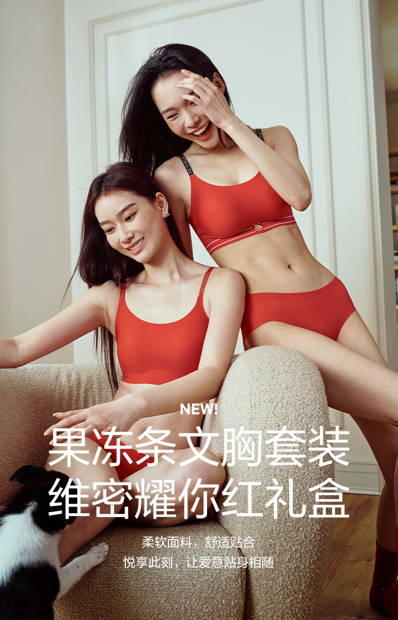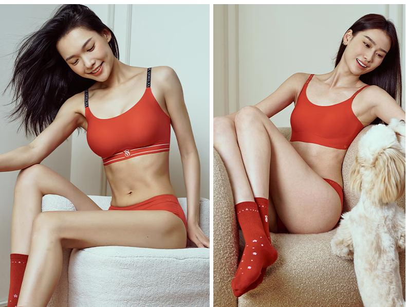Victoria's Secret Jelly Strip Double Size Wireless Bra and Panties Set Victoria's Secret Celebrates Your Year of the Horse Red Box Year of the Horse Gift Red-Classic XS /M