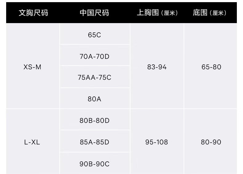 China (cm) 160-165/84-86 165-170 / 88-90 167-172 / 92-96 168-173 / 98-102 170-176 / 106-110