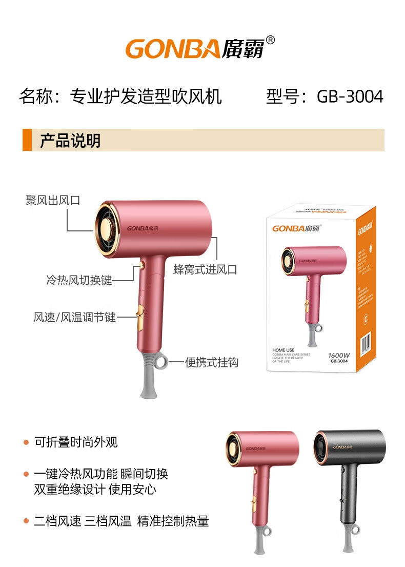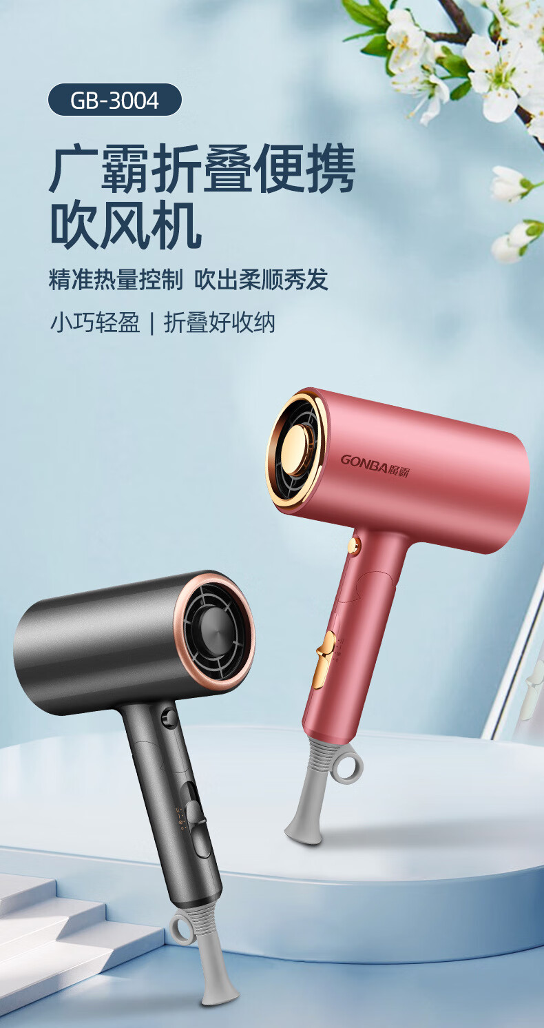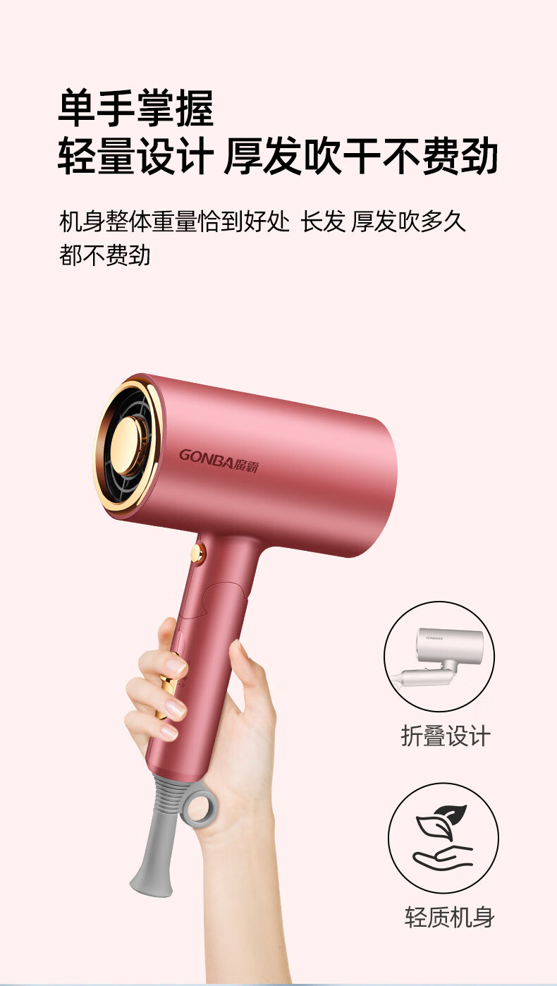 GUANGBA 2025 new technology National standard certified hair dryer household negative ion hair care silent quick-drying high wind low power hair dryer for dormitory students constant temperature does not harm hair quality Champagne powder New national standard safer 1600W Naked model 2M pure copper power cord