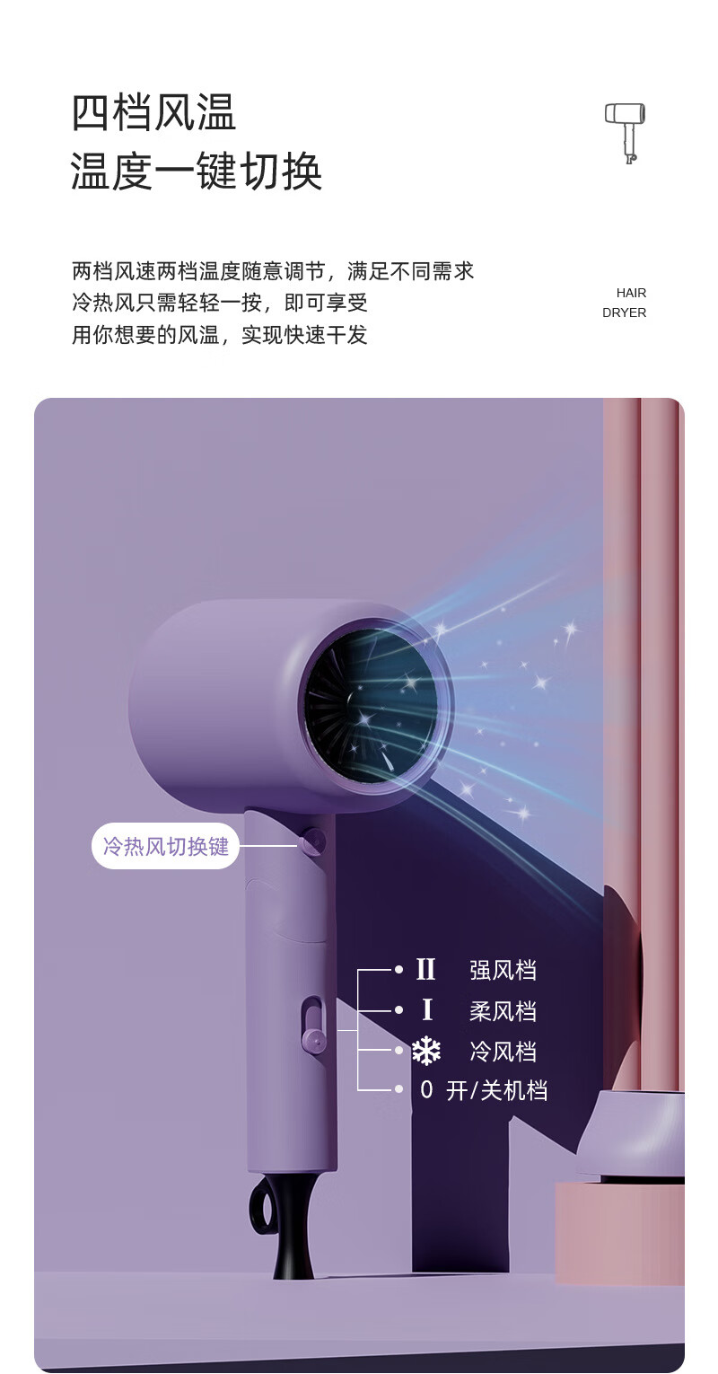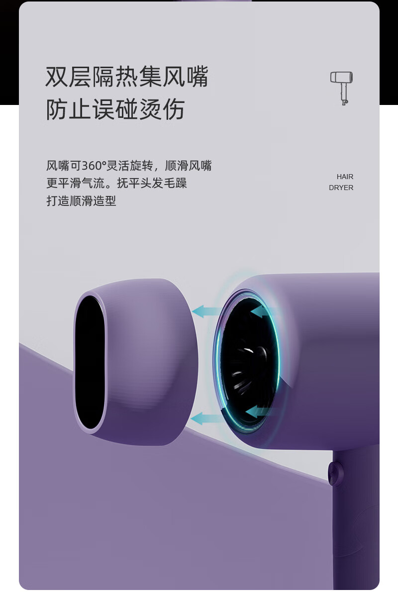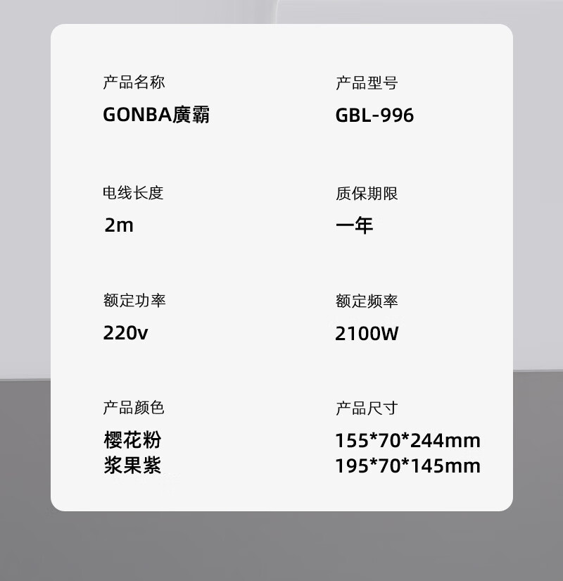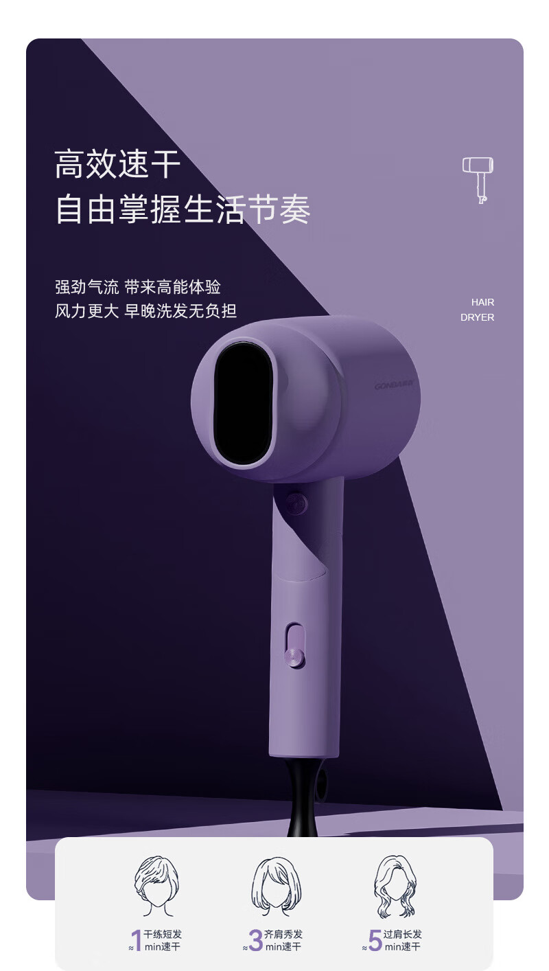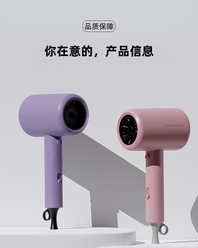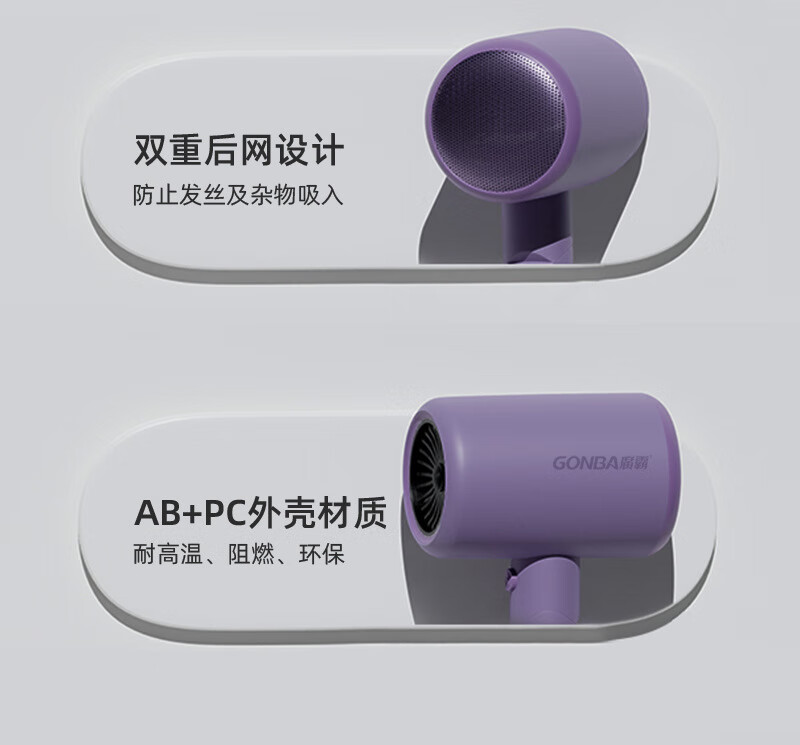 GUANGBA New National Standard Plasma Hair Dryer Hair Care Silent Quick-drying Anti-static Smooth Hair Dryer Hairstylist Special Barber Shop Home Quick-drying Negative Ion Hair Care Hair Dryer Lavender Purple New National Standard Safer 2000W + Styling Nozzle 1.8M Pure Copper Power Cord