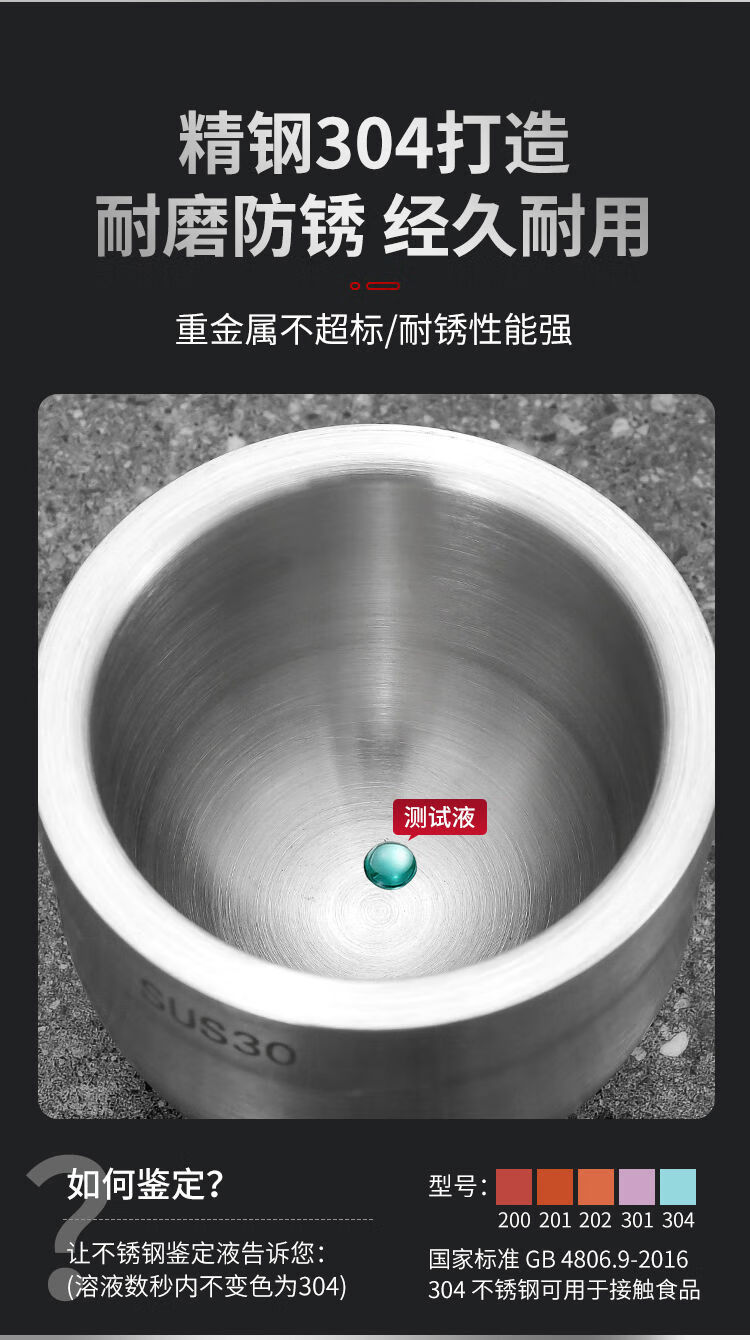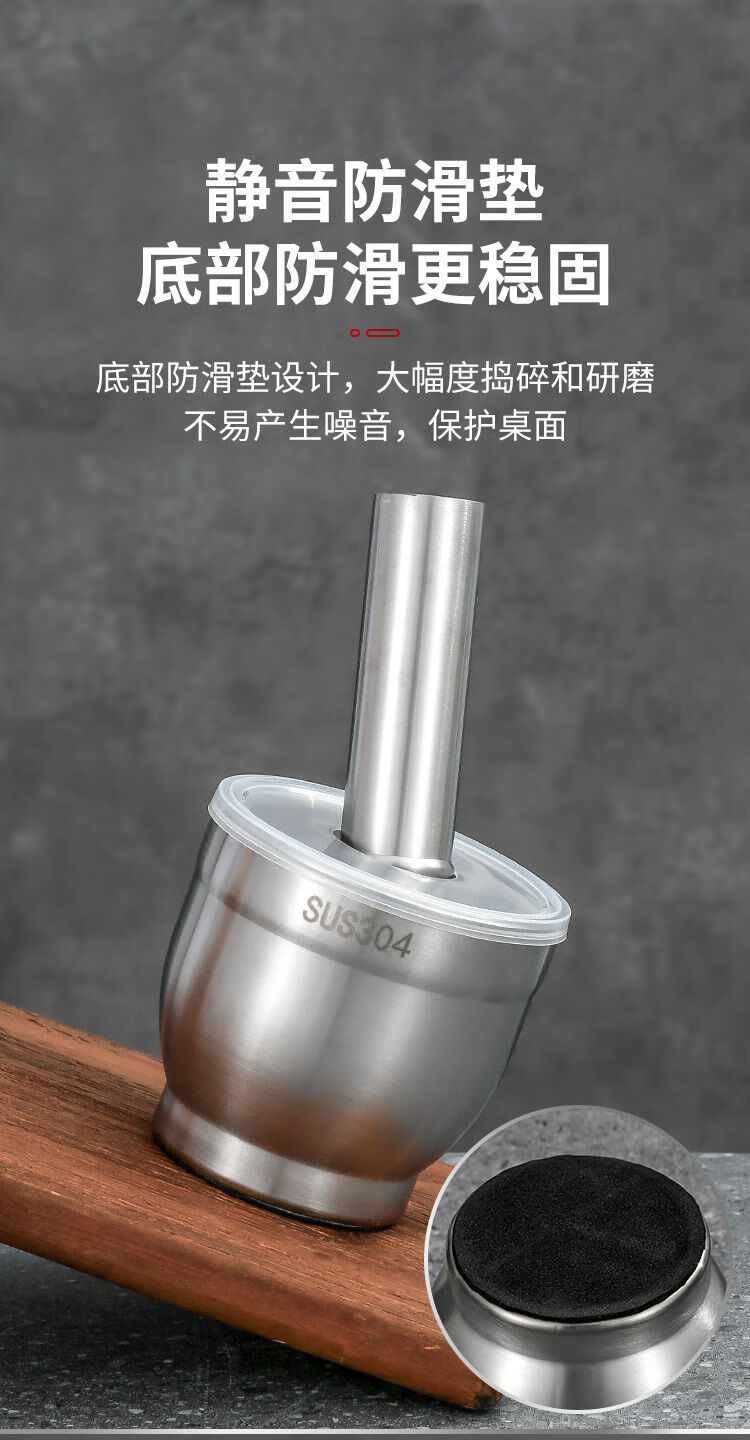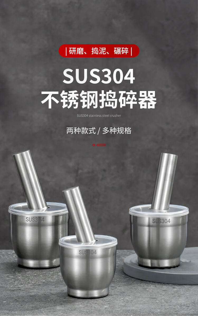 316 stainless steel masher, solid garlic masher, household old-fashioned grinder, medicine jar, manual garlic masher, 316 grade stainless steel extra large drum type