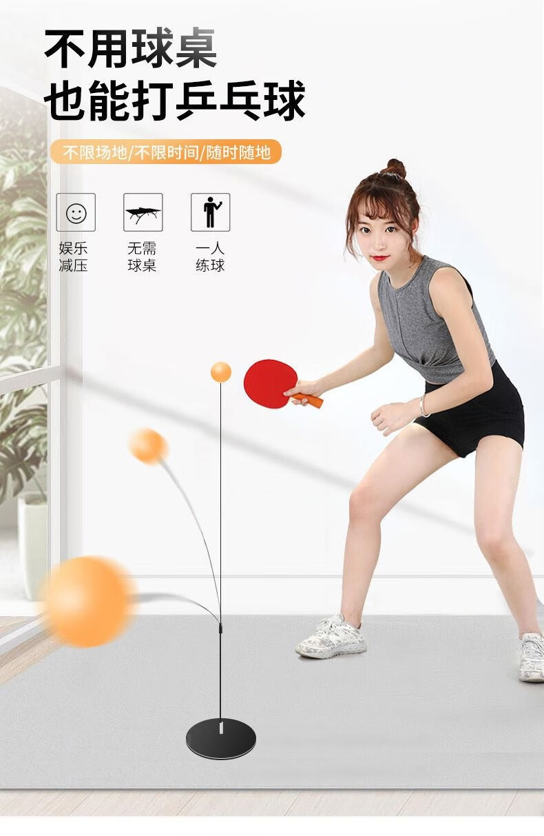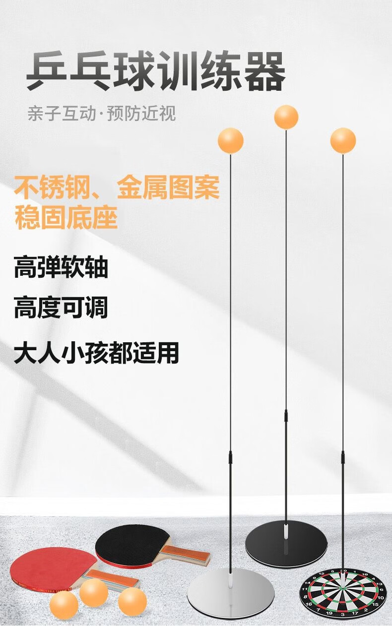 Table tennis fixed practice ball training self-training artifact single player with string rebound table tennis toy to improve eyesight practice family model metal base + wooden racket 4 balls 2 poles