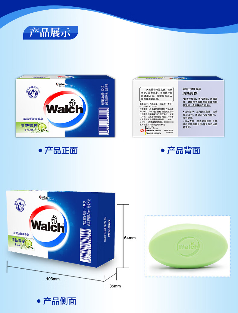 Walch hand-washing and moisturizing soap, gentle cleansing, caring and healthy bathing and lingering soap 125g/piece, silky and soft skin 1 piece