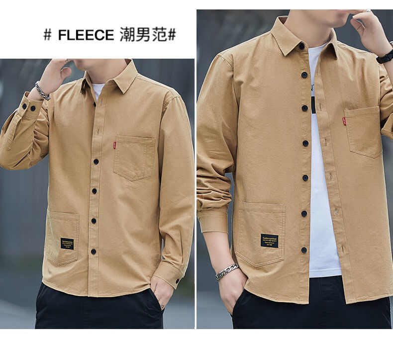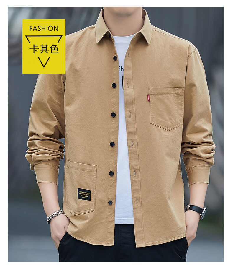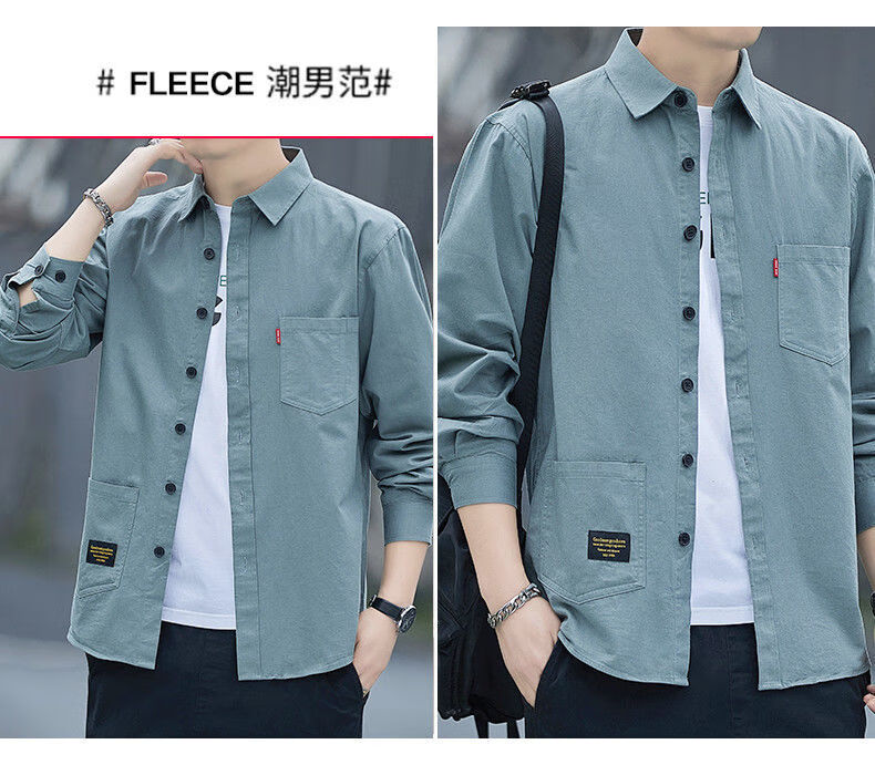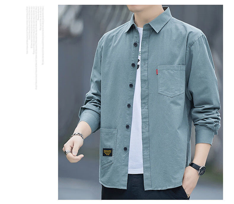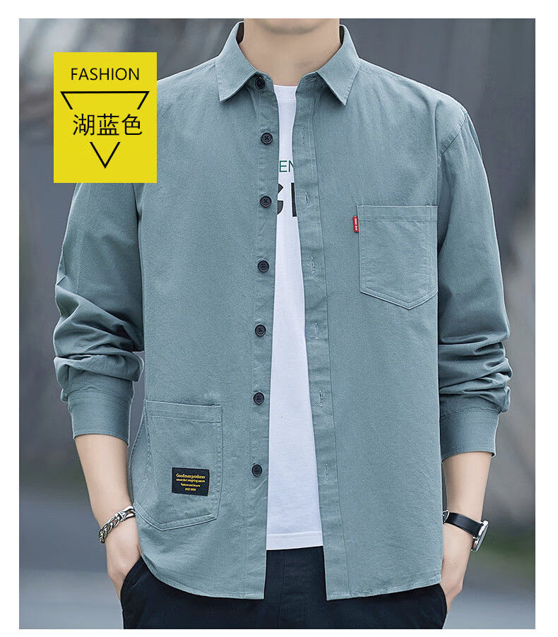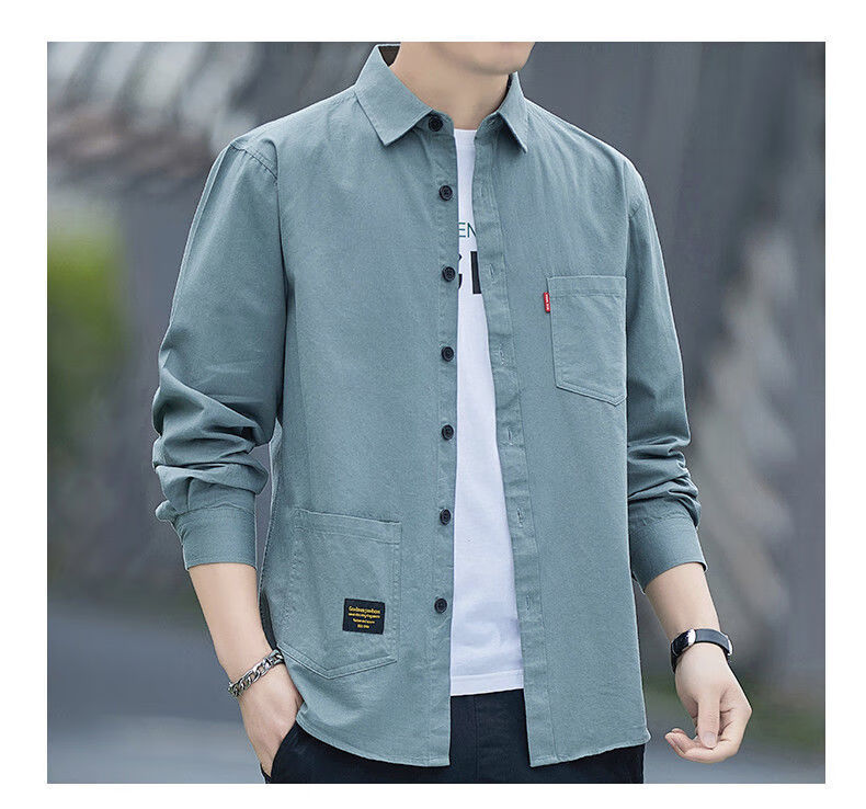 Large size long-sleeved shirt for men in autumn and winter, trendy and versatile work shirt, men's loose casual shirt, jacket, men's trendy factory direct sales clearance pickup C0501 Green 2XL Recommended weight 130-140 Jin Jin equals 0.5 kg Can be worn