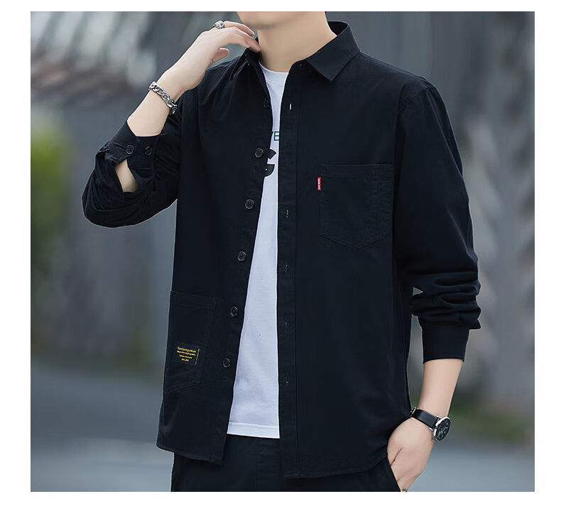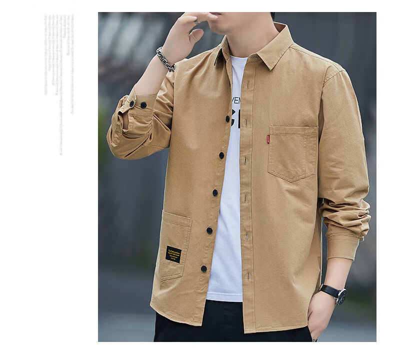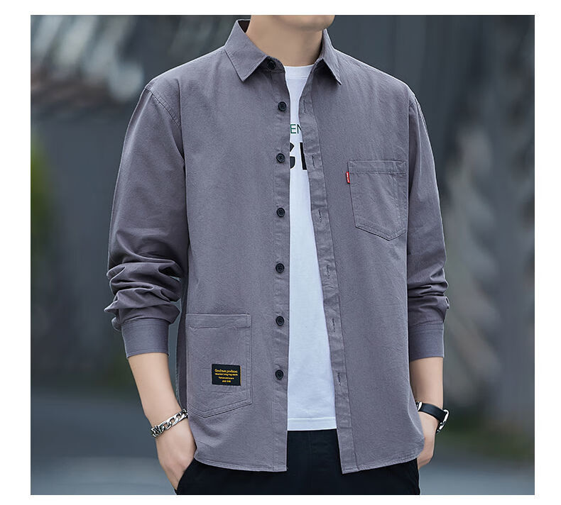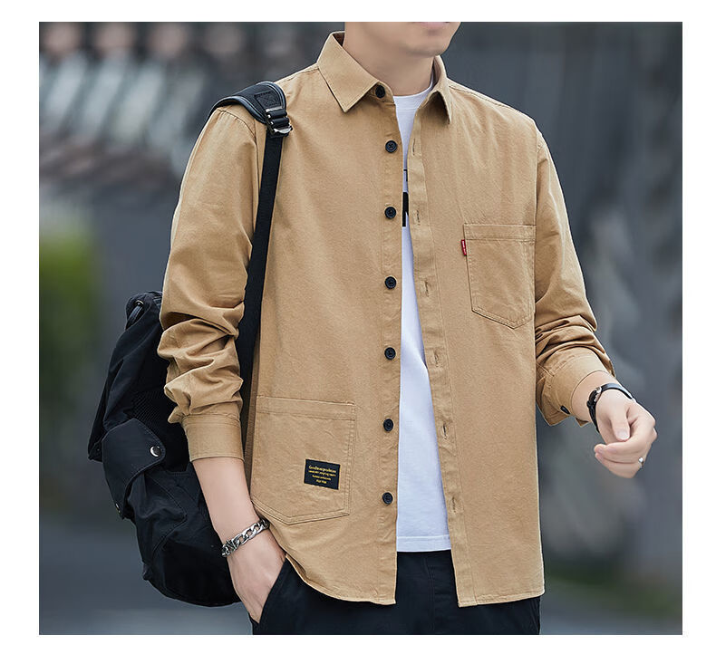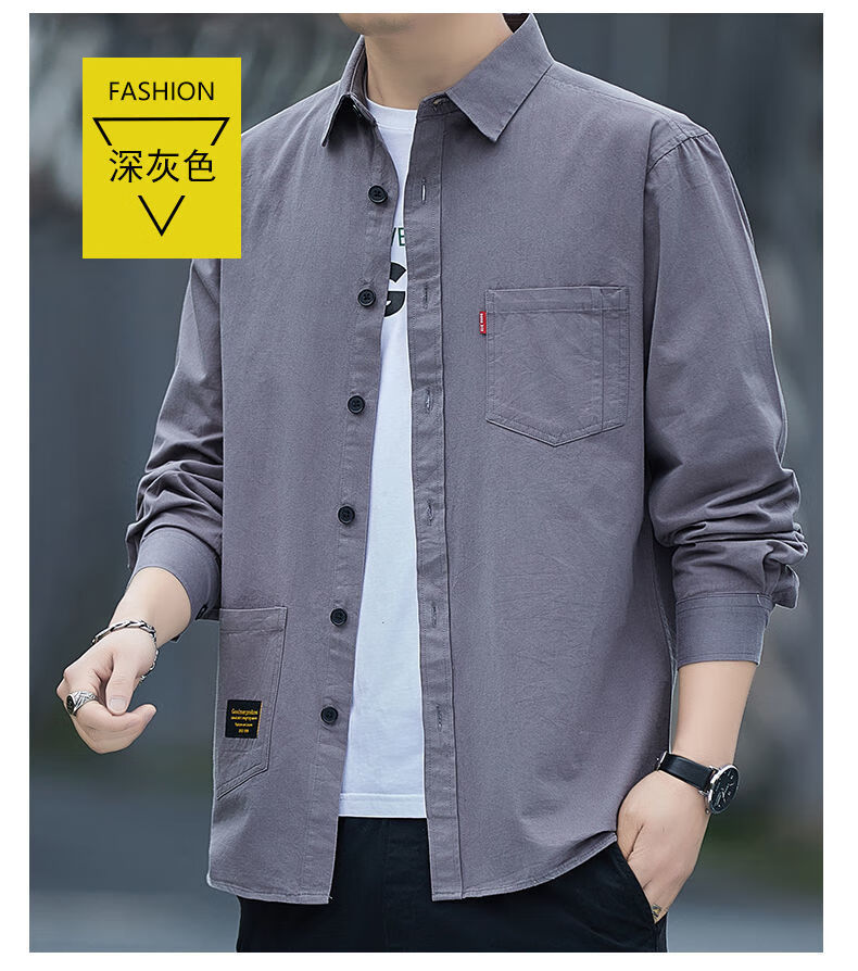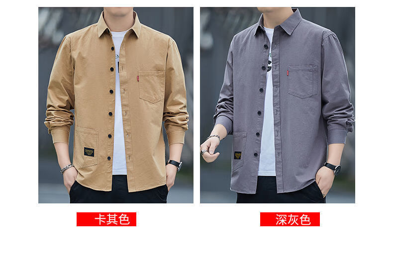 Large size long-sleeved shirt for men in autumn and winter, trendy and versatile work shirt, men's loose casual shirt, jacket, men's trendy factory direct sales clearance pickup C0501 Green 2XL Recommended weight 130-140 Jin Jin equals 0.5 kg Can be worn
