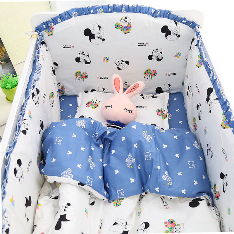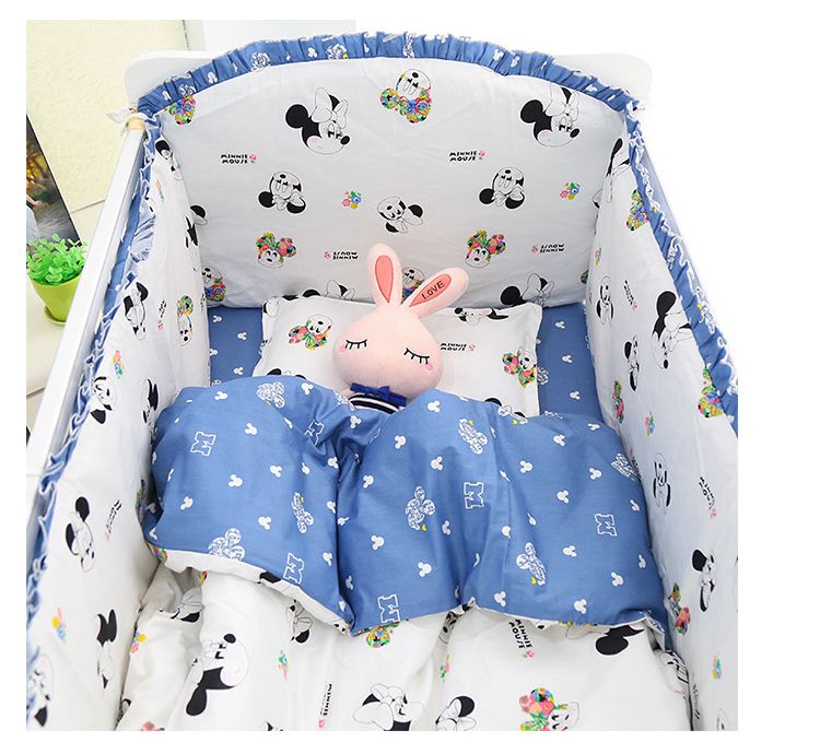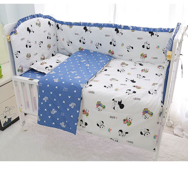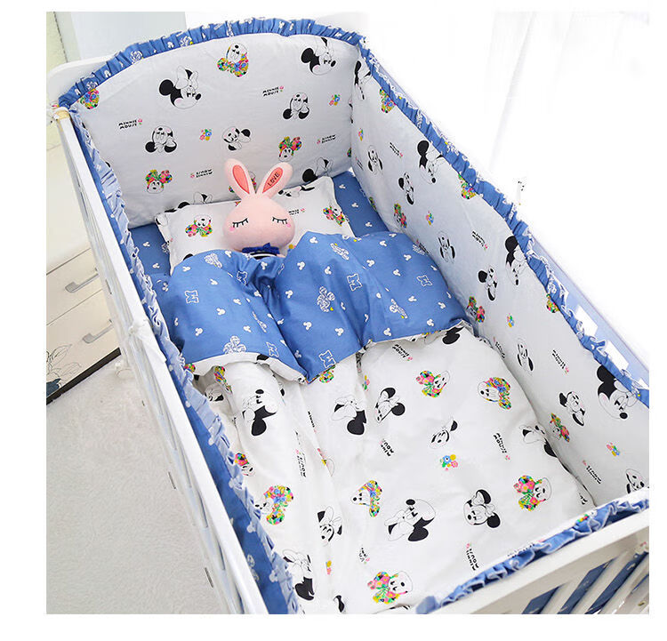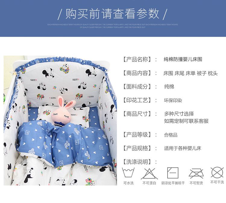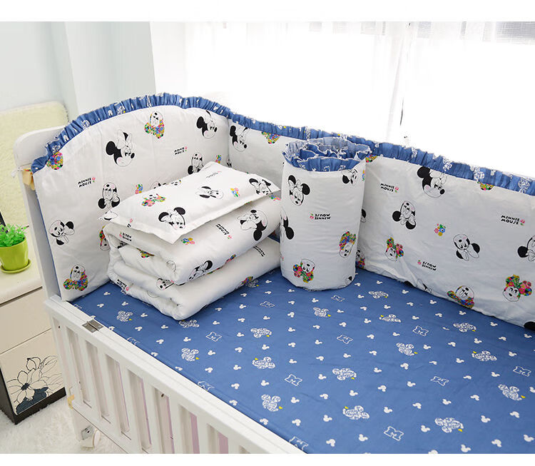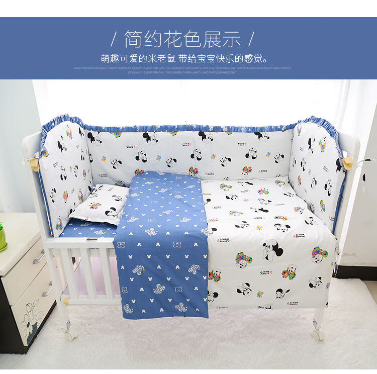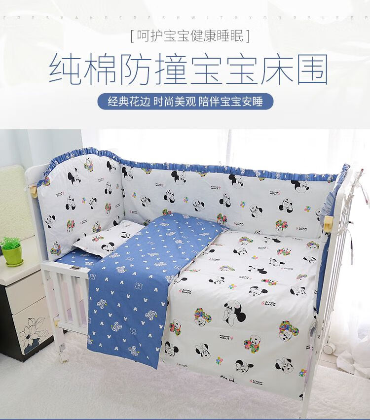 Spliced children's bedside soft-packed pure cotton anti-collision cloth baby baby bedding set of three, four and five pieces, removable and washable, three-piece bedside + bed sheet (Mickey Mouse) 90*50cm