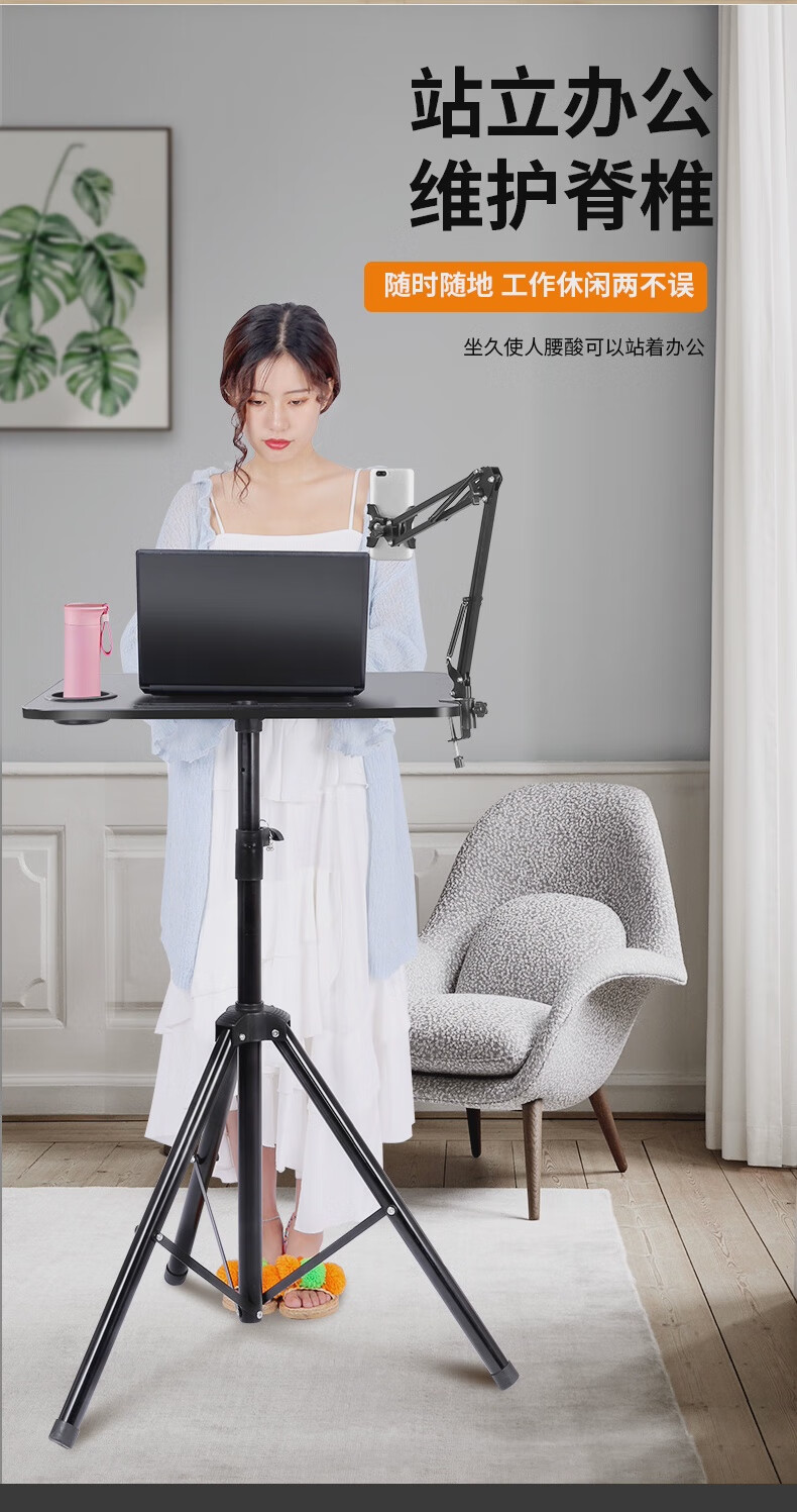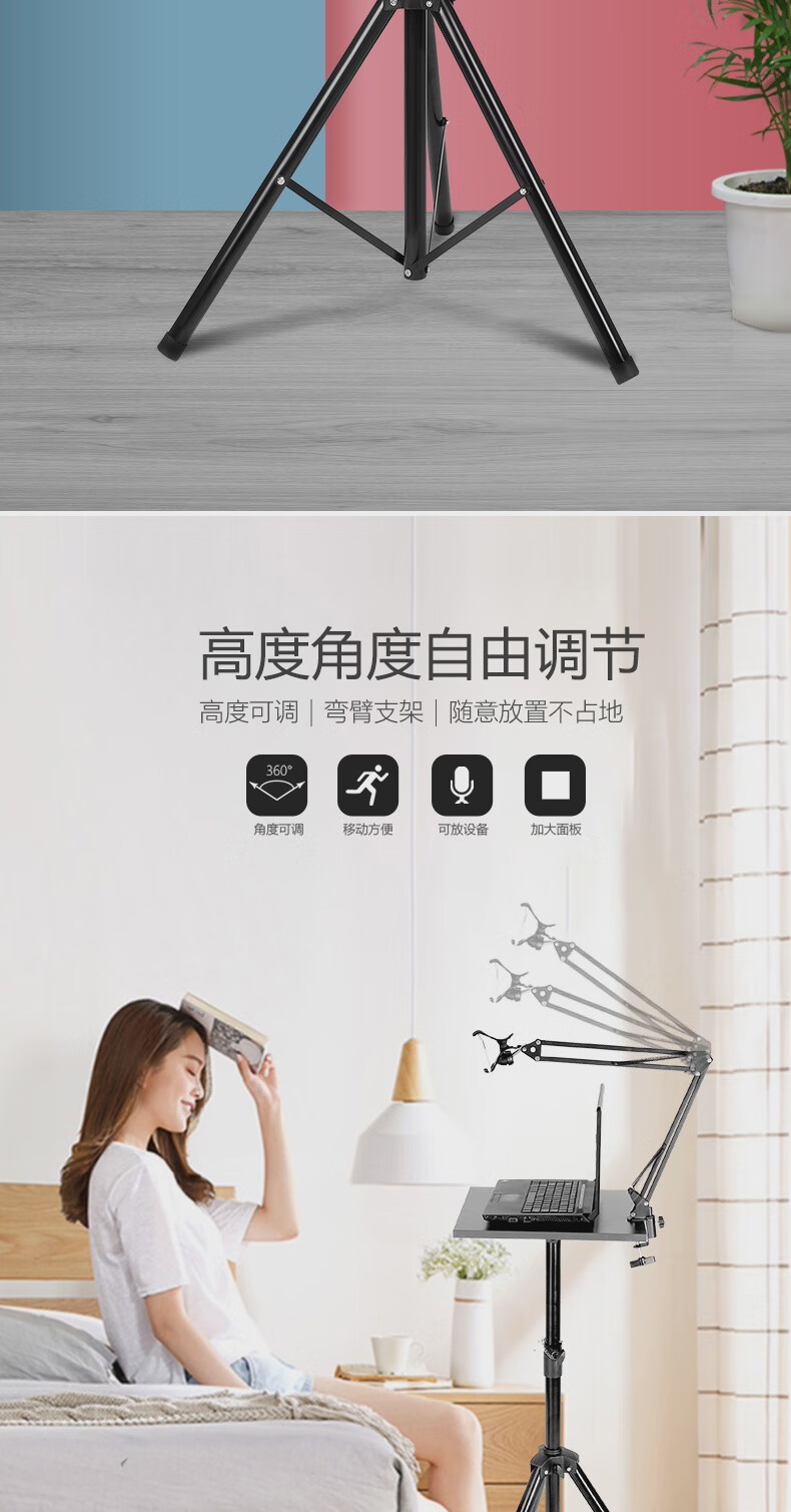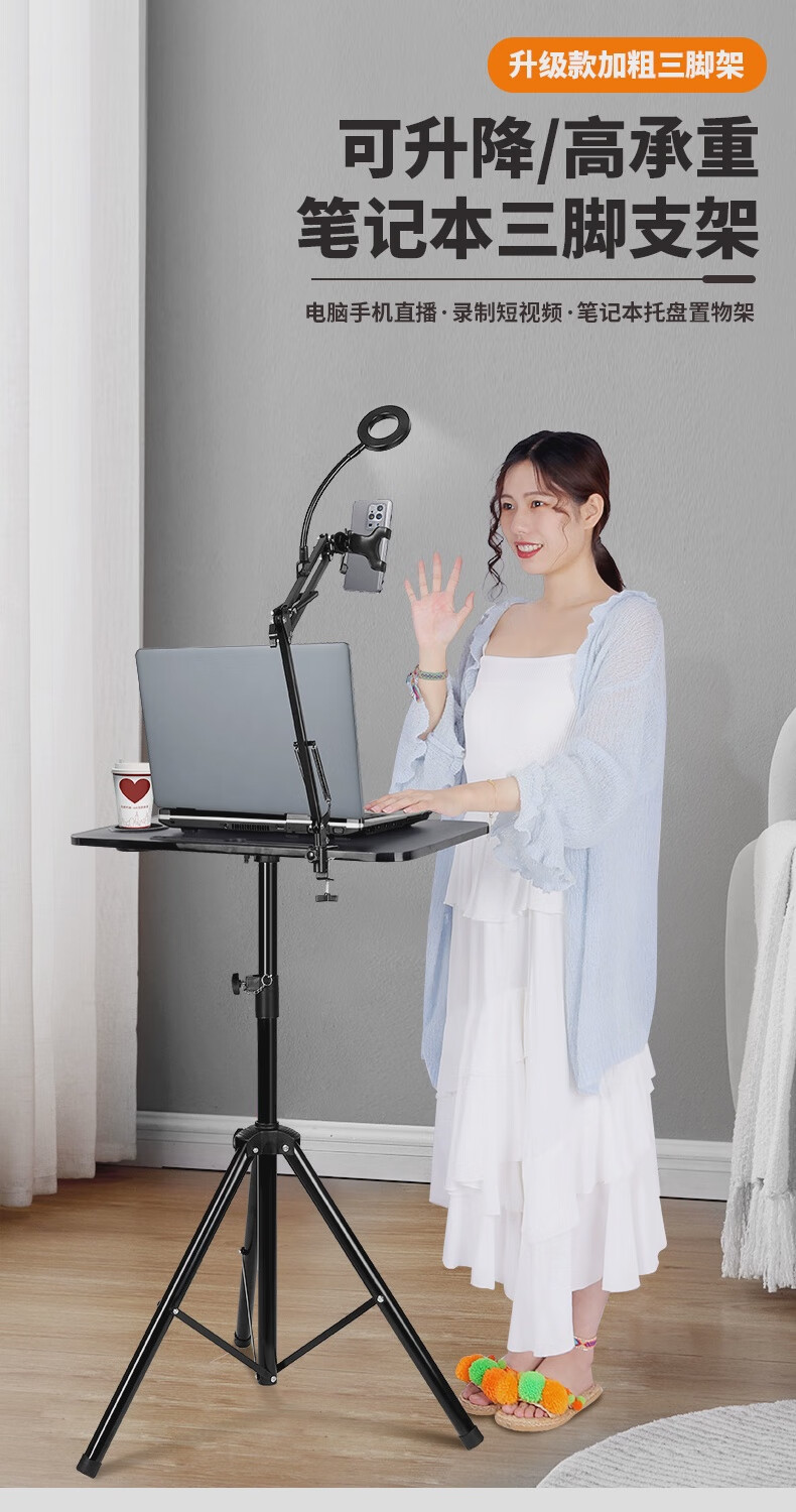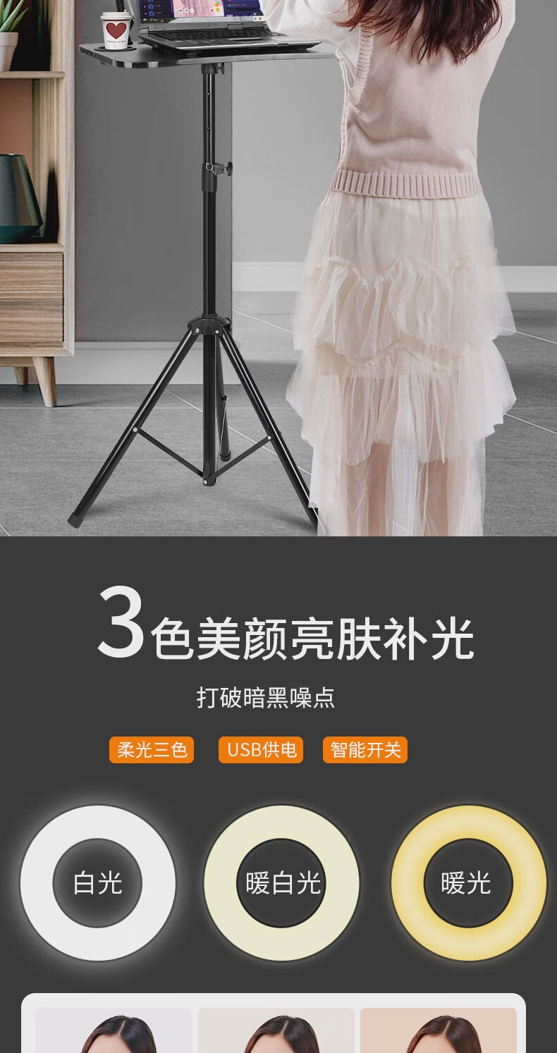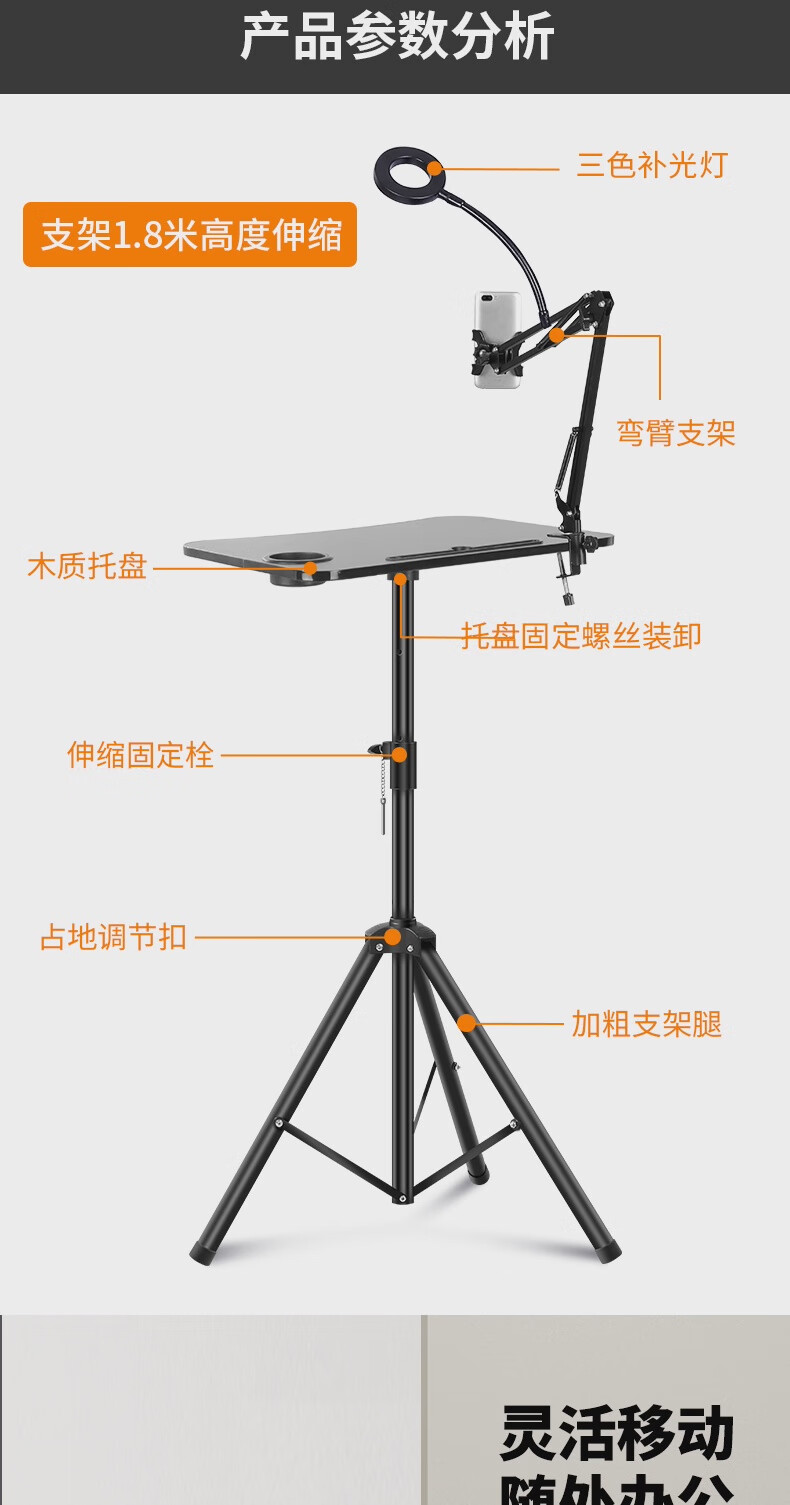 Duobolai mobile phone live broadcast bracket with fill light tray type liftable clip fast hand card slot cup holder large tray + mobile phone cantilever-4