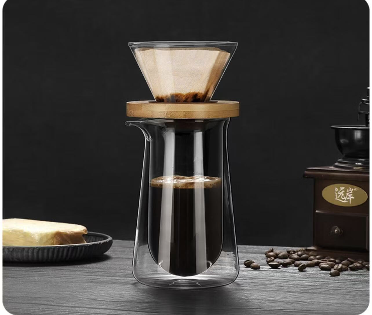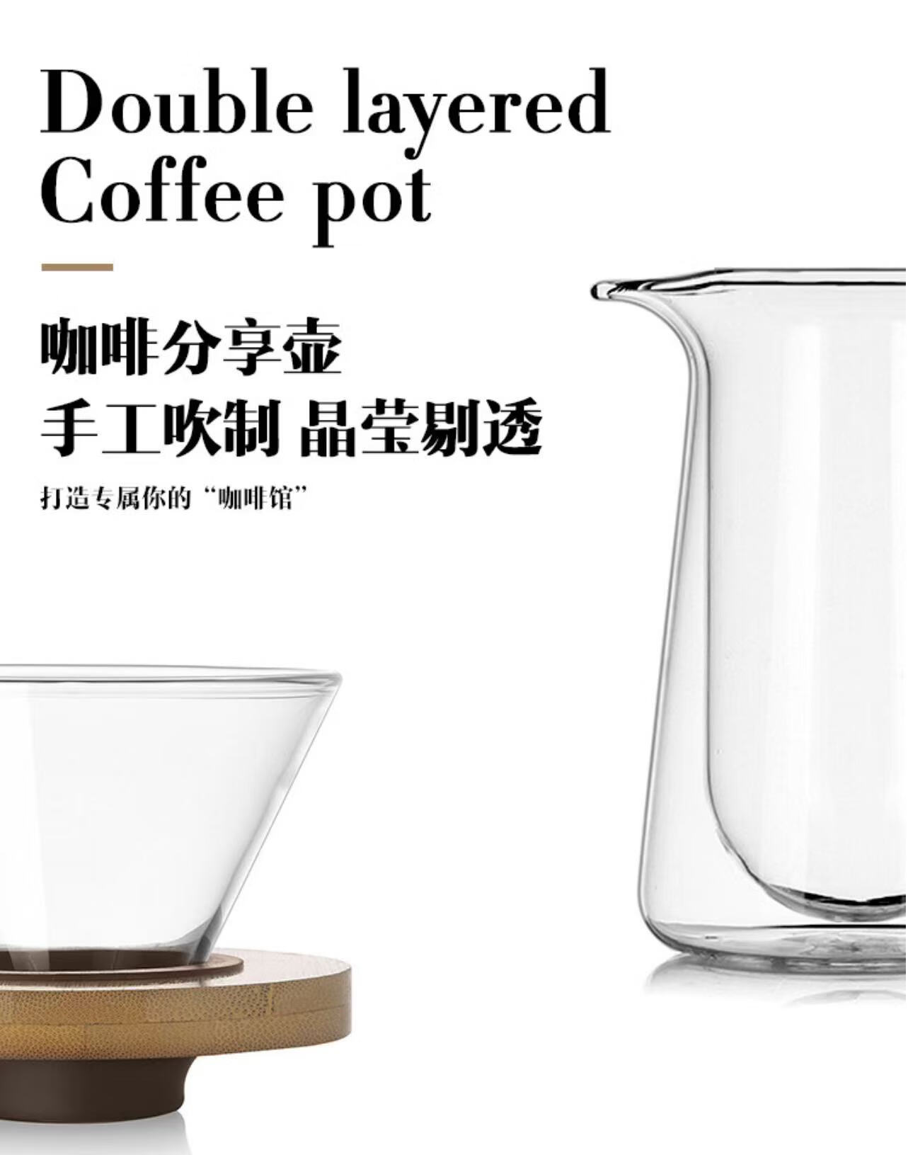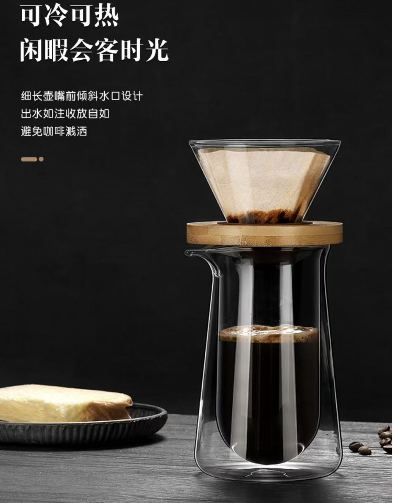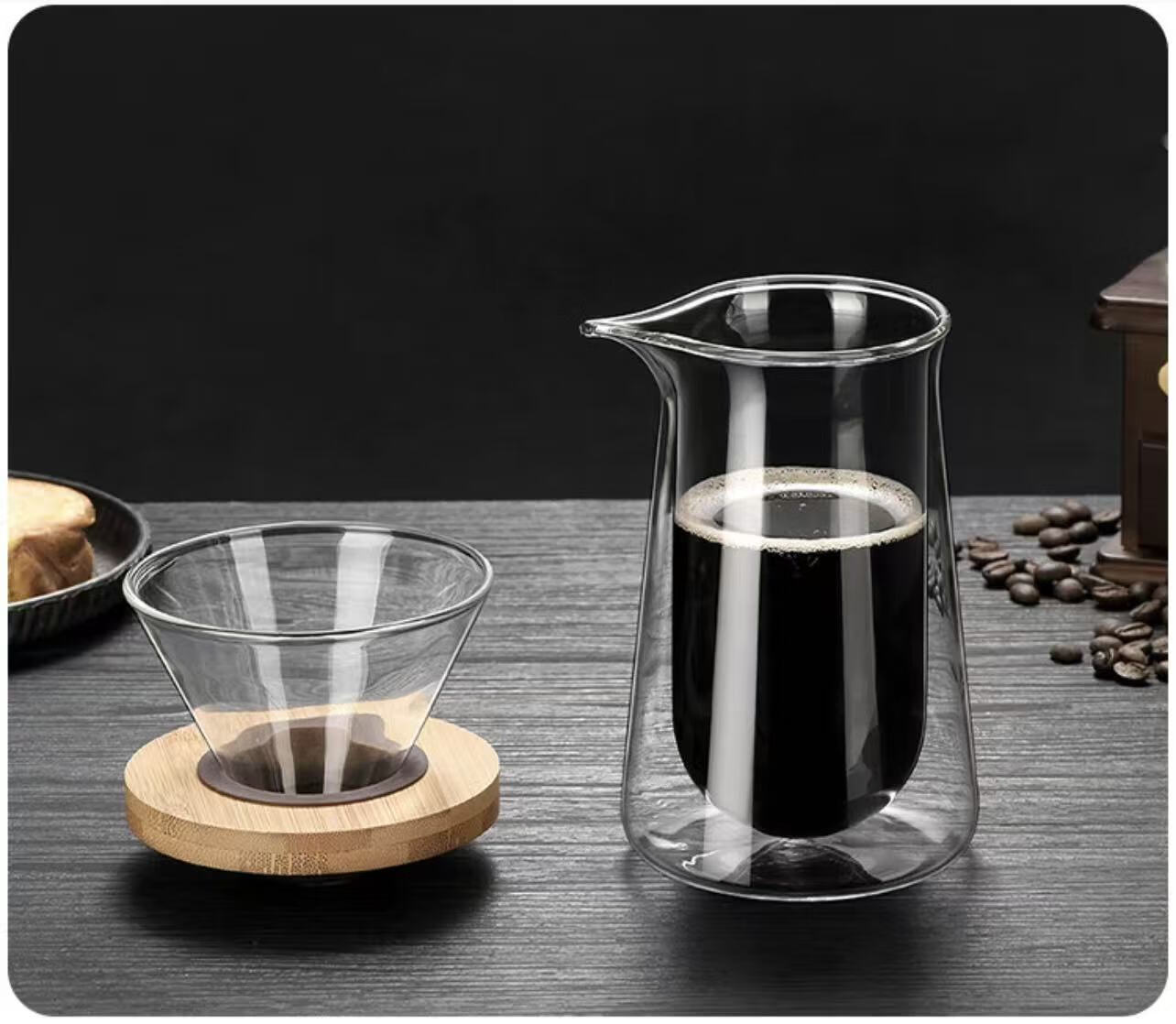 Double-layer glass hand-brewed coffee pot, home sharing pot set, high borosilicate filter cup, cold brew filter coffee set, hand-brewed coffee pot set