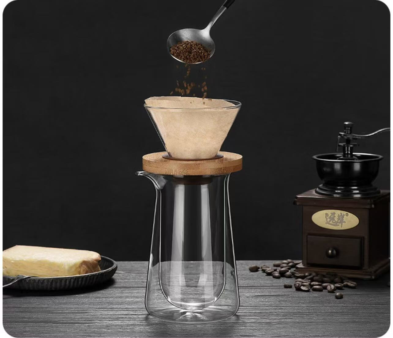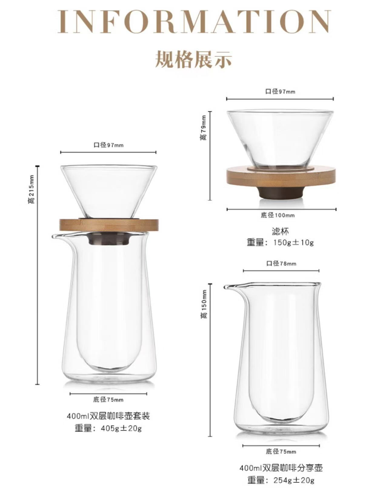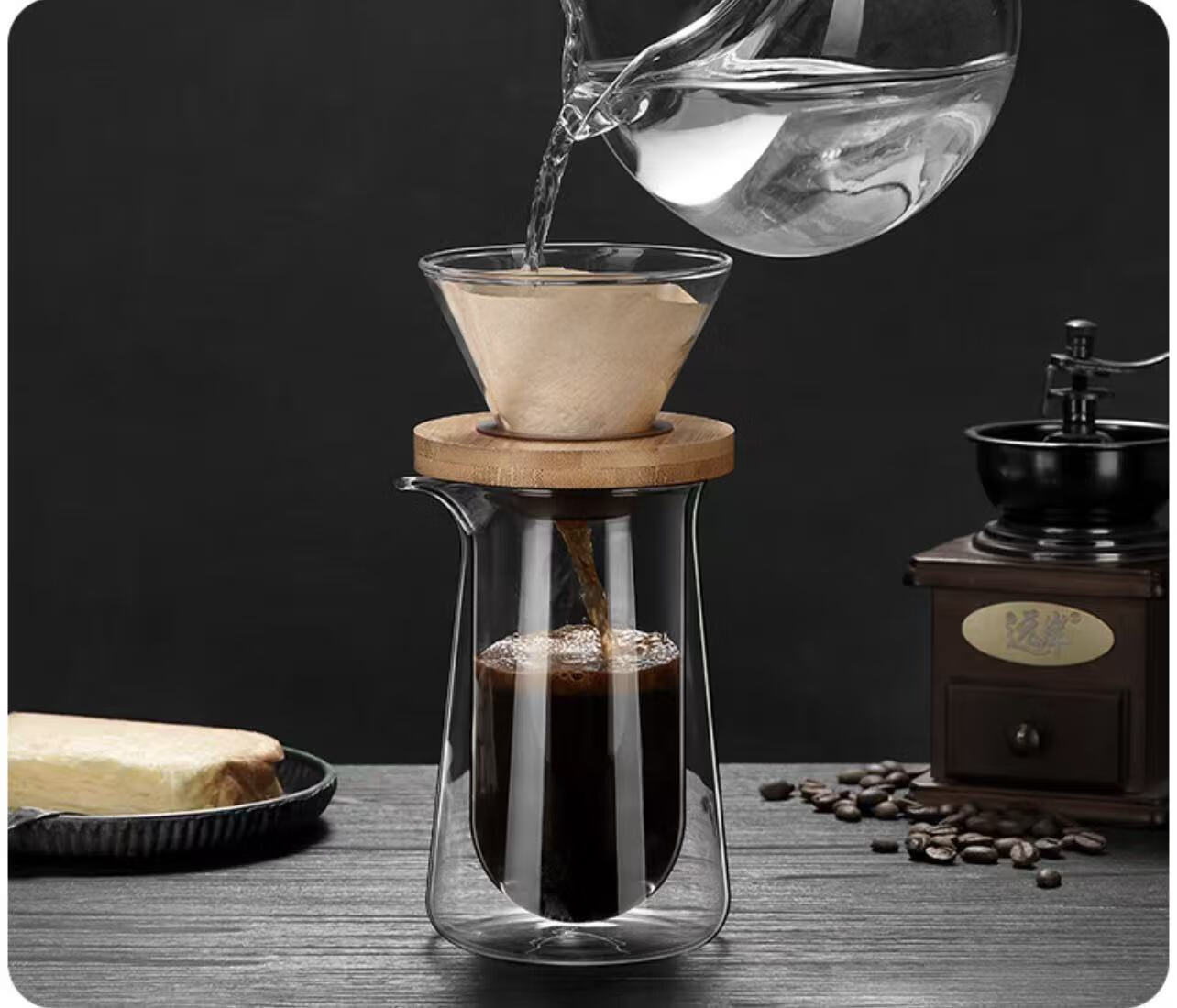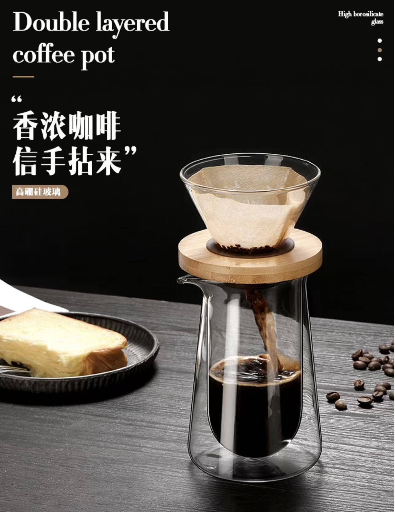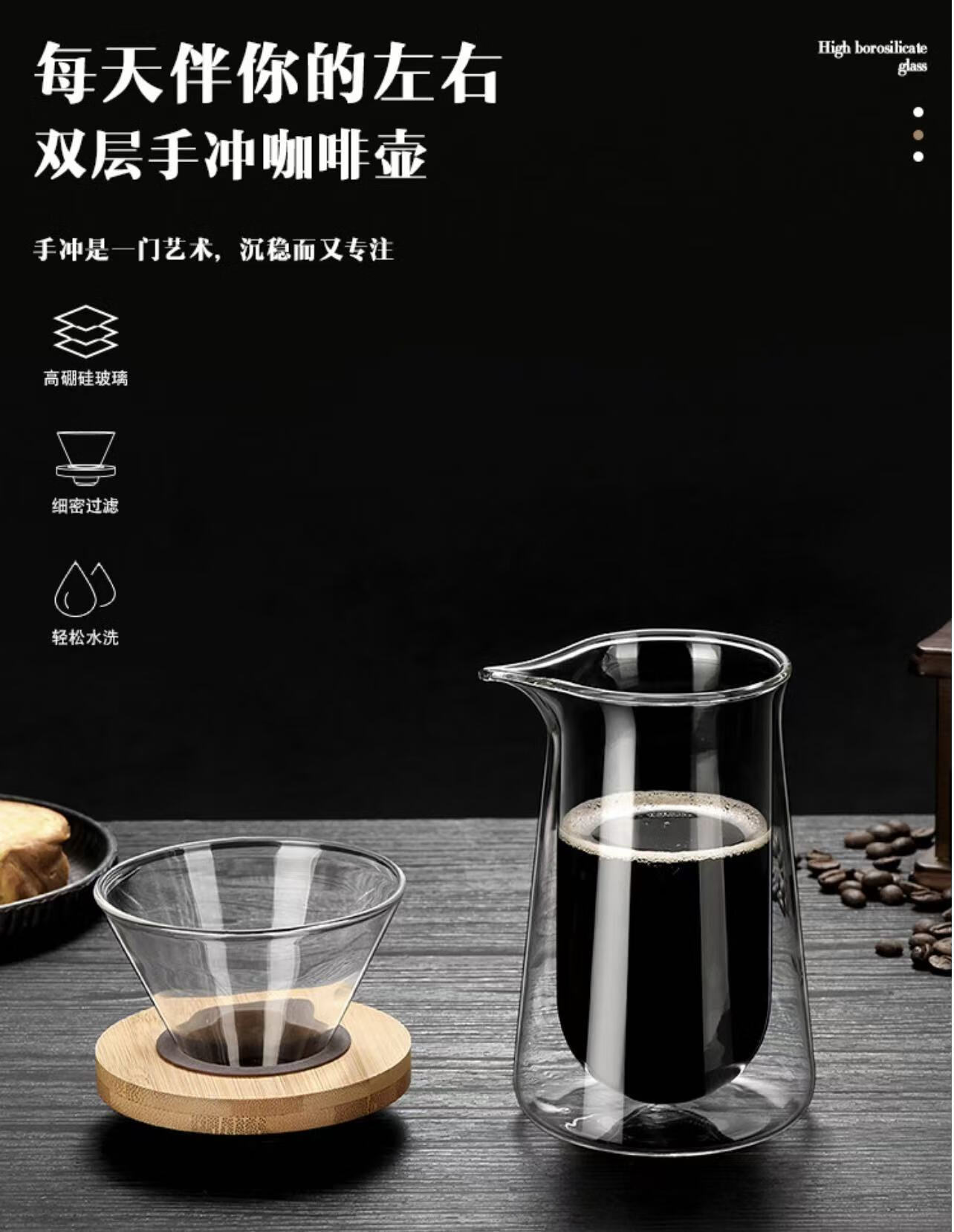 Double-layer glass hand-brewed coffee pot, home sharing pot set, high borosilicate filter cup, cold brew filter coffee set, hand-brewed coffee pot set
