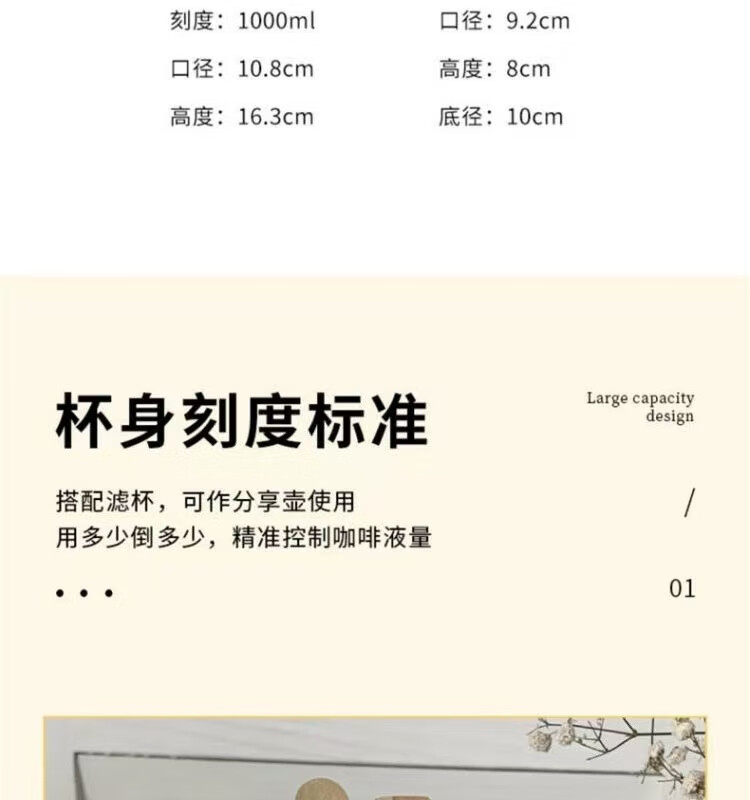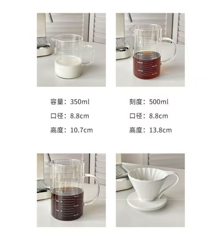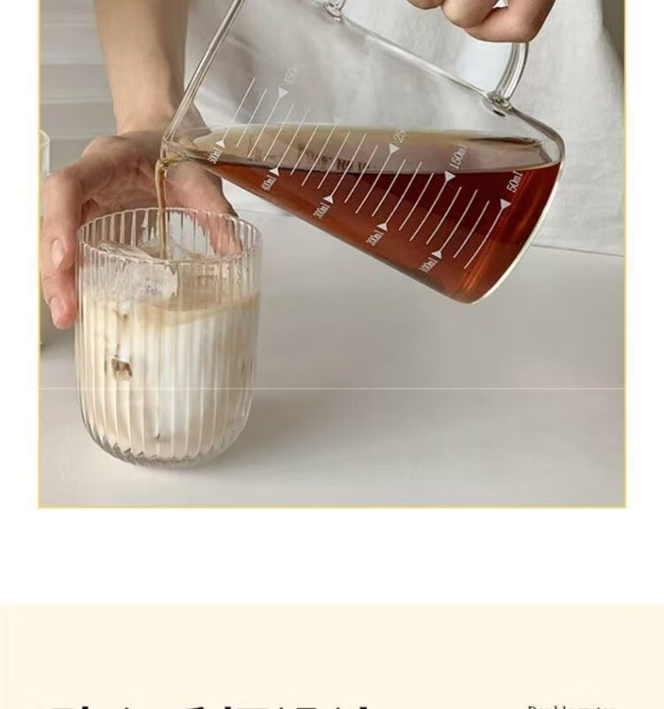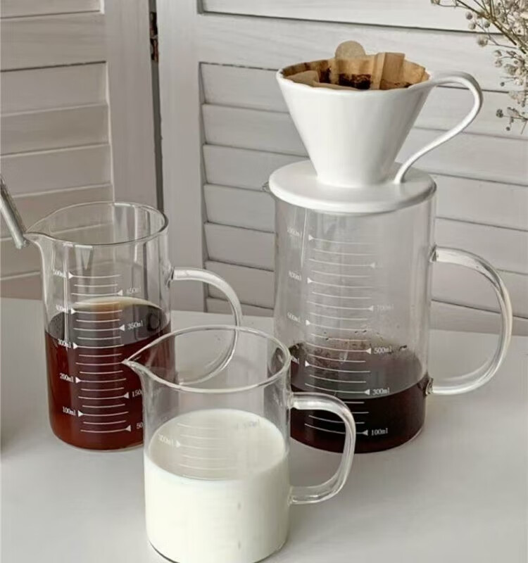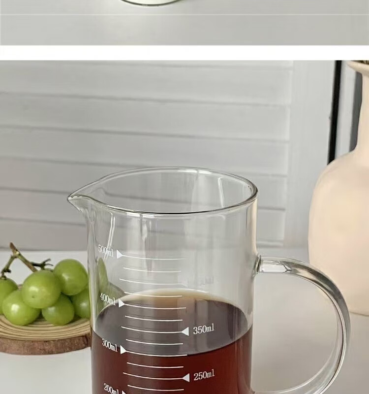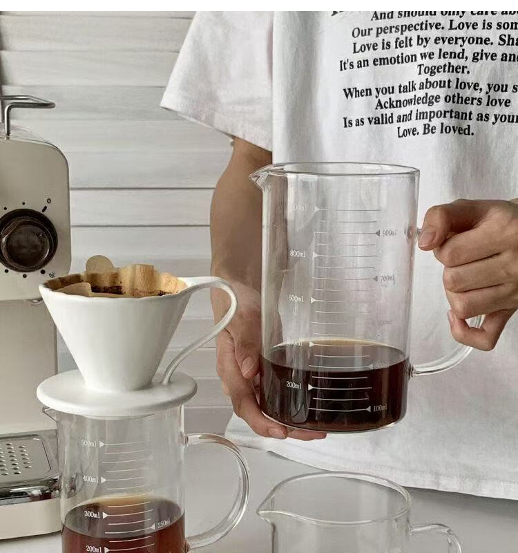Graduated coffee pot hand-brewed coffee sharing pot drip-type clear glass filter measuring cup American cold brew cup large size 1000ml