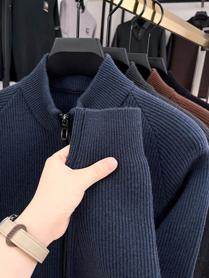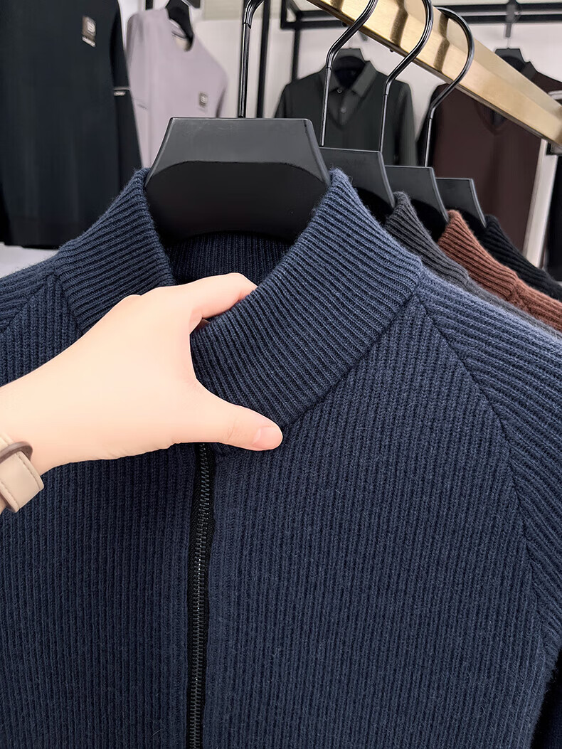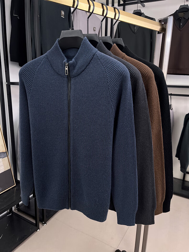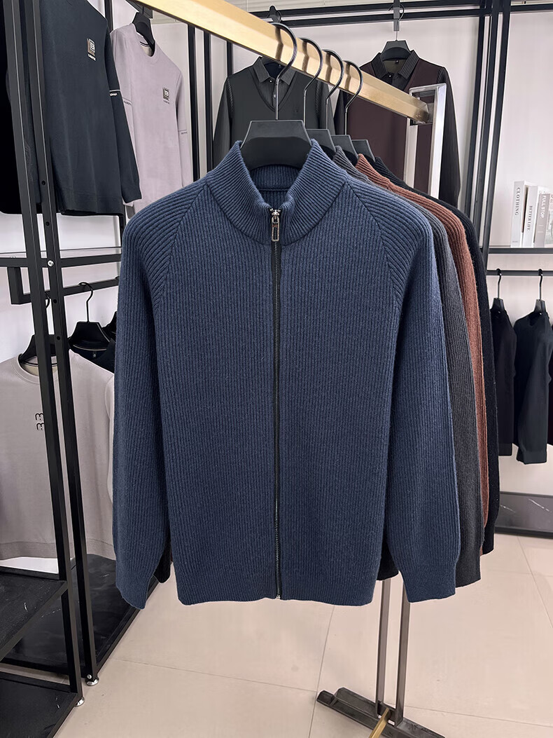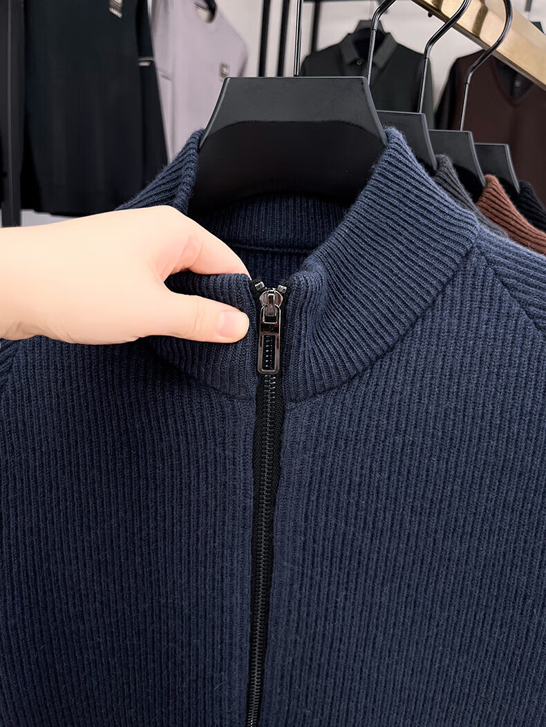 Pure wool stand-up collar pure wool sweater for men in autumn and winter solid color thickened warm knitted cardigan sweater jacket for men GO1552197 blue gray XL recommended 145-160Jin Jin equals 0.5 kg