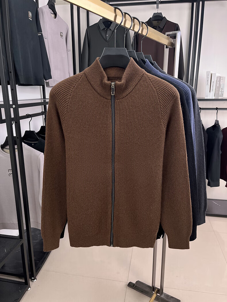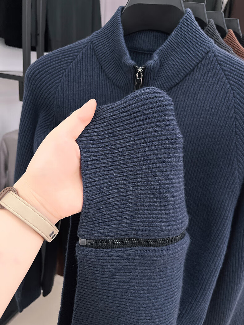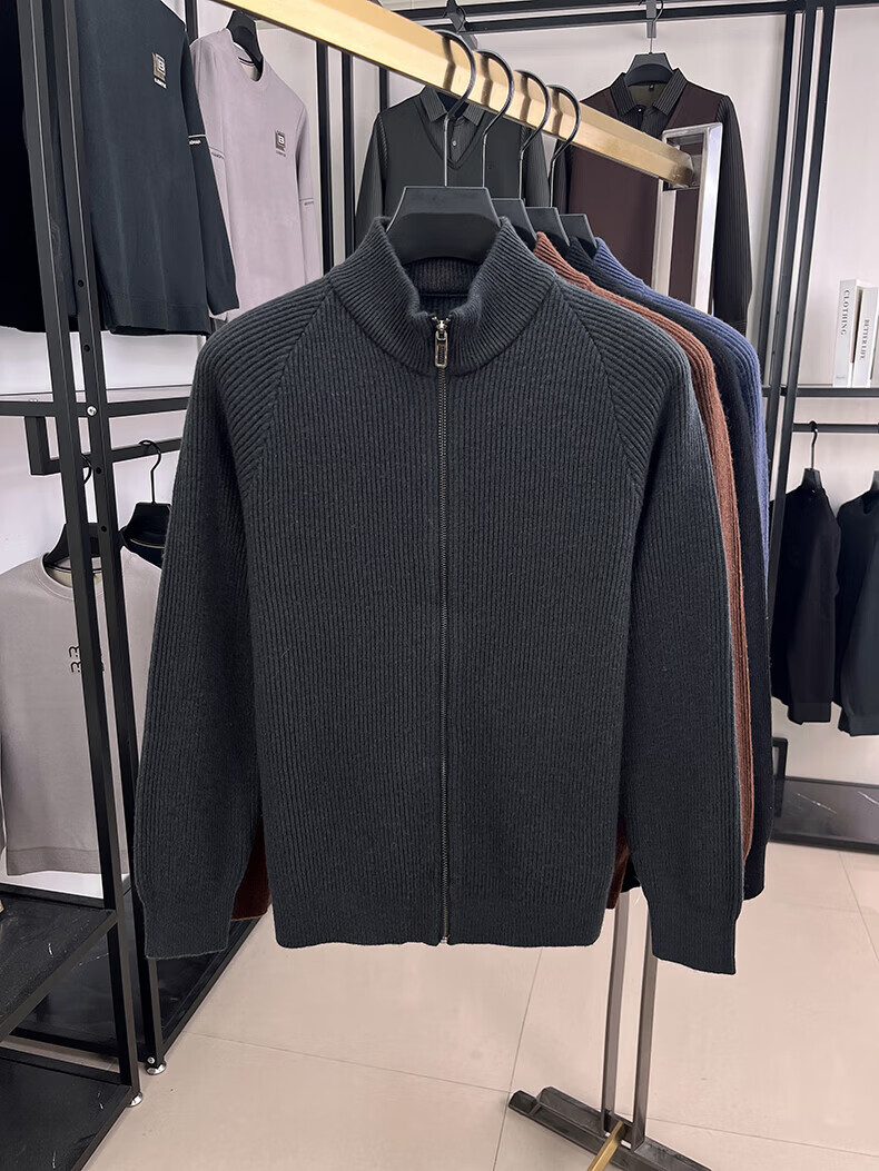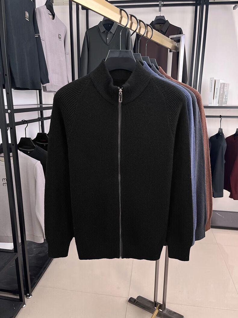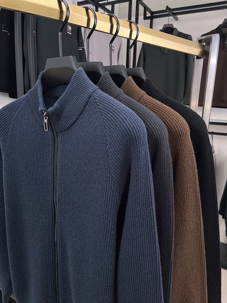 Pure wool stand-up collar pure wool sweater for men in autumn and winter solid color thickened warm knitted cardigan sweater jacket for men GO1552197 blue gray XL recommended 145-160Jin Jin equals 0.5 kg